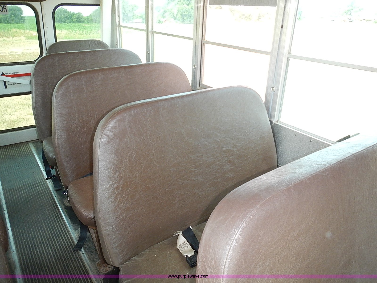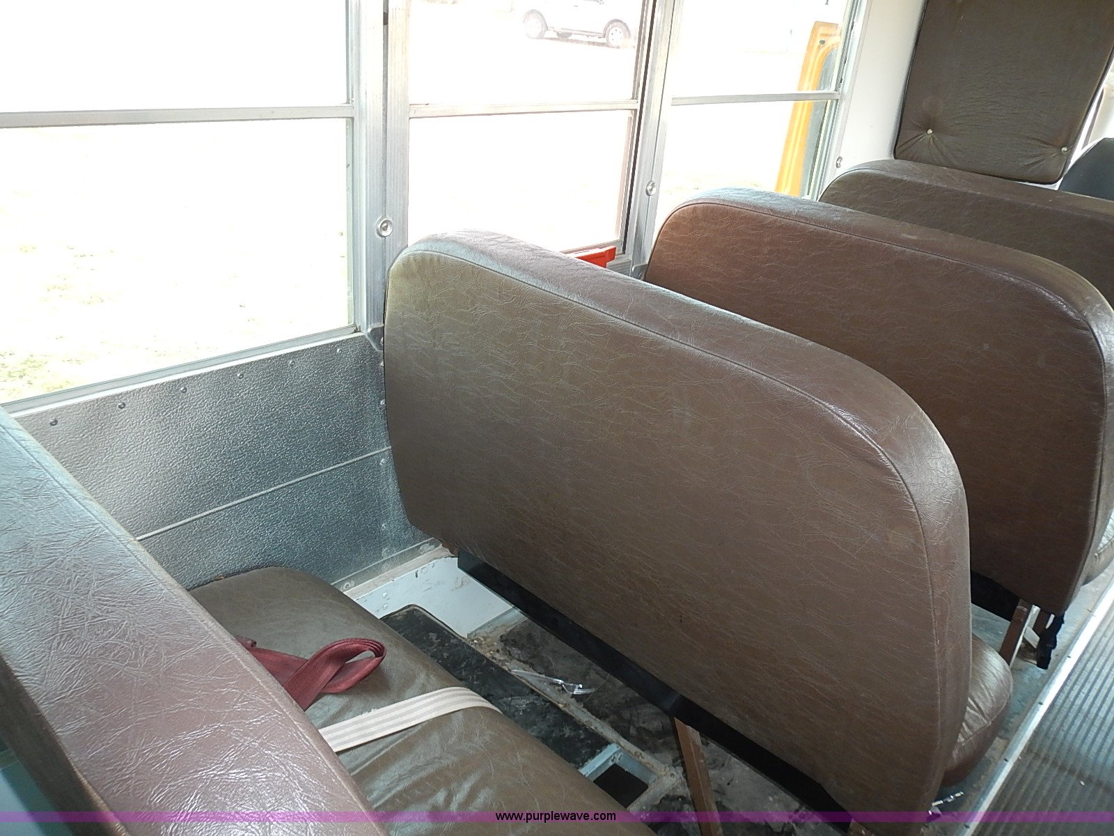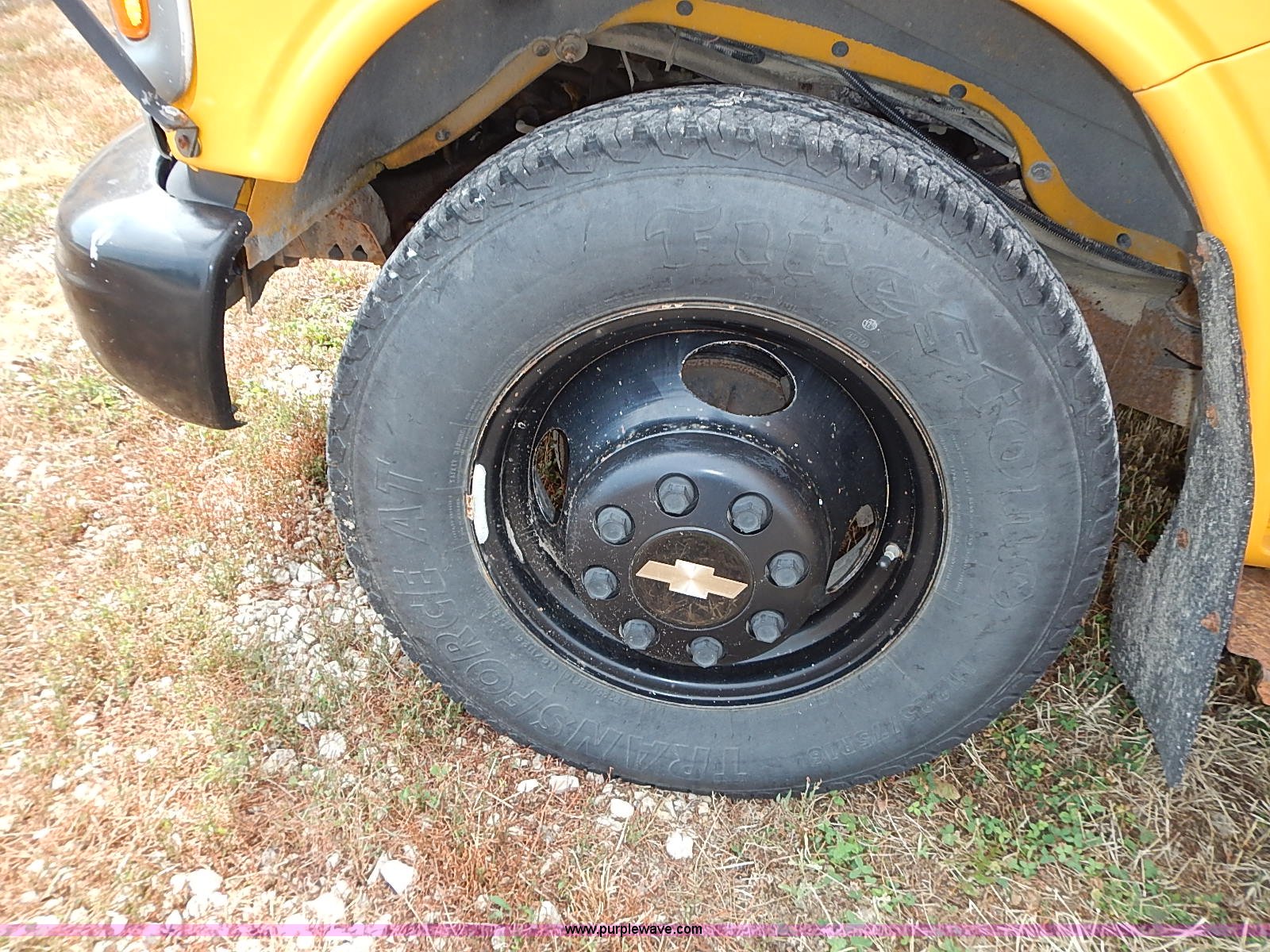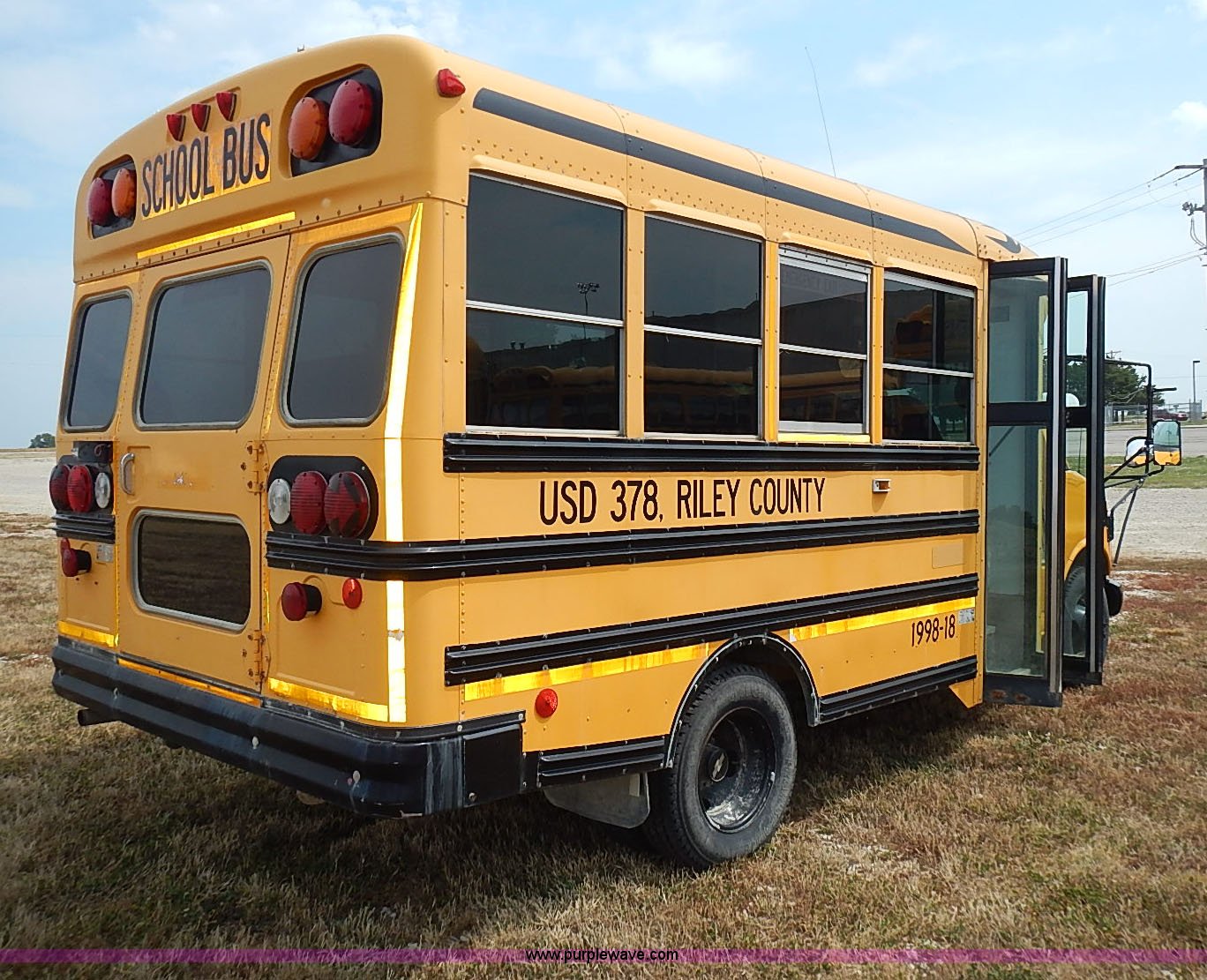 Purple Wave is selling a used Bus in Kansas. This item is a 1998 Chevrolet G3500 school bus with the following: 166,538 miles on odometer, 5.7L V8 gas engine, Automatic transmission, Heat, Manual windows and locks, Vinyl interior, Heated mirrors, 21 passenger capacity, Seat belts, 35 gallon fuel tank, Rear tow hooks, 225/75R16 tires, GVWR 10,000 lbs, Steering column damaged, Rust, Paint faded, Unit# 1998-18