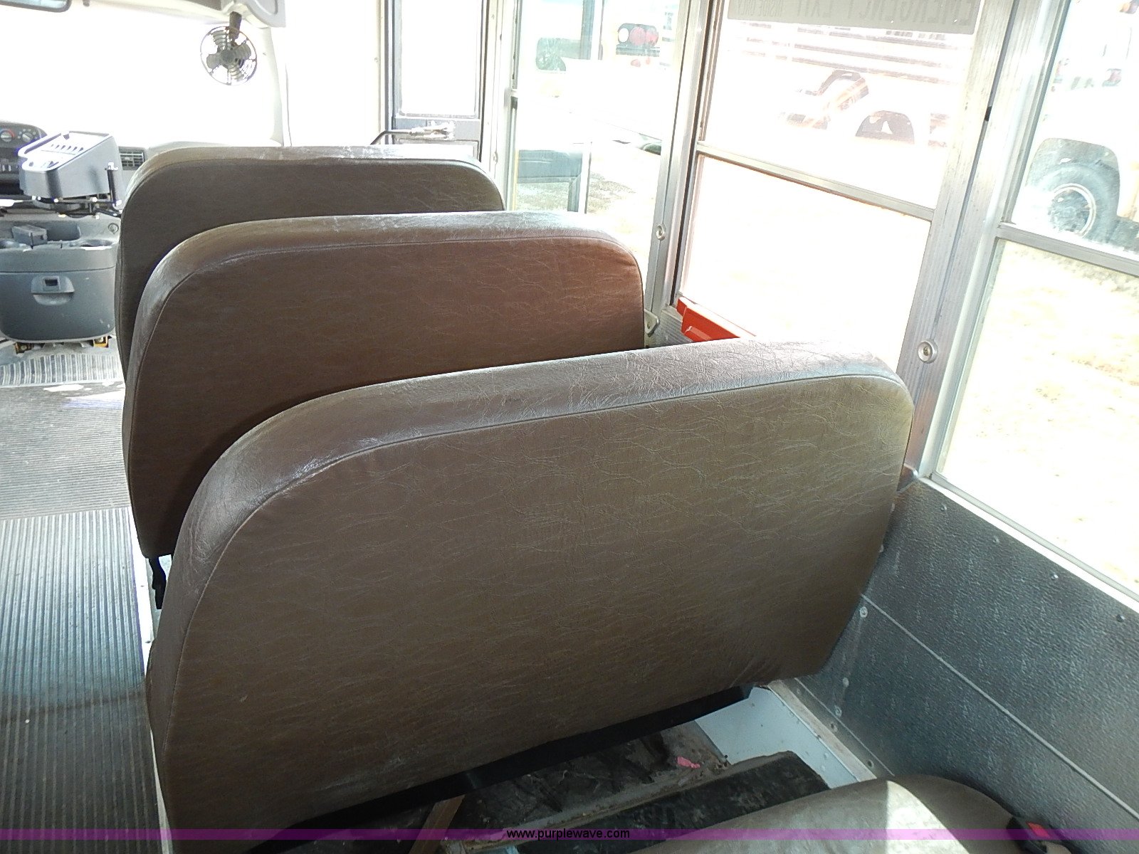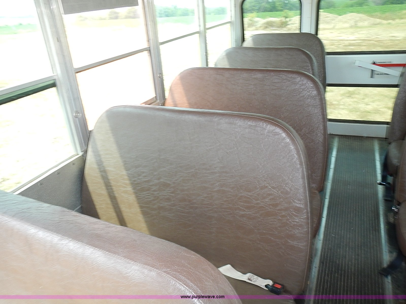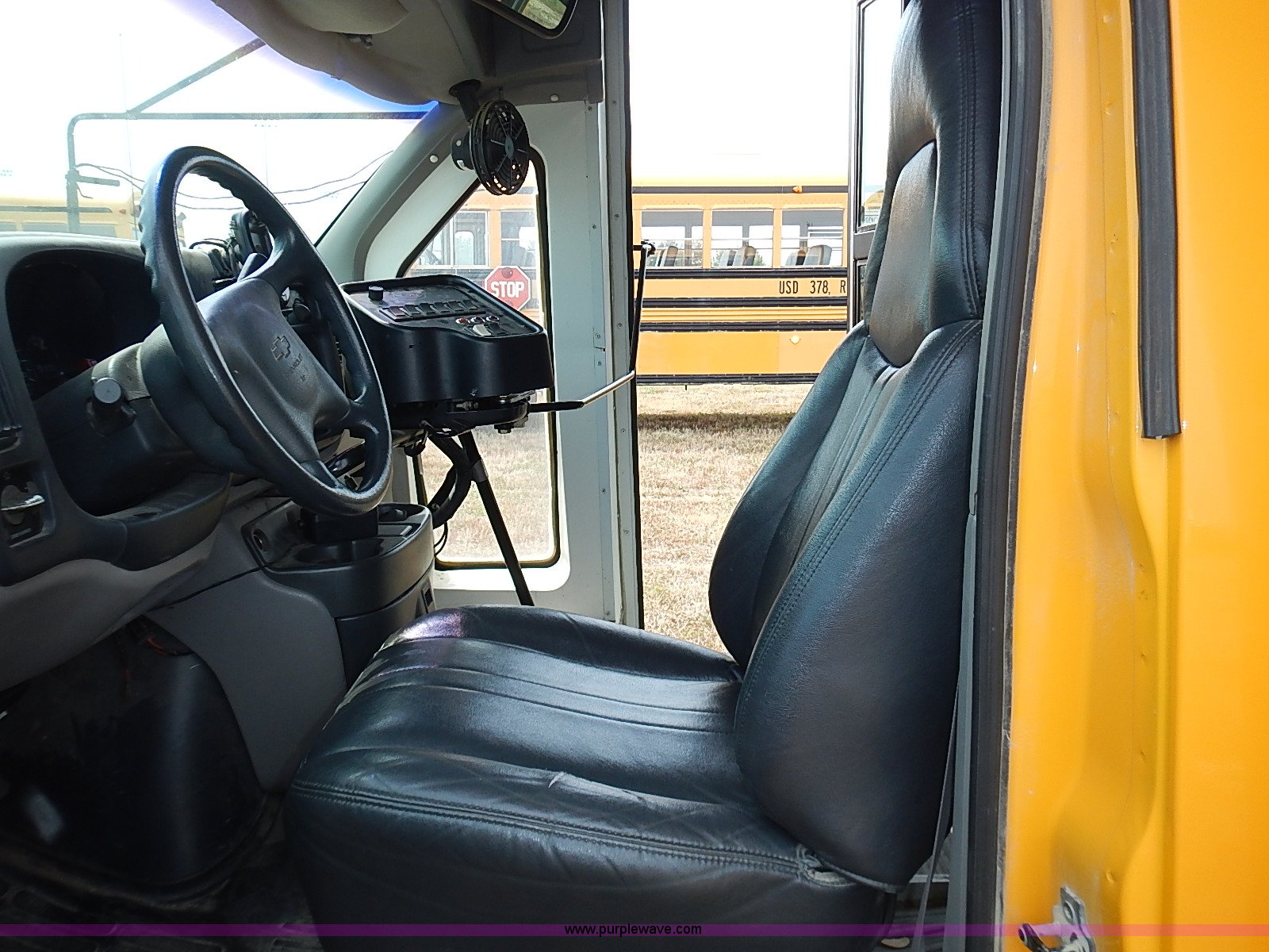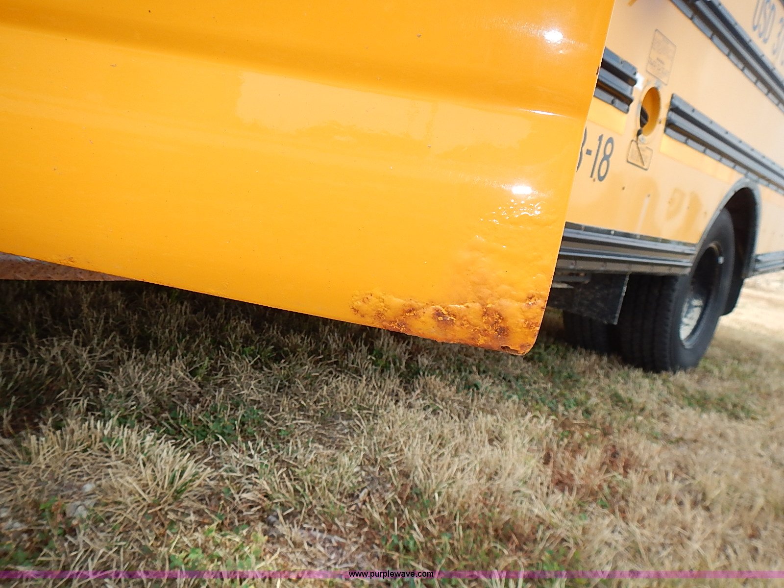 Purple Wave is selling a used Bus in Kansas. This item is a 1998 Chevrolet G3500 school bus with the following: 166,538 miles on odometer, 5.7L V8 gas engine, Automatic transmission, Heat, Manual windows and locks, Vinyl interior, Heated mirrors, 21 passenger capacity, Seat belts, 35 gallon fuel tank, Rear tow hooks, 225/75R16 tires, GVWR 10,000 lbs, Steering column damaged, Rust, Paint faded, Unit# 1998-18