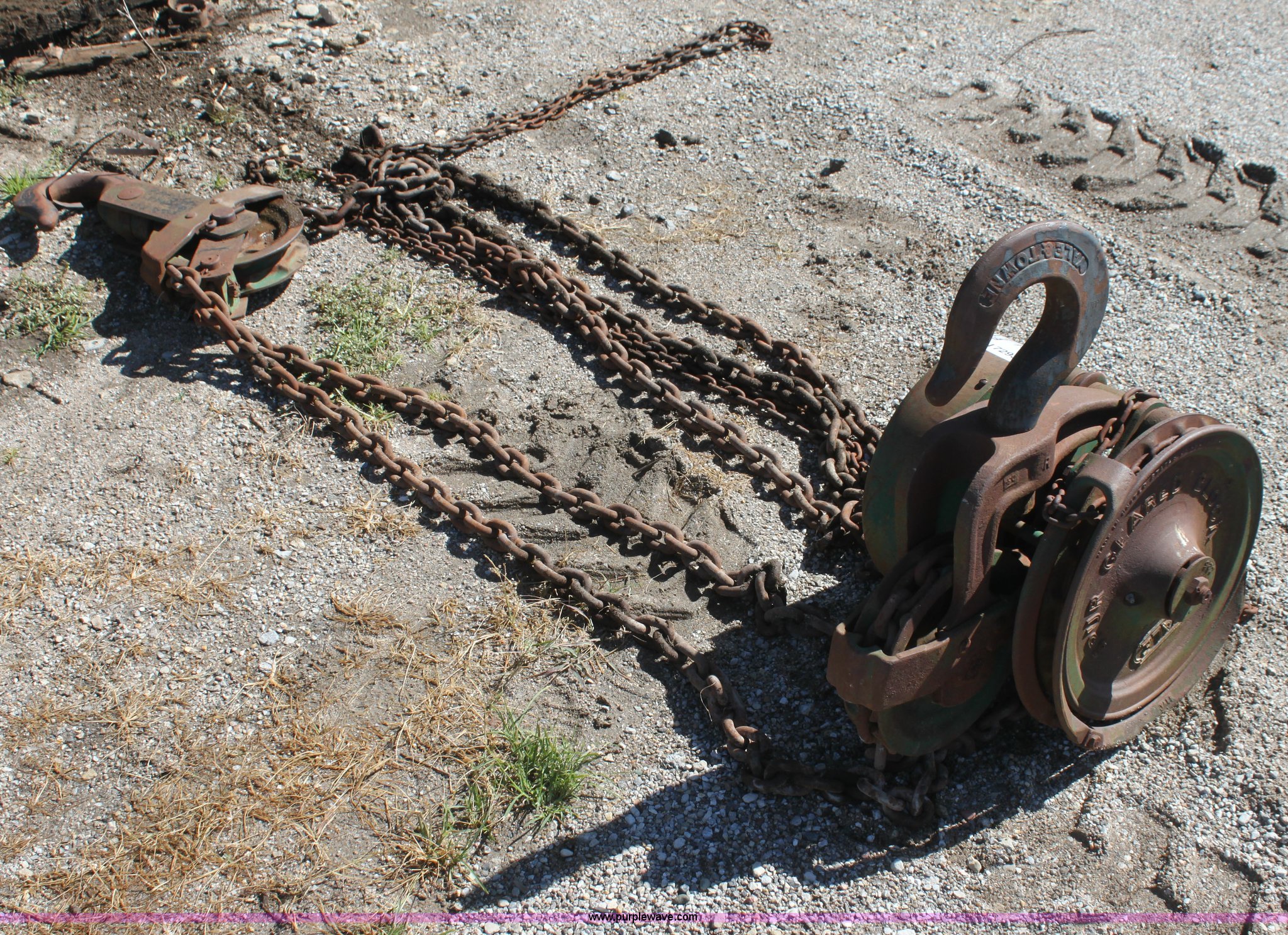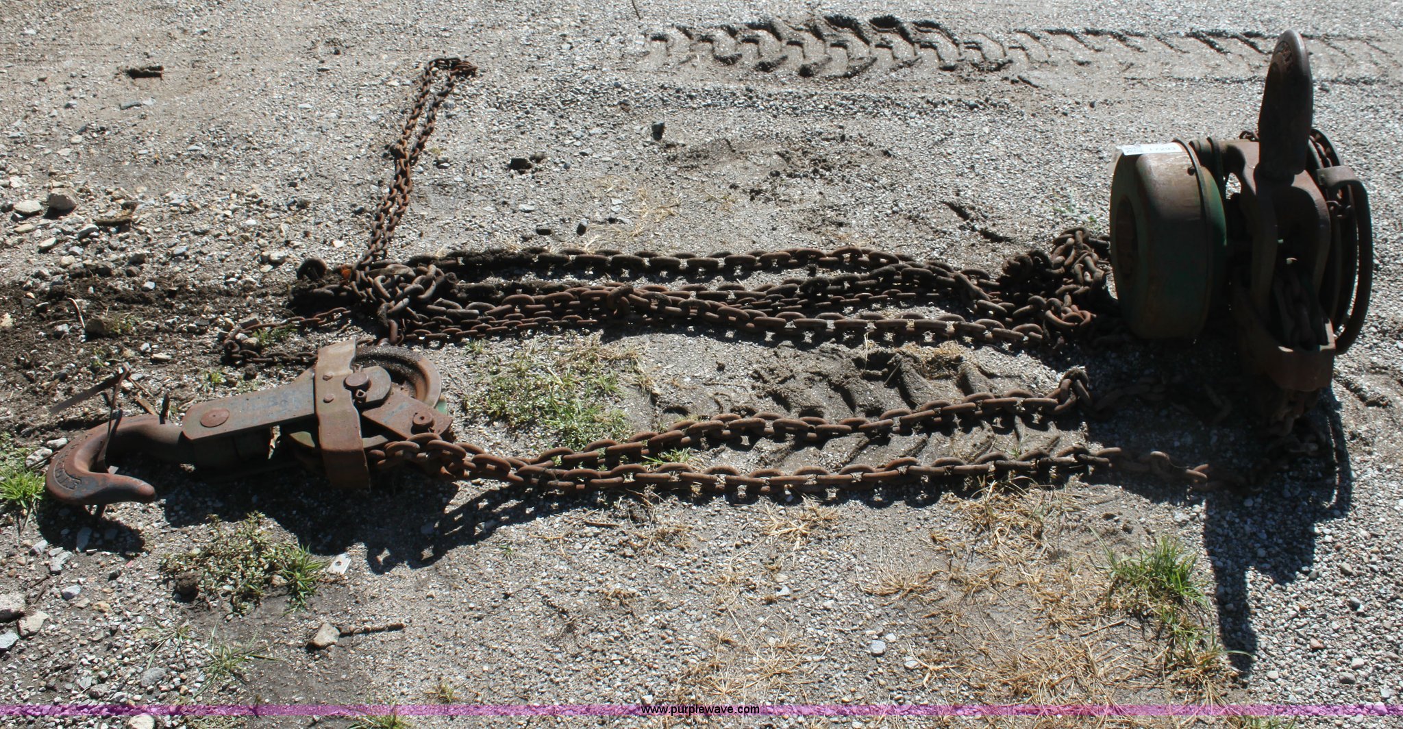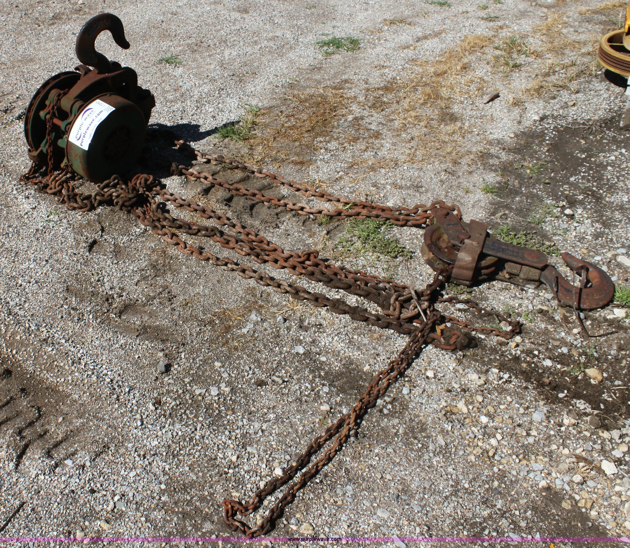 Purple Wave is selling a used Tools in Kansas. This item is a Assorted tools with the following: Yale chain hoist, Model BB, Spur geared, Four ton steel floor jack