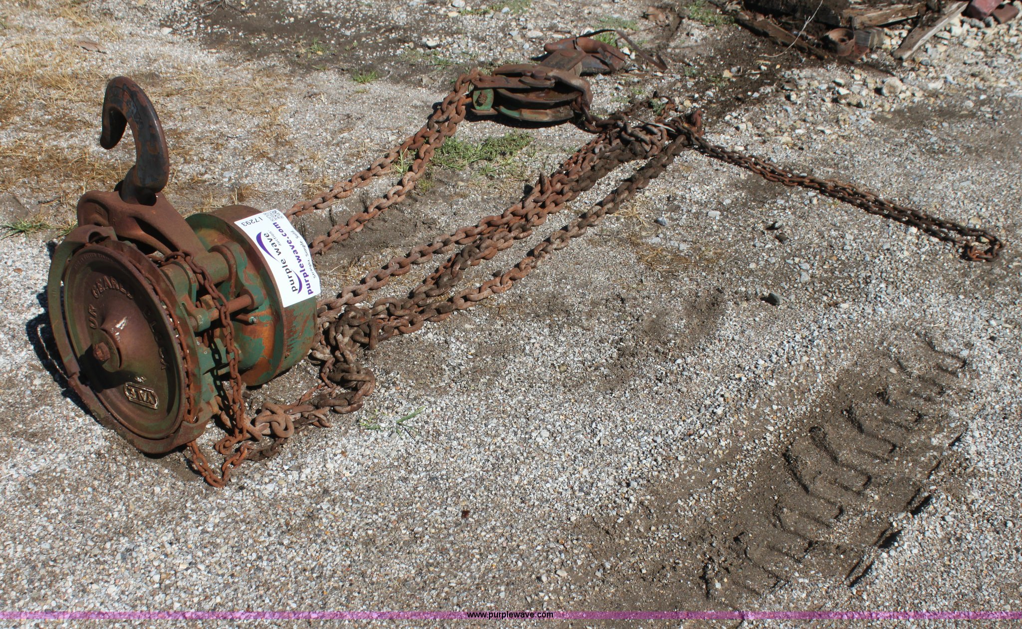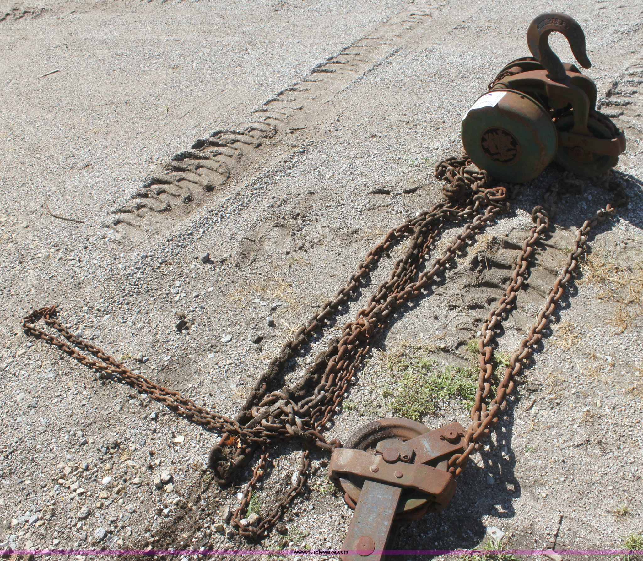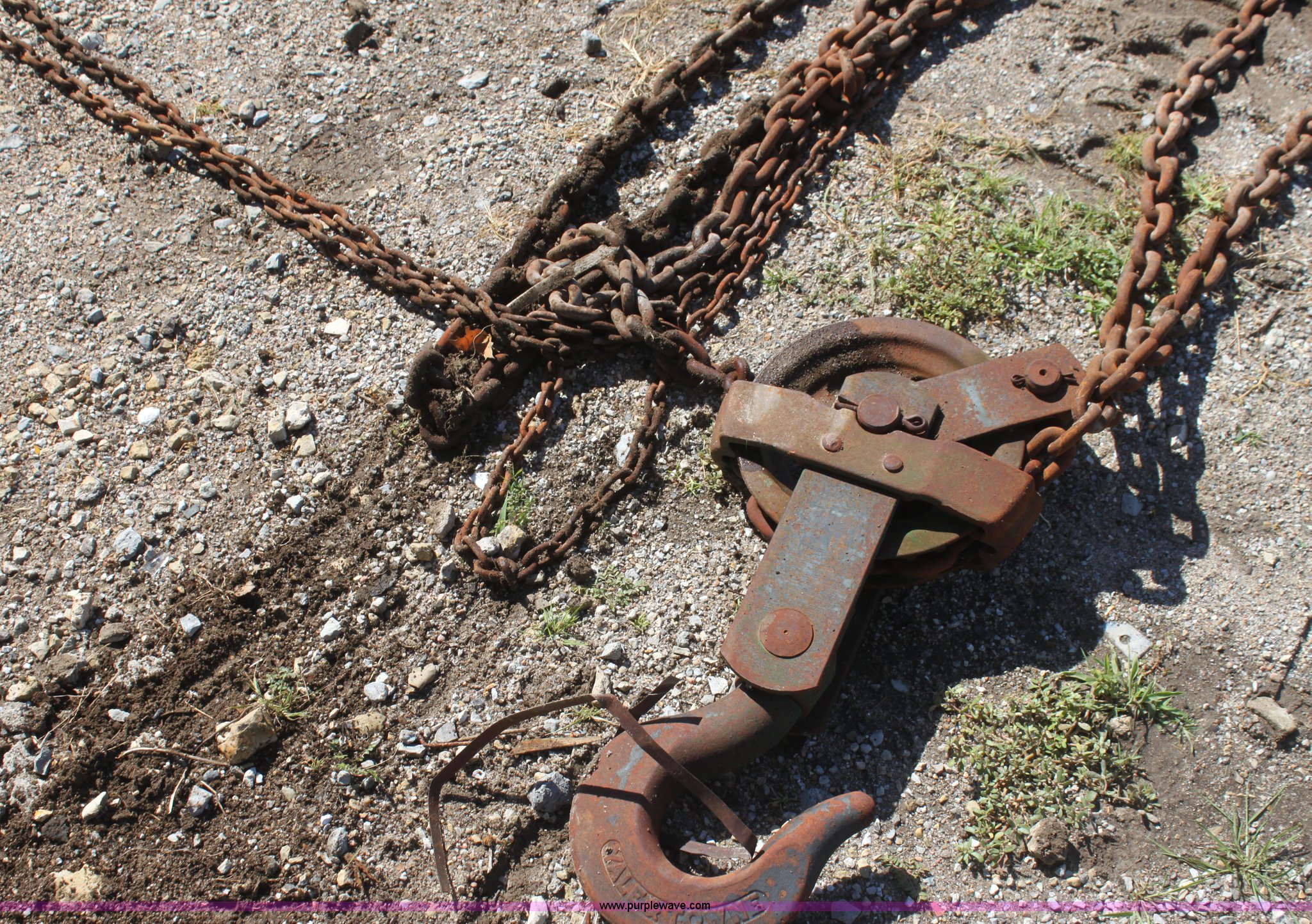 Purple Wave is selling a used Tools in Kansas. This item is a Assorted tools with the following: Yale chain hoist, Model BB, Spur geared, Four ton steel floor jack