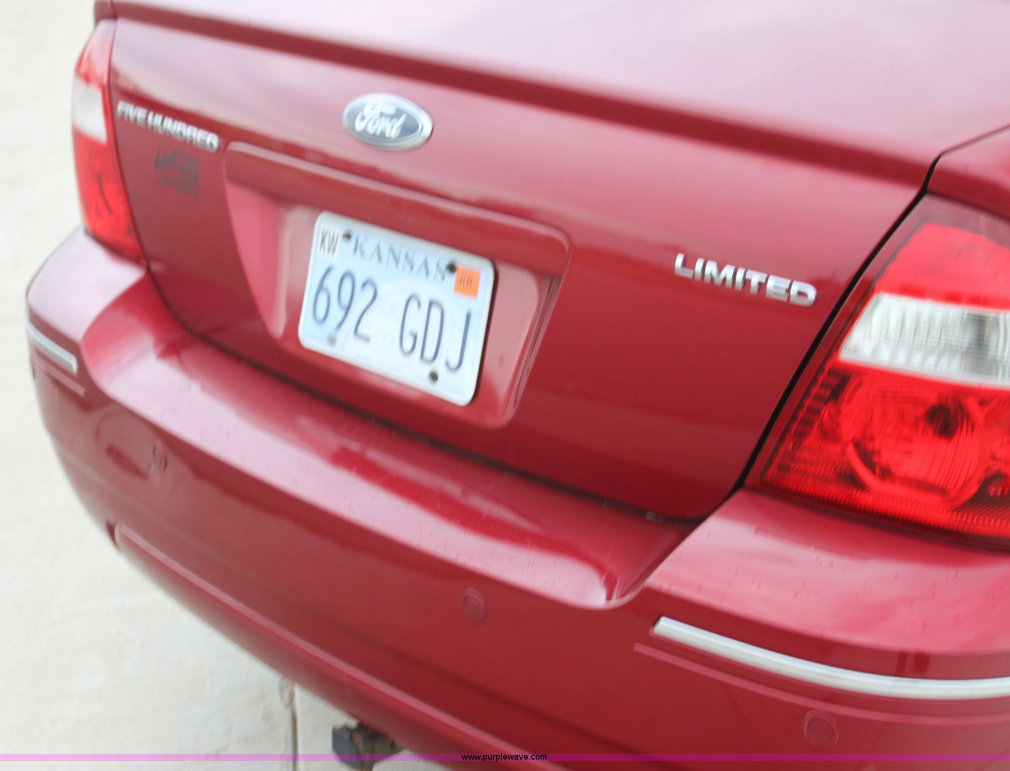Purple Wave is selling a used Passenger Vehicle in Kansas. This item is a 2007 Ford Five Hundred Limited with the following: 75,080 miles on odometer, 3.0L V6 DOHC 24V gas engine, Automatic transmission, AC and heat, Tilt, Cruise, AM/FM/CD, Power windows and locks, Leather interior, Power adjustable foot pedals, 235/55R17 tires, Interior/exterior cosmetic damage