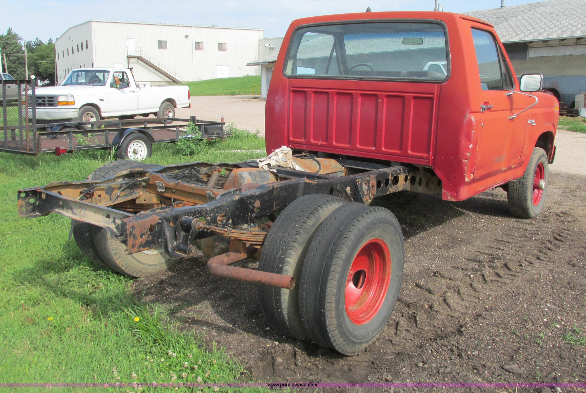 This 1980 Ford F350 truck cab and chassis will sell to the highest bidder regardless of price.