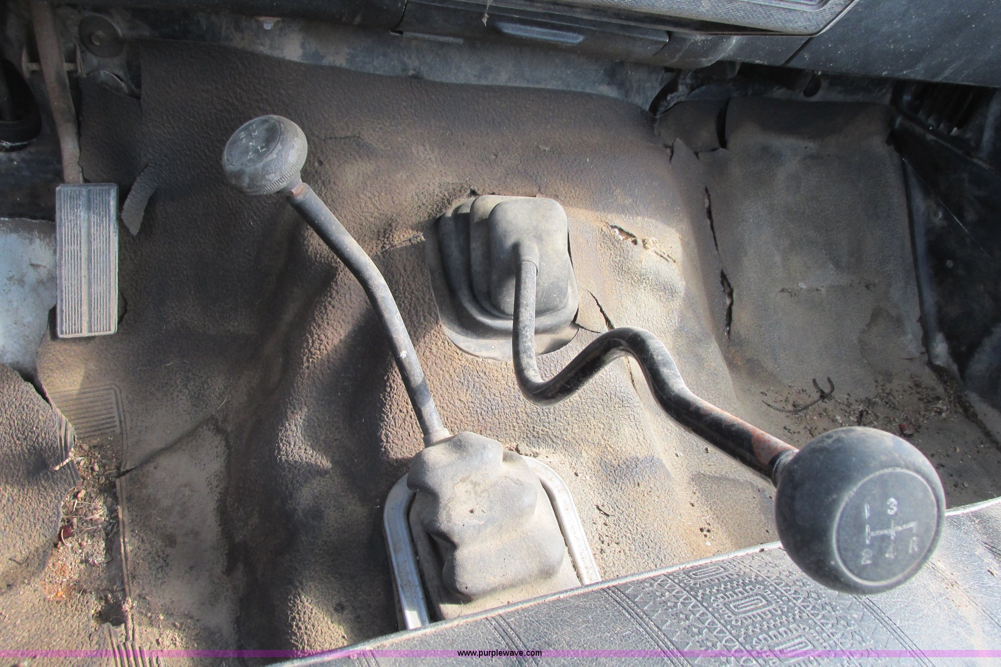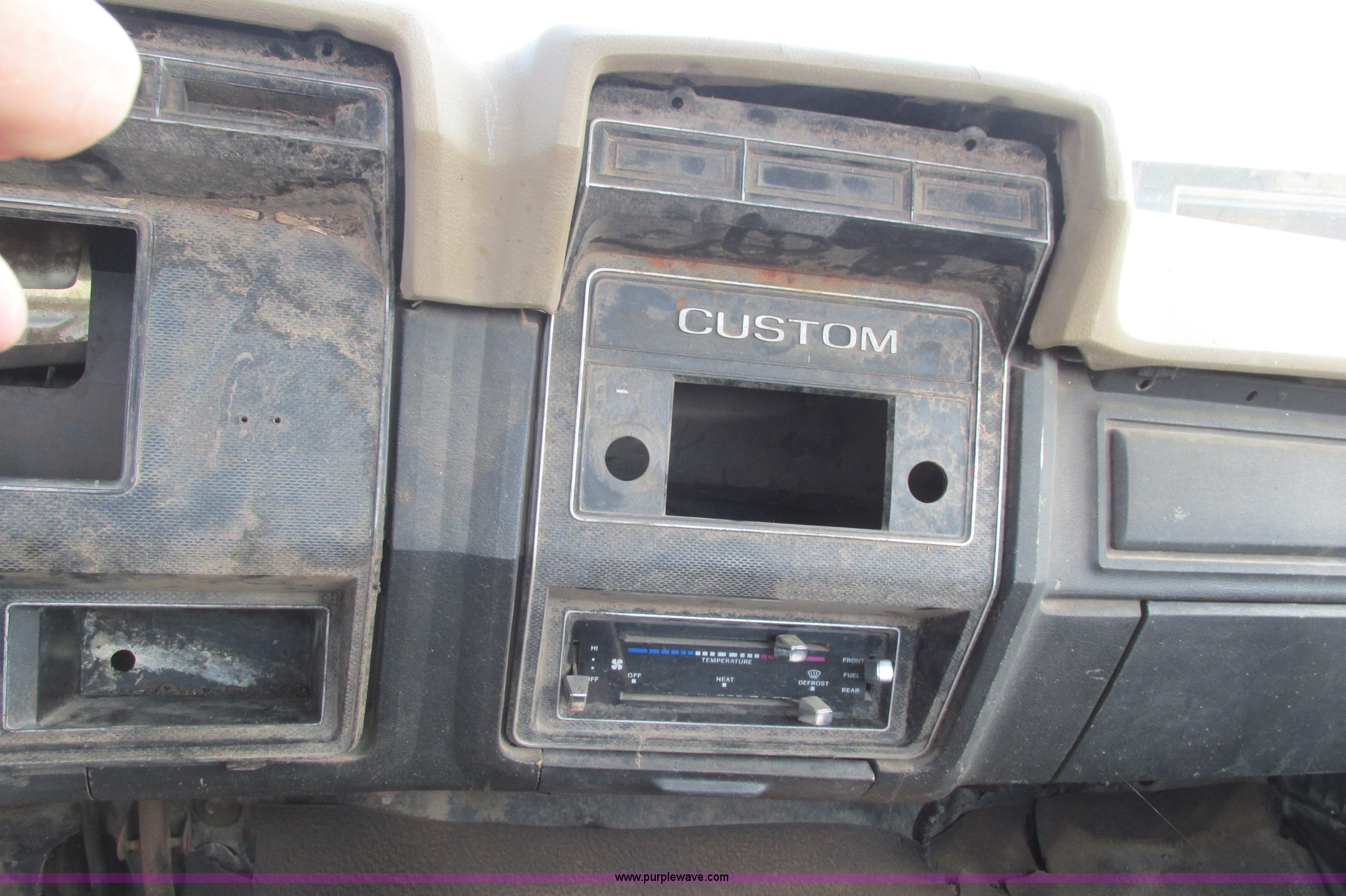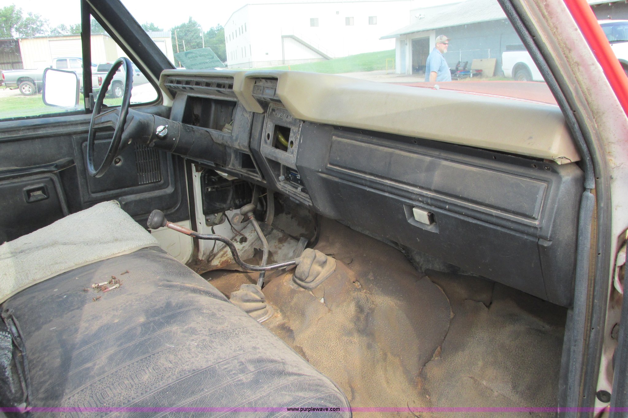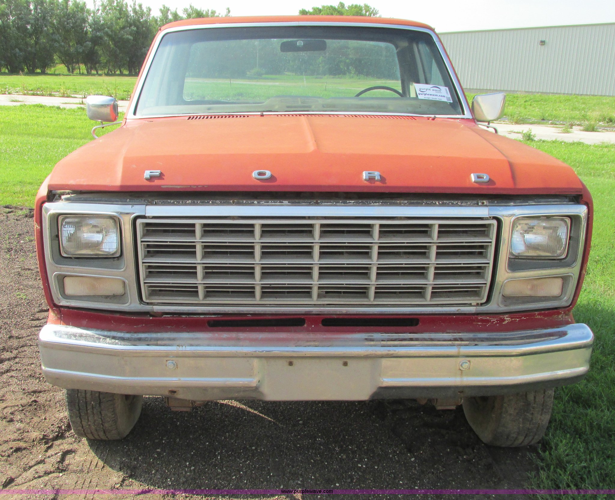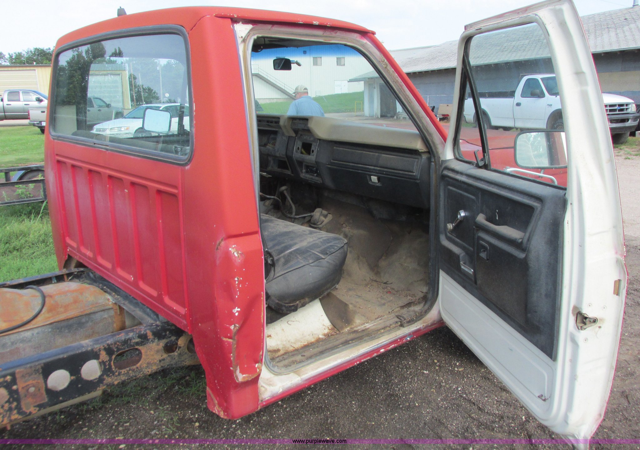 Purple Wave is selling a used 3/4 or 1 Ton Pickup or Van in Kansas. This item is a 1980 Ford F350 truck cab and chassis with the following: Unknown miles on odometer, 6.6L eight cylinder gas engine, Four speed manual transmission, Four wheel drive, Lock-out hubs, Manual windows and locks, Vinyl interior, LT245/75R16 front tire, LT225/75R16 front tire, 7.50-16LT rear tire, LT235/85R16 rear tire, Speedometer cluster missing, Dash electronics missing, Seat worn and torn, Rust, Fuel tank cap missing, Rear tires are bad, Cab damaged, Paint oxidized, Hood does not latch, Parts missing, Non-operational unit
