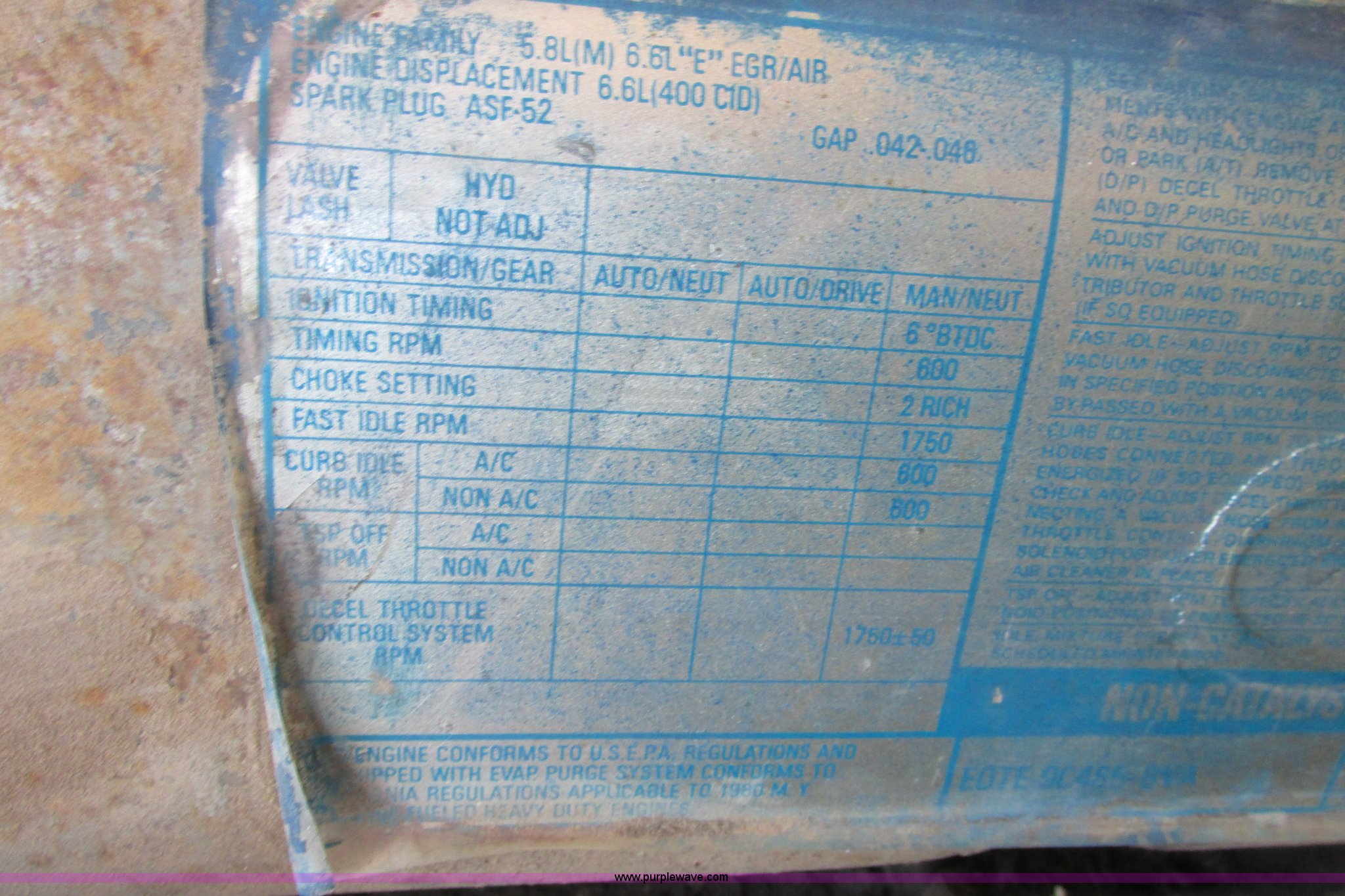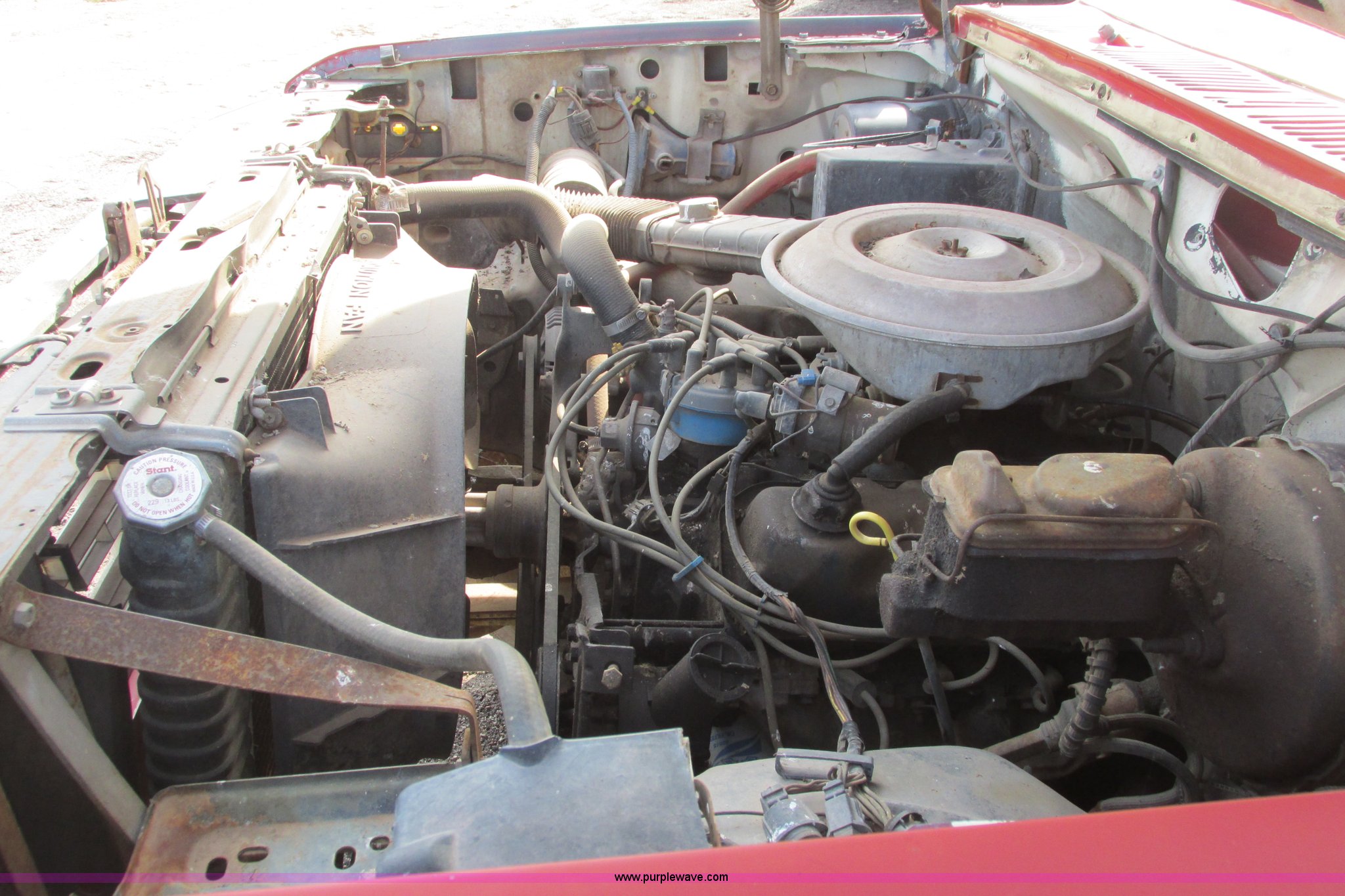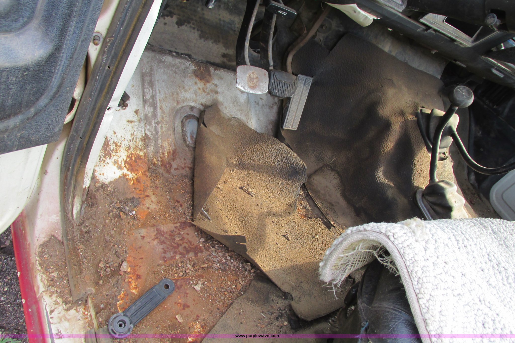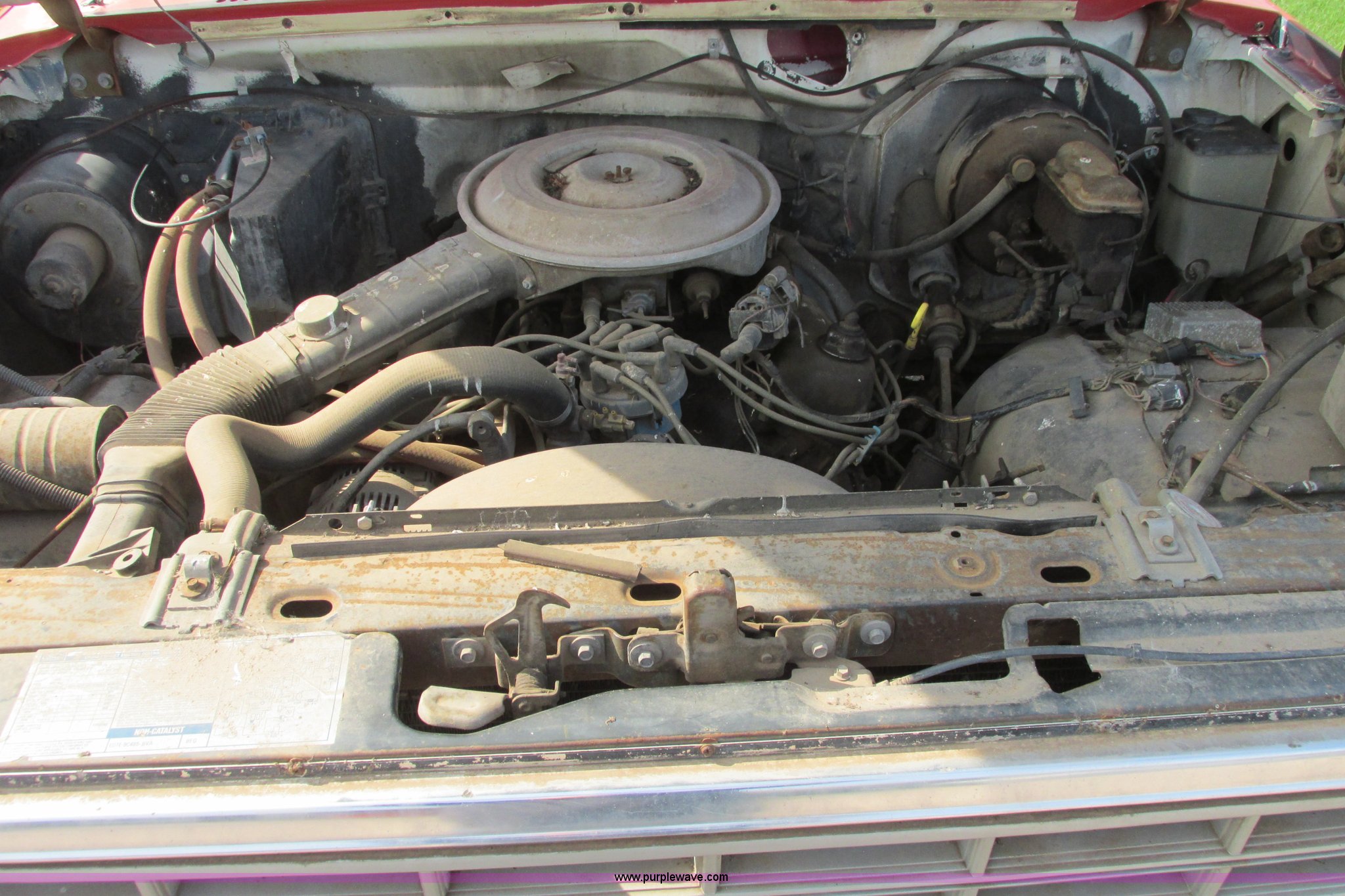 Purple Wave is selling a used 3/4 or 1 Ton Pickup or Van in Kansas. This item is a 1980 Ford F350 truck cab and chassis with the following: Unknown miles on odometer, 6.6L eight cylinder gas engine, Four speed manual transmission, Four wheel drive, Lock-out hubs, Manual windows and locks, Vinyl interior, LT245/75R16 front tire, LT225/75R16 front tire, 7.50-16LT rear tire, LT235/85R16 rear tire, Speedometer cluster missing, Dash electronics missing, Seat worn and torn, Rust, Fuel tank cap missing, Rear tires are bad, Cab damaged, Paint oxidized, Hood does not latch, Parts missing, Non-operational unit