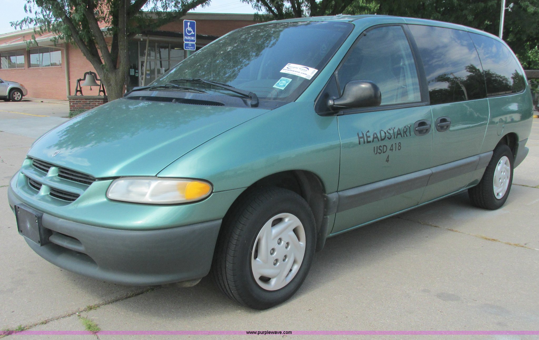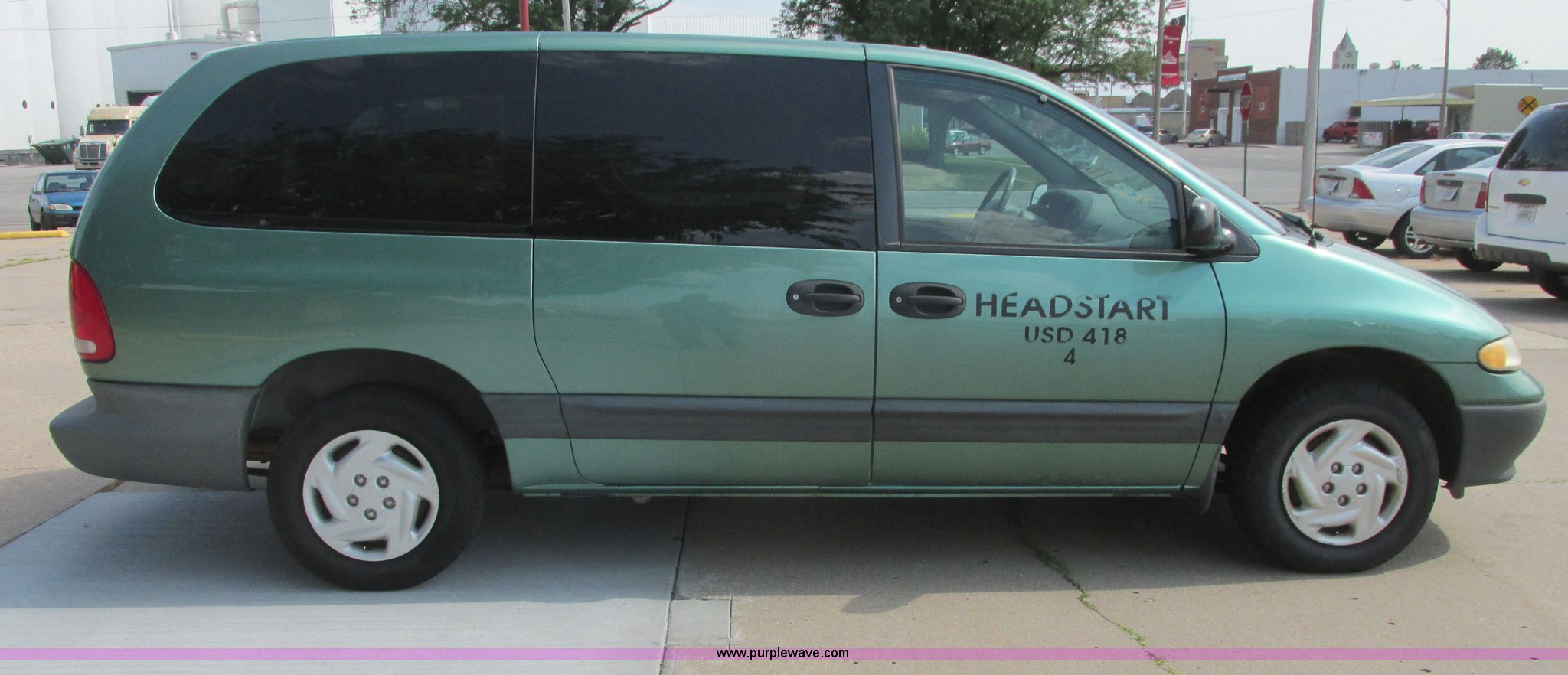 Purple Wave is selling a used Passenger Vehicle in Kansas. This item is a 1998 Dodge Grand Caravan SE van with the following: 87,809 actual miles, 3.0L V6 OHV 12V FFV gas engine, Automatic transmission, AC and heat, Tilt, Cruise, AM/FM/cassette, Power windows and locks, Middle seat included, 215/65R15 tires, Clear coat peeling, Decals will be removed prior to auction, Tailgate damaged, Hail damage, Hood dented, Interior/exterior cosmetic damage, Fire extinguisher is not included, Unit# 4