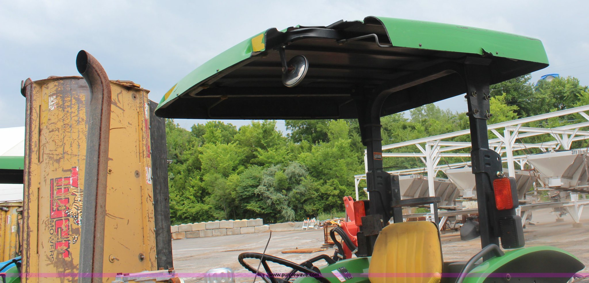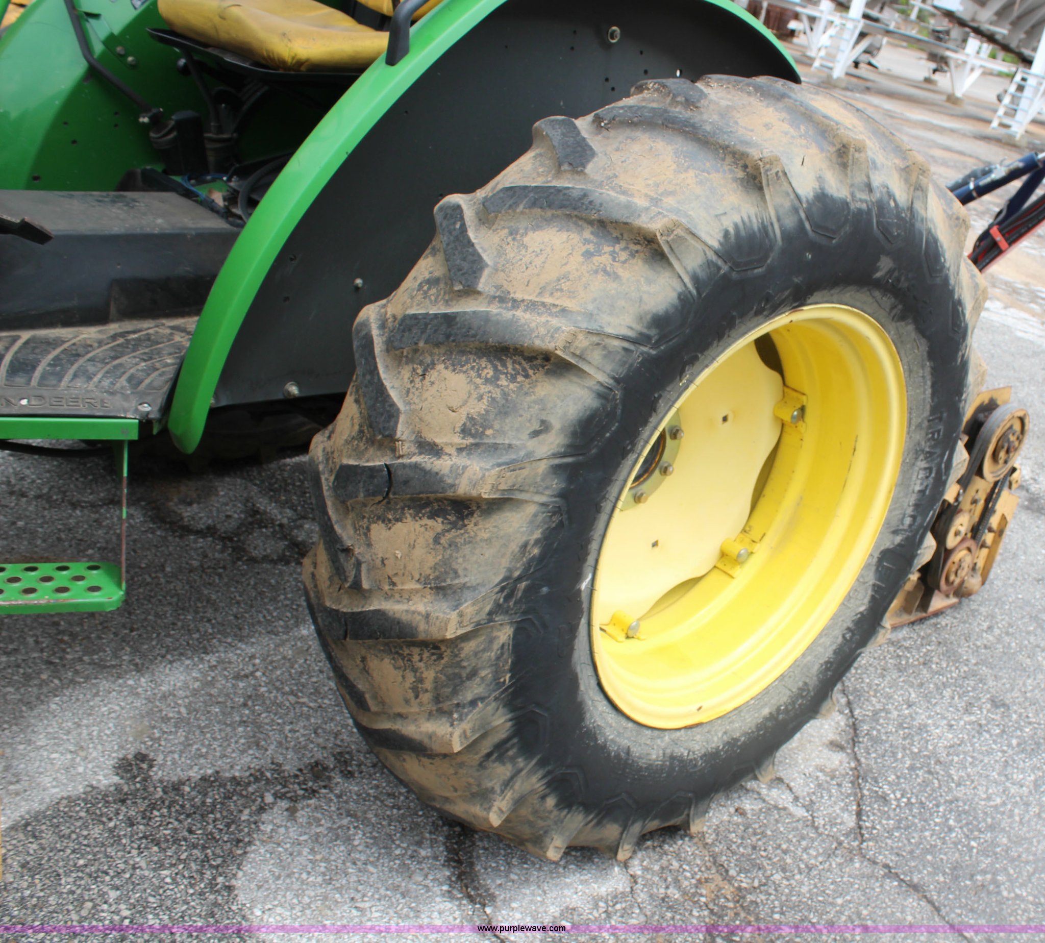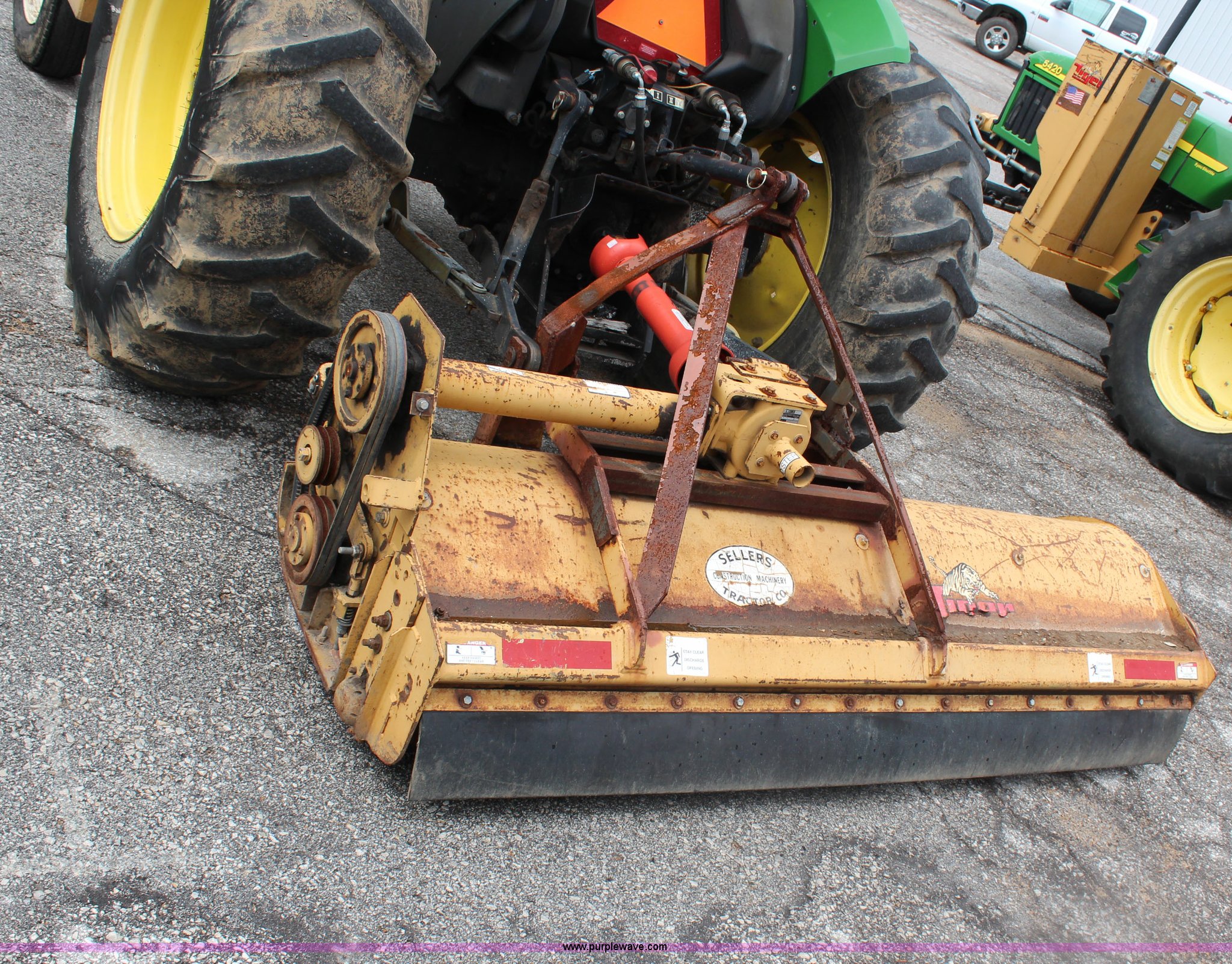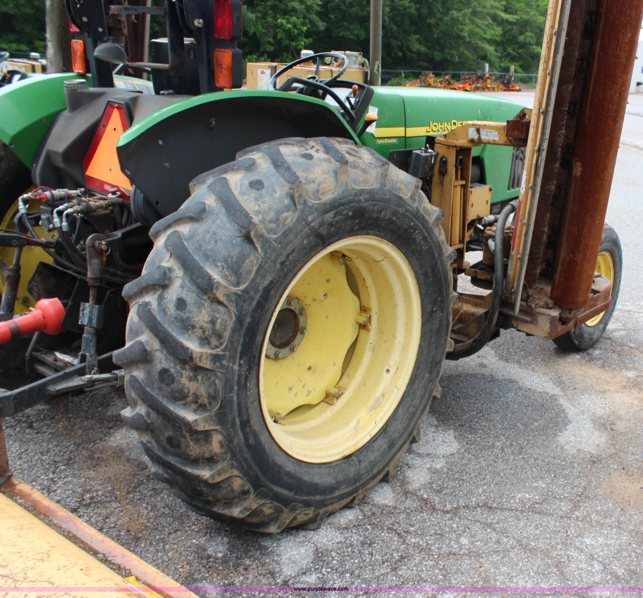 Purple Wave is selling a used Tractor in Kansas. This item is a 2003 John Deere 5420 tractor with the following: 2,892 hours on meter, John Deere 4.5L four cylinder diesel engine, 65 HP, Serial PE4045D263396, Shuttle synch transmission, 9F-3R gears, Canopy, Flashers, Vinyl seat, Three point, 540 PTO, (2) sets of rear hydraulic remotes, 18,120 gallon fuel capacity, 225/75R15 front tires, Worn, 16.9-30 rear tires, Tiger flail mower system, 91" rear flail mower, 76" side flail mower, Serial LV5420S342788