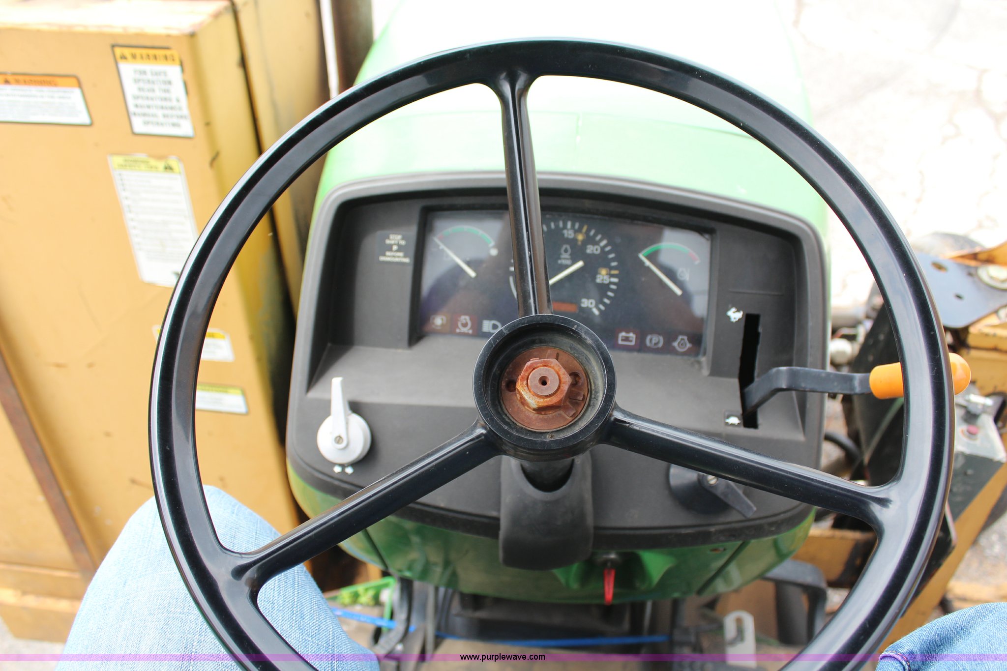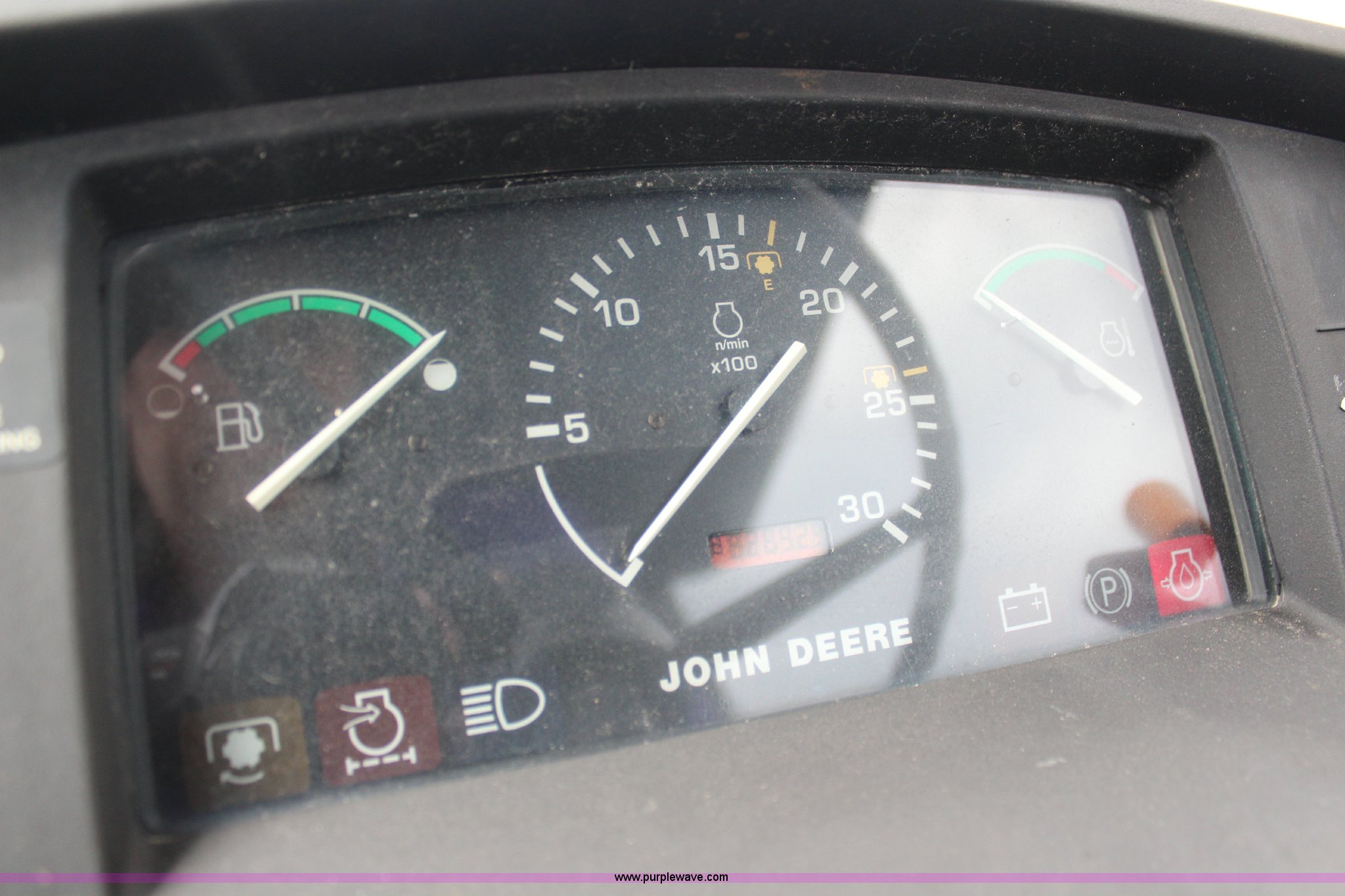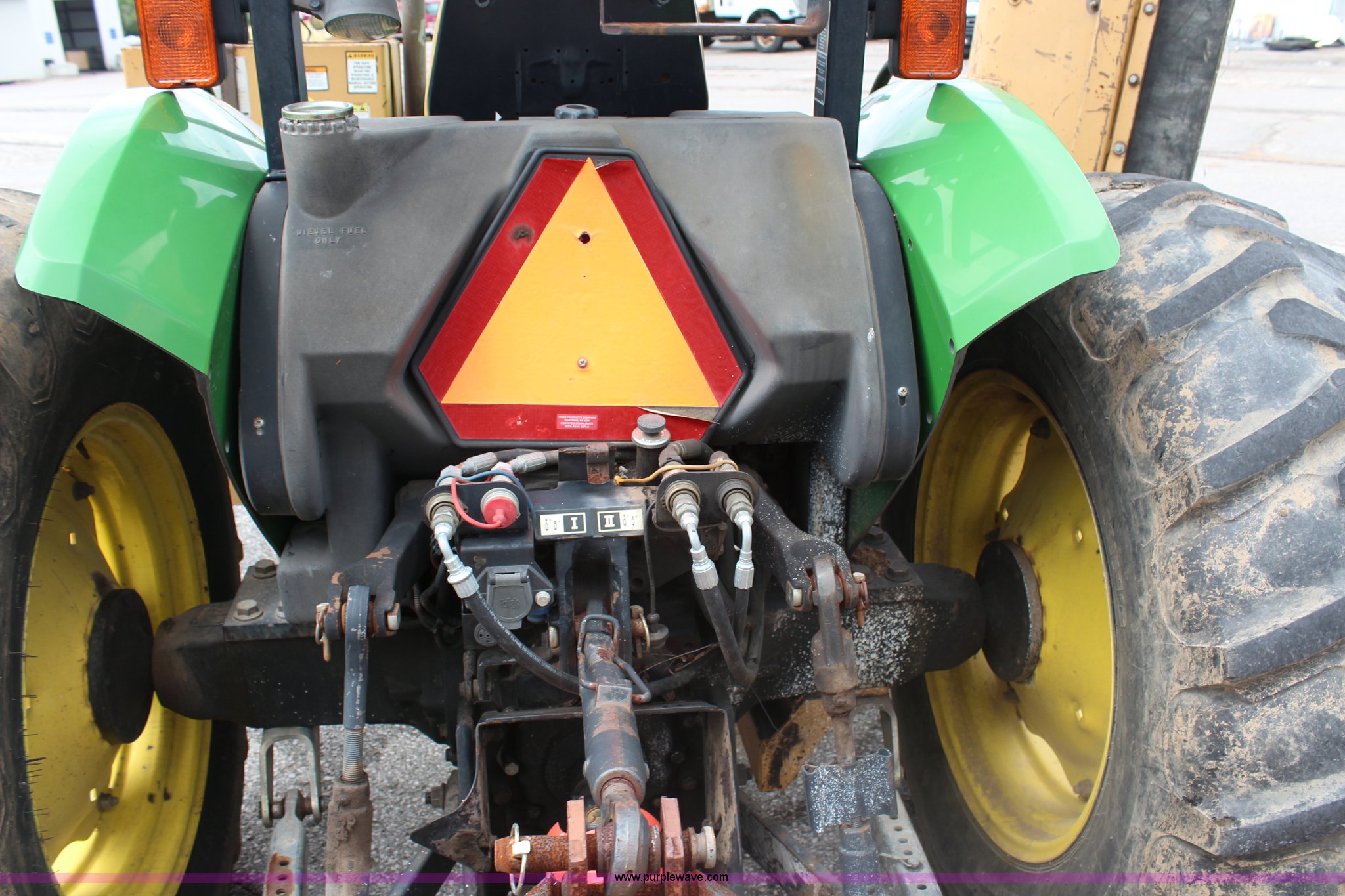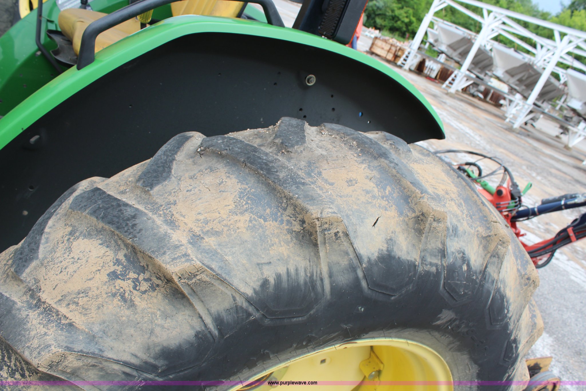 Purple Wave is selling a used Tractor in Kansas. This item is a 2003 John Deere 5420 tractor with the following: 2,892 hours on meter, John Deere 4.5L four cylinder diesel engine, 65 HP, Serial PE4045D263396, Shuttle synch transmission, 9F-3R gears, Canopy, Flashers, Vinyl seat, Three point, 540 PTO, (2) sets of rear hydraulic remotes, 18,120 gallon fuel capacity, 225/75R15 front tires, Worn, 16.9-30 rear tires, Tiger flail mower system, 91" rear flail mower, 76" side flail mower, Serial LV5420S342788