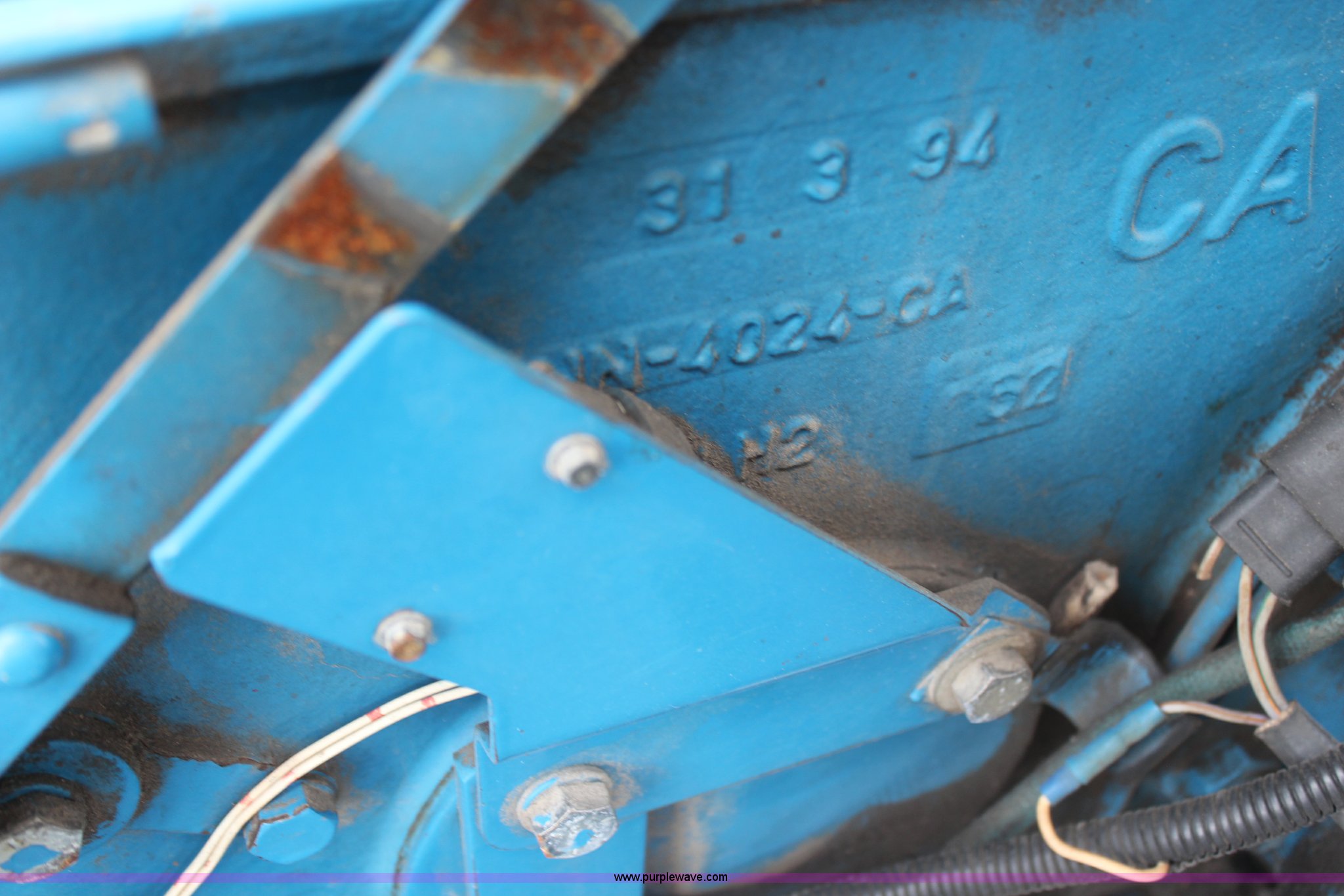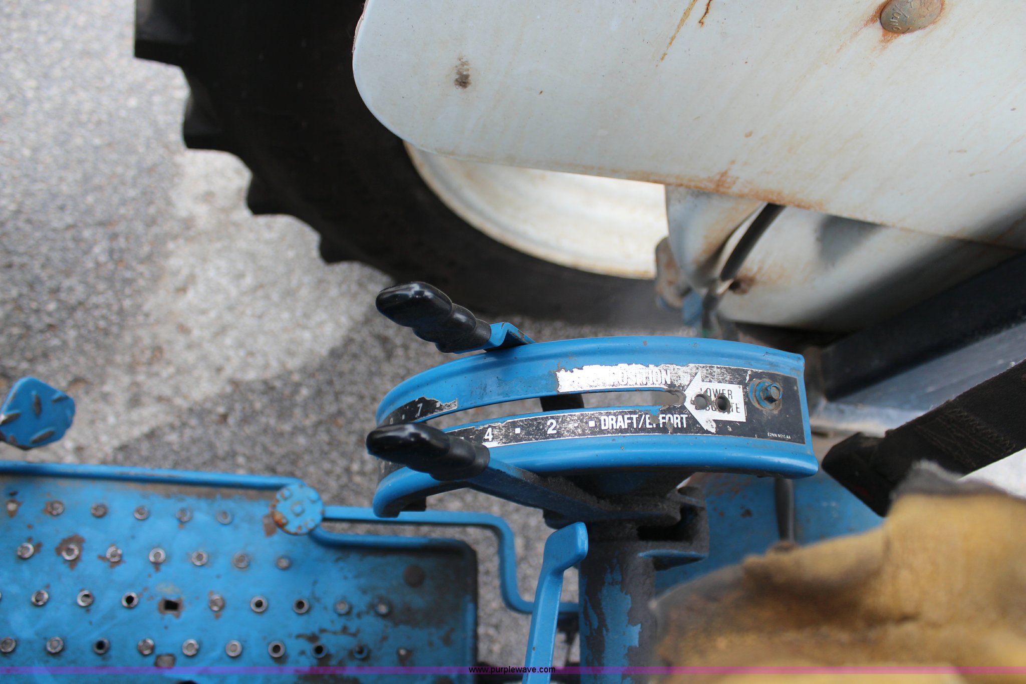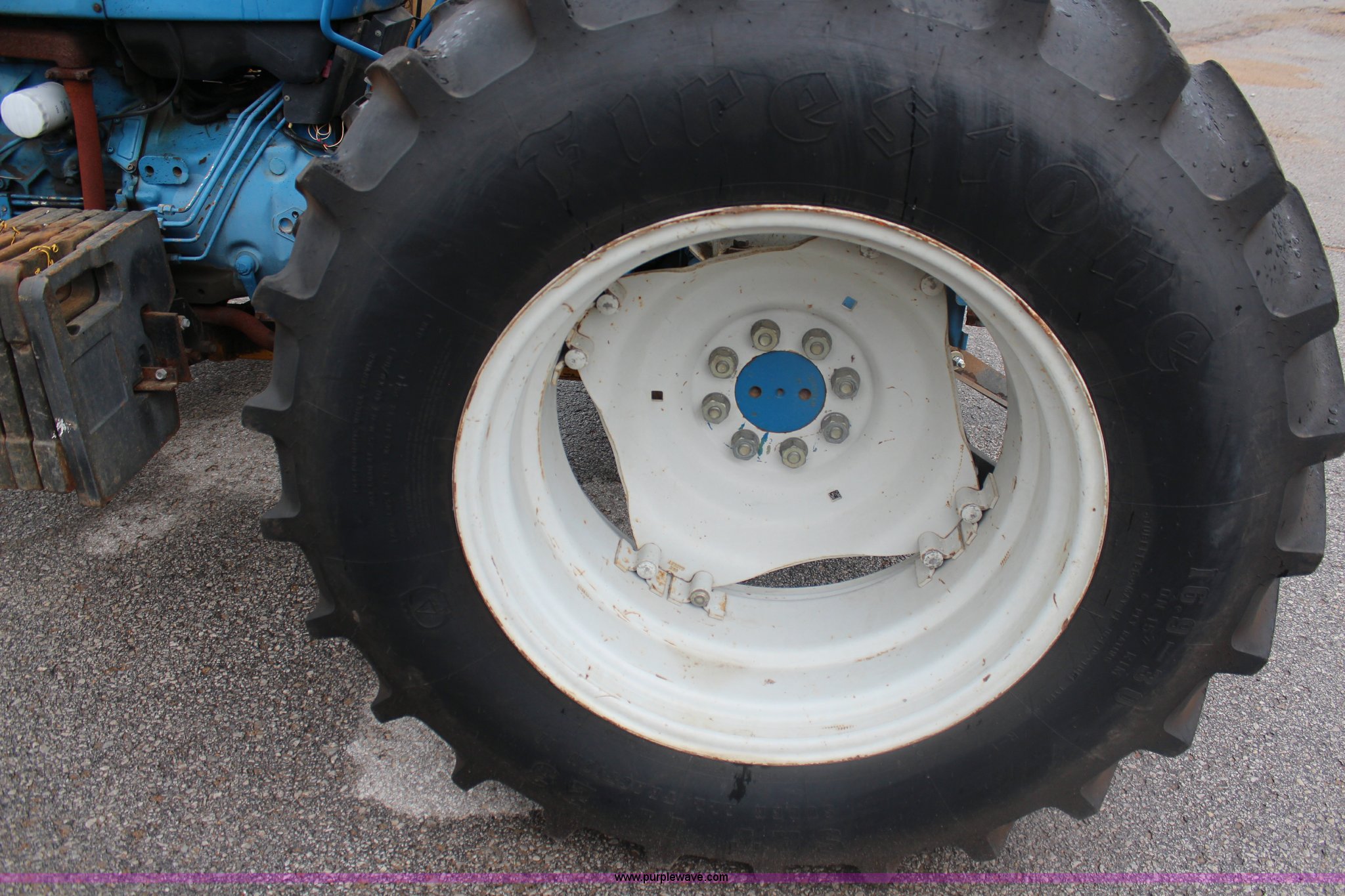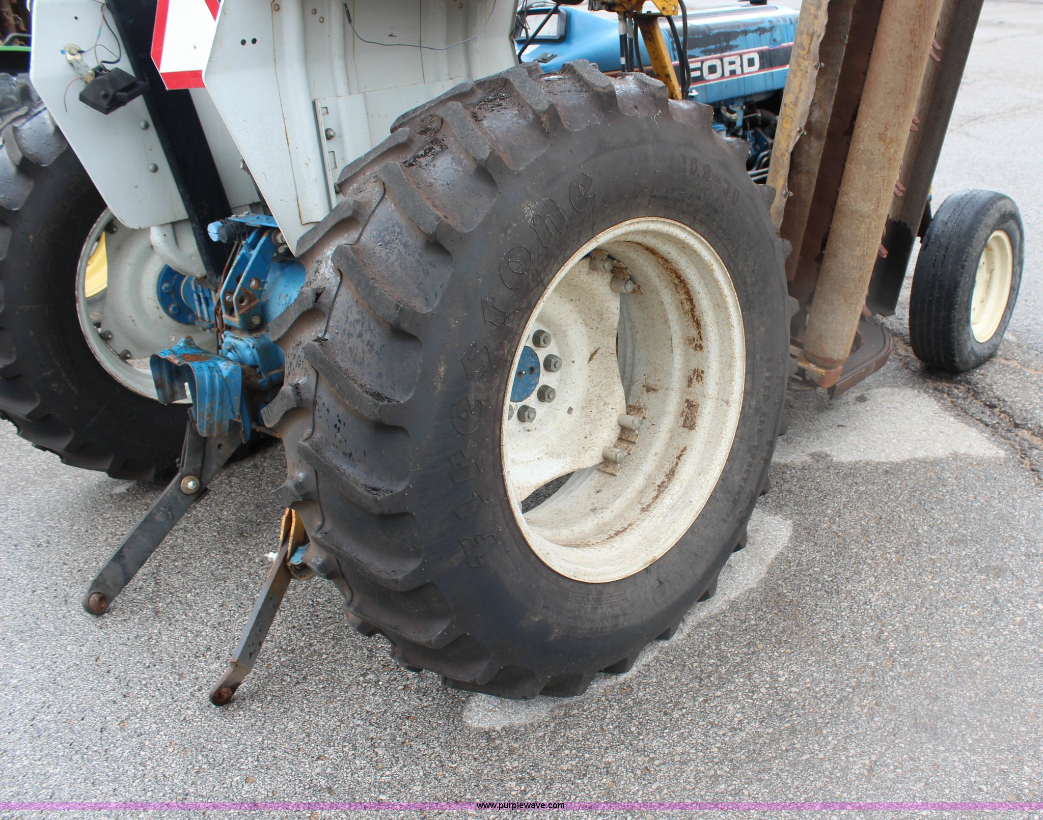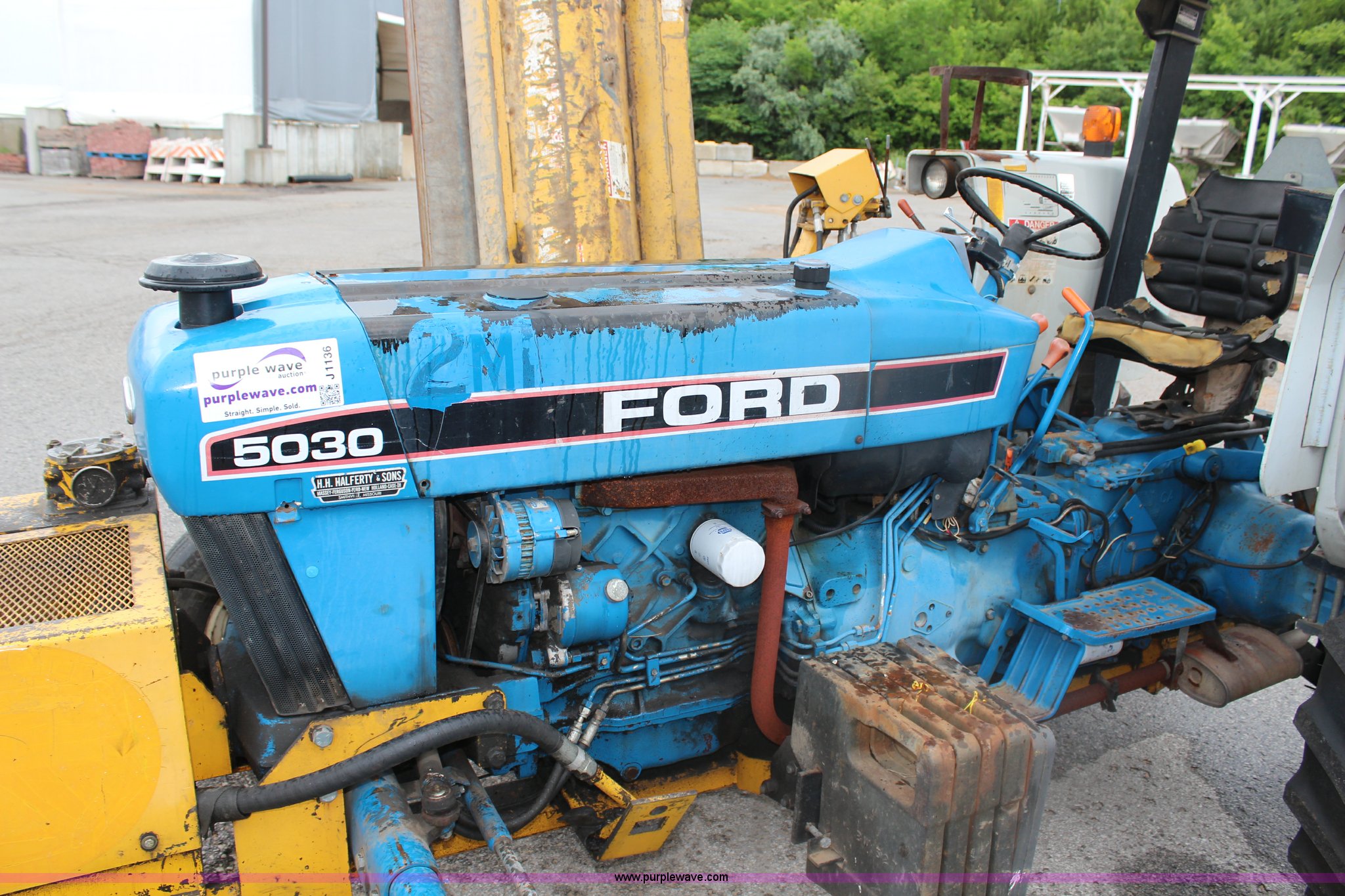 Purple Wave is selling a used Tractor in Kansas. This item is a Ford 5030 tractor with the following: 3,950 hours on meter, Ford 4.2L four cylinder diesel engine, 62 HP, Serial 4706234E11, Manual transmission, 8F-8R gears, Canopy, Three point, 540 PTO, Single rear hydraulic remote, Front mount hydraulic pump, 17.3 gallon fuel tank, 89.5" wheelbase, 225/75R16 front tires, 16.9-30 rear tires, Alamo flail mower system, 76"W, Serial 47837