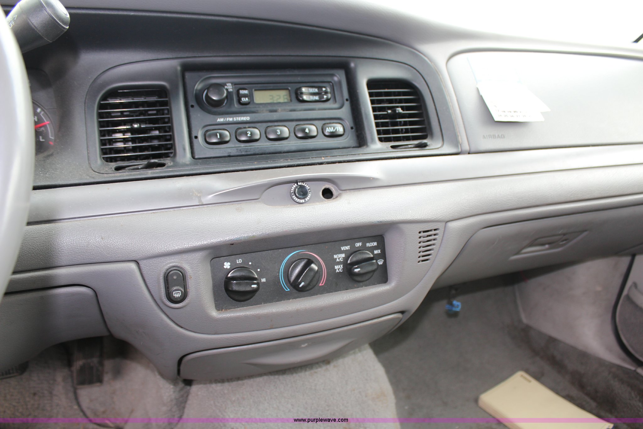 Purple Wave is selling a used Passenger Vehicle in Kansas. This item is a 2001 Ford Crown Victoria Police Interceptor with the following: 126,087 miles on odometer, 4.6L V8 SOHC 16V gas engine, Automatic transmission, AC and heat, Tilt, Cruise, AM/FM, Power windows, locks, mirrors, and seats, Cloth interior, 225/60R16 tires, Tires flat, Idles rough, Check engine light is on, Battery dead, Dents and scratches, Hole in roof from equipment