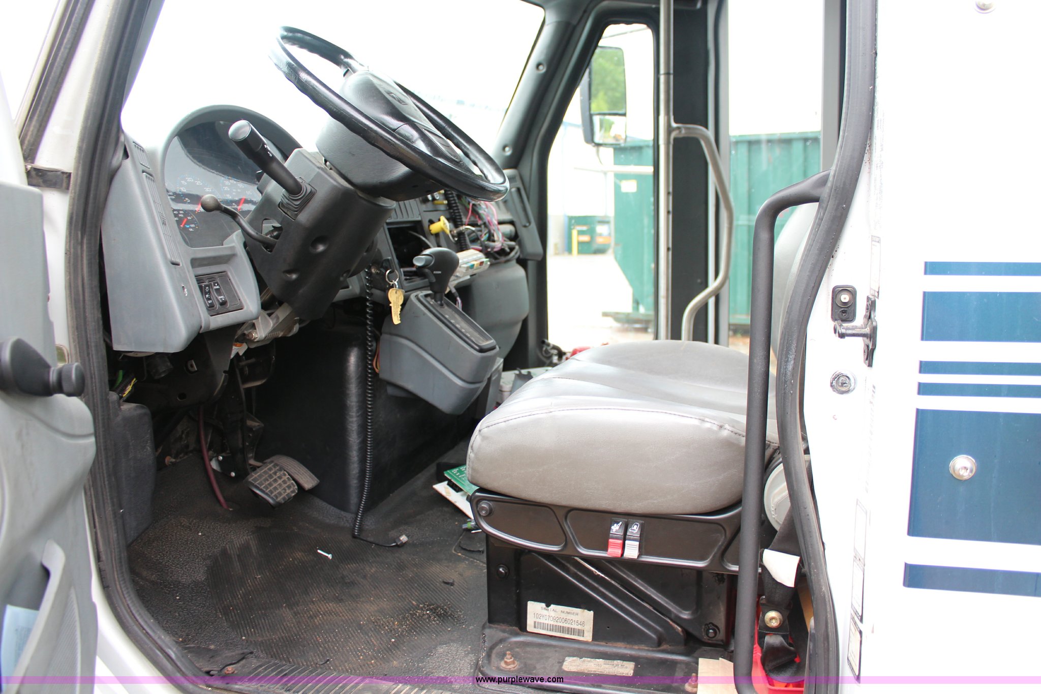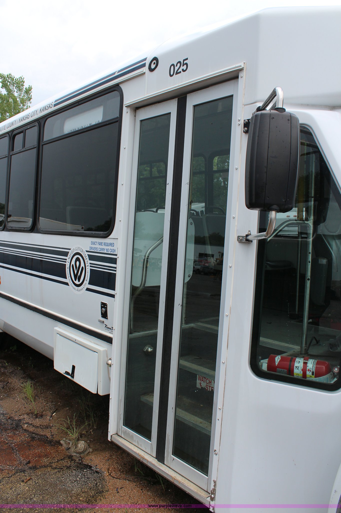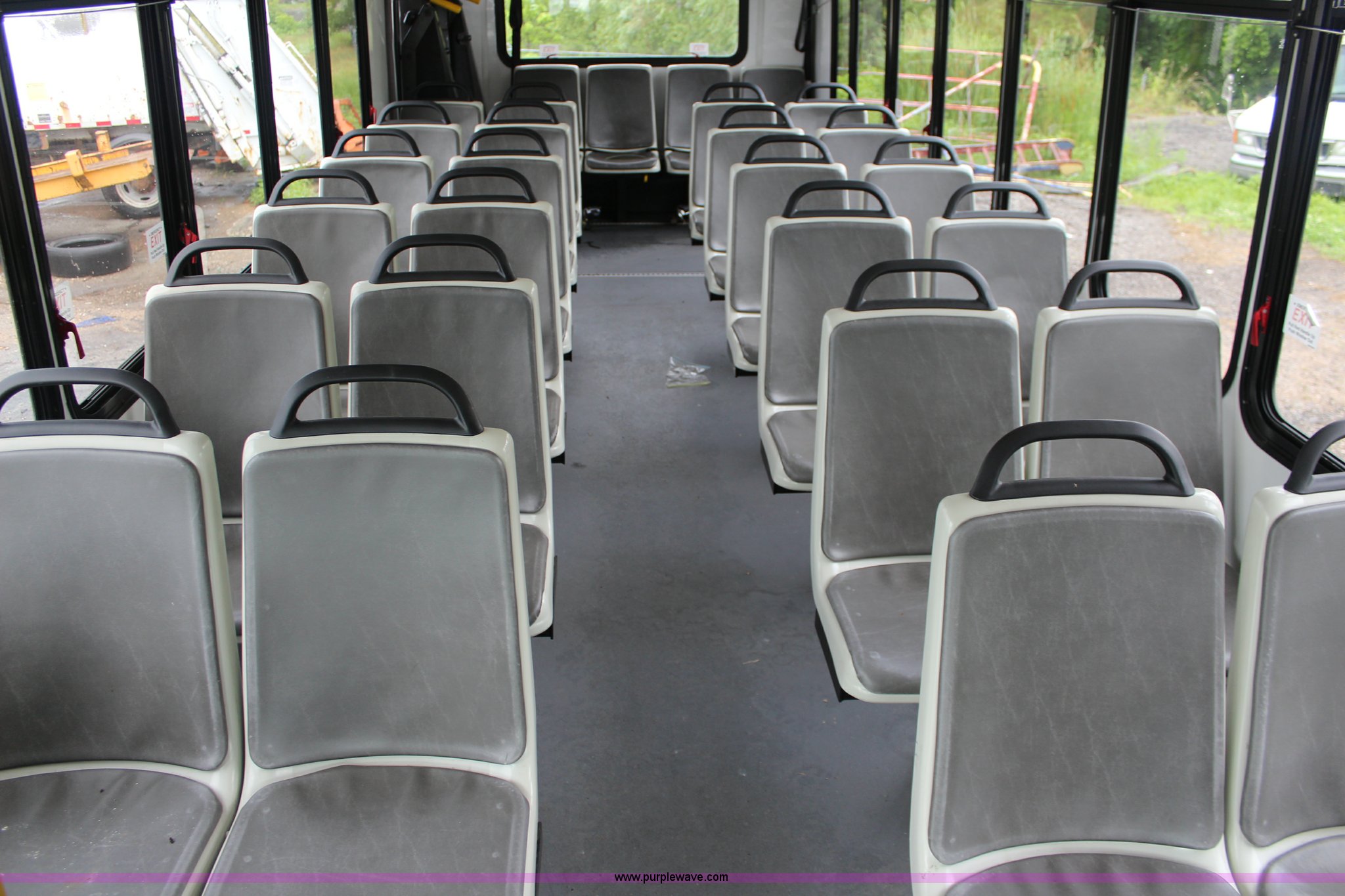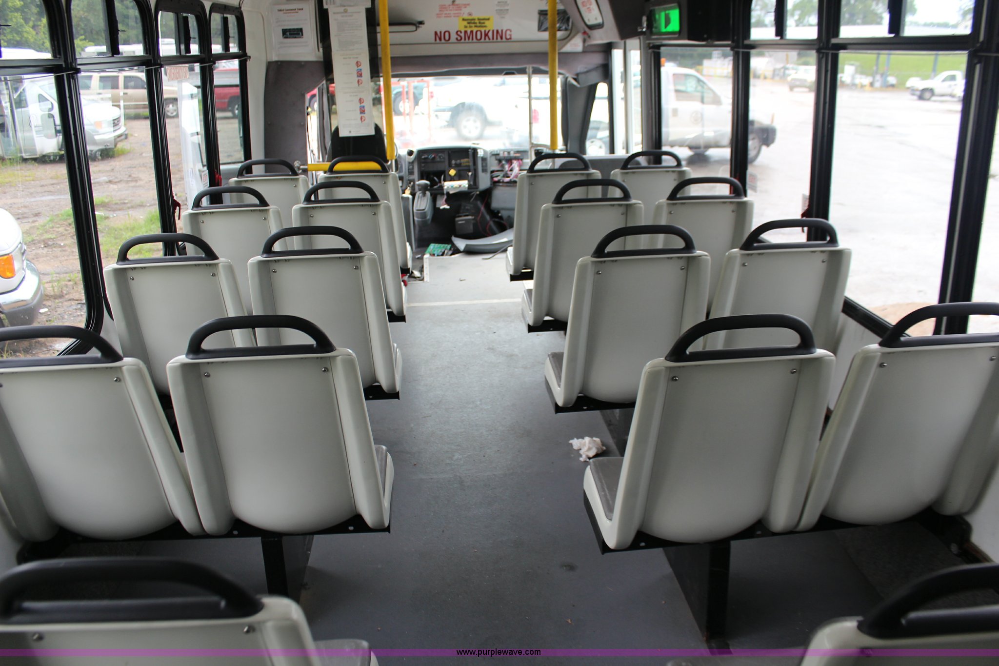 Purple Wave is selling a used Bus in Kansas. This item is a 2007 International 3200 bus with the following: 68,719 miles on odometer, International 6.0L V8 diesel engine, Automatic transmission, AC and heat, Tilt, Cruise, Manual windows and locks, Vinyl interior, 28 passenger capacity, Wheelchair ramp, Air brakes, 245/70R19.5 tires, Batteries are unhooked, Fuel cap missing, Belt on engine broken, Unknown operating condition