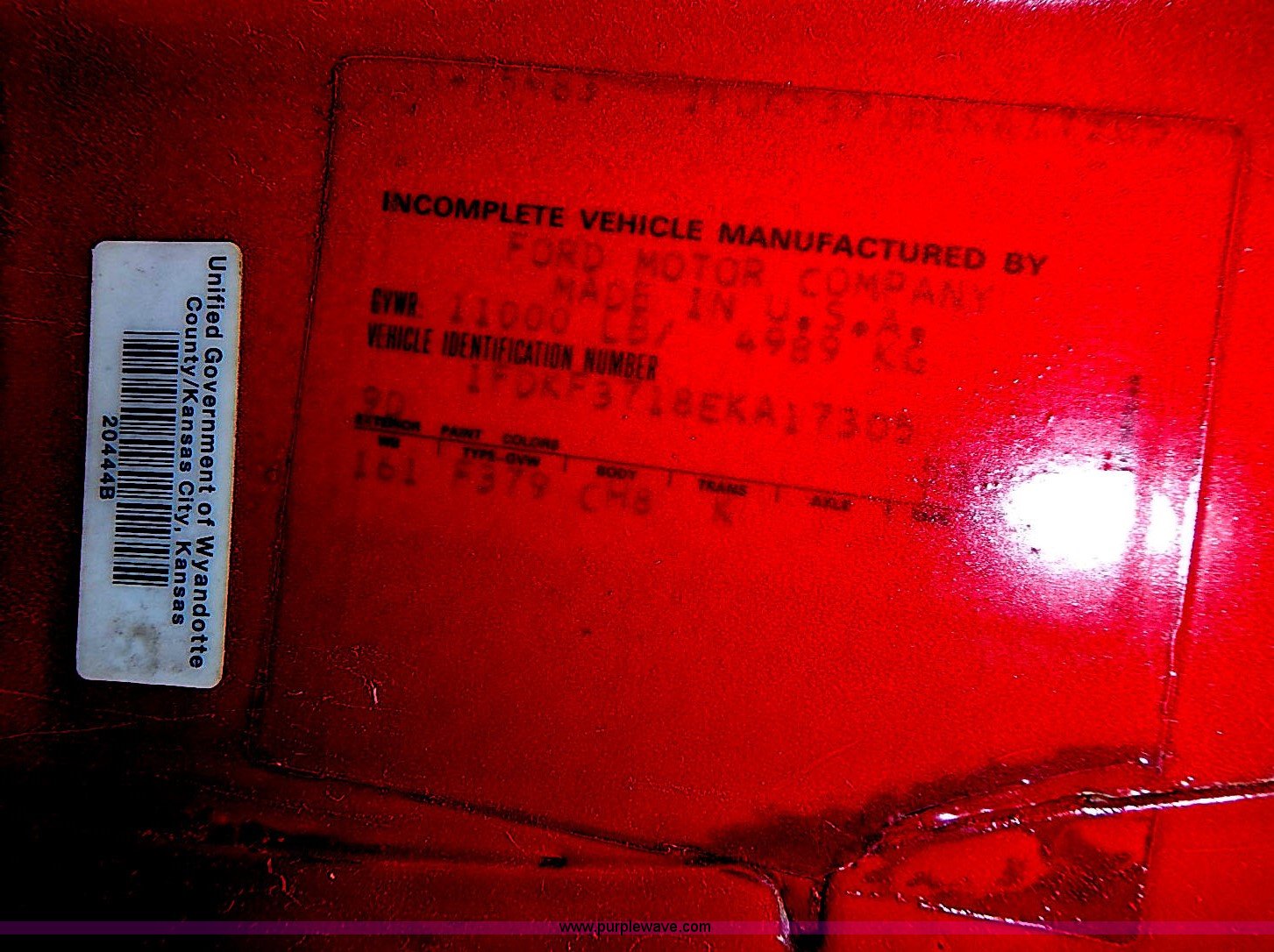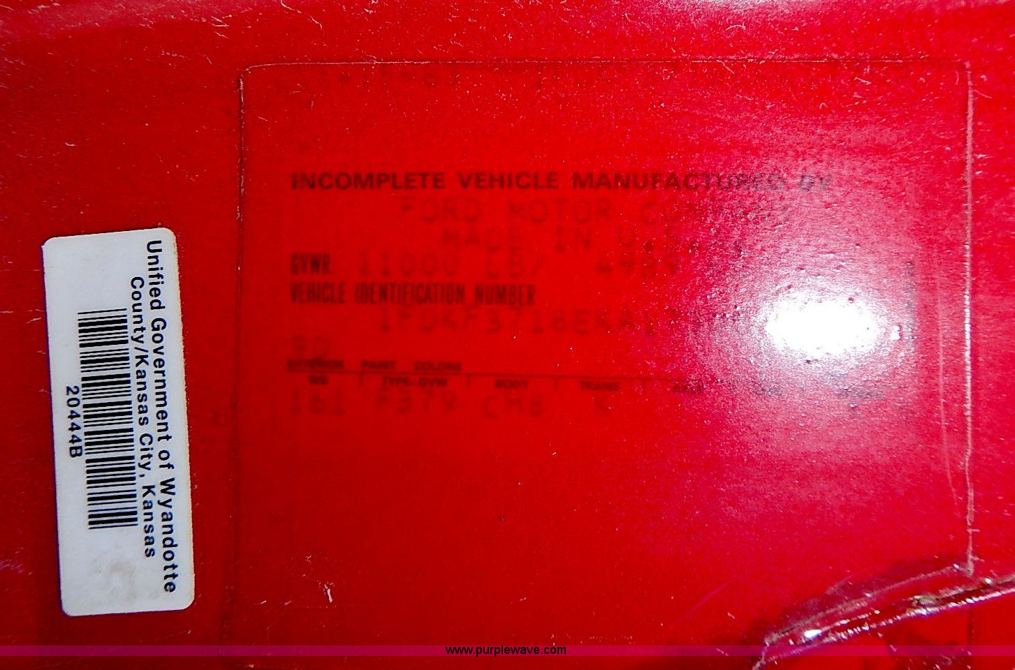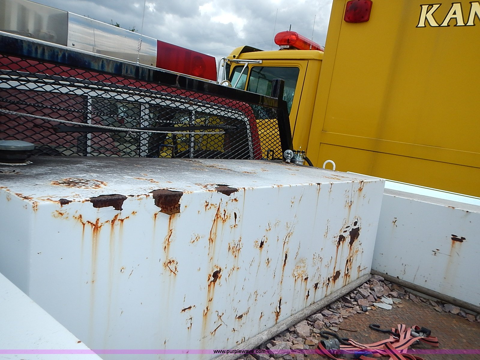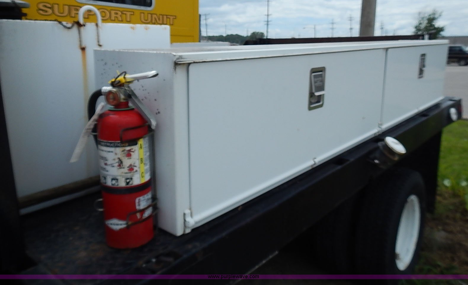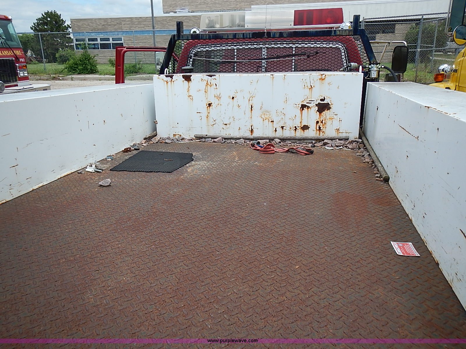 1984 Ford F350 flatbed truck. 47,257 miles on odometer, 7.3L V8 diesel engine, Automatic transmission, AC and heat, AM, Manual windows and locks, Cloth interior, Spotlight, Light bar, 10'5"L x 93"W flatbed Lift gate, (2) toolboxes 8'L, 100 gallon fuel tank, 215/85R16 tires, Vehicle will not start, Batteries dead, Rust. 1FDKF3718EKA17305. Unified Government of Wyandotte County. 444 Kindleberger Road. Kansas City, KS 66115