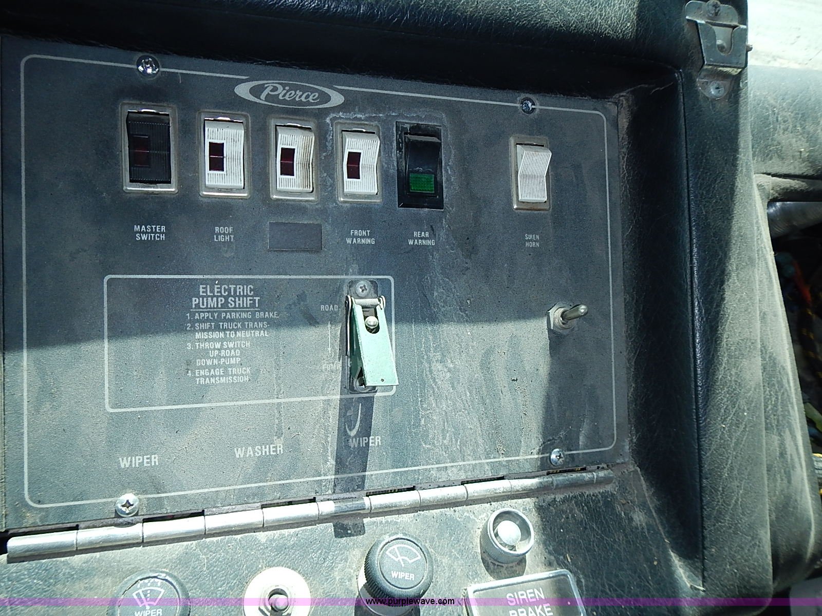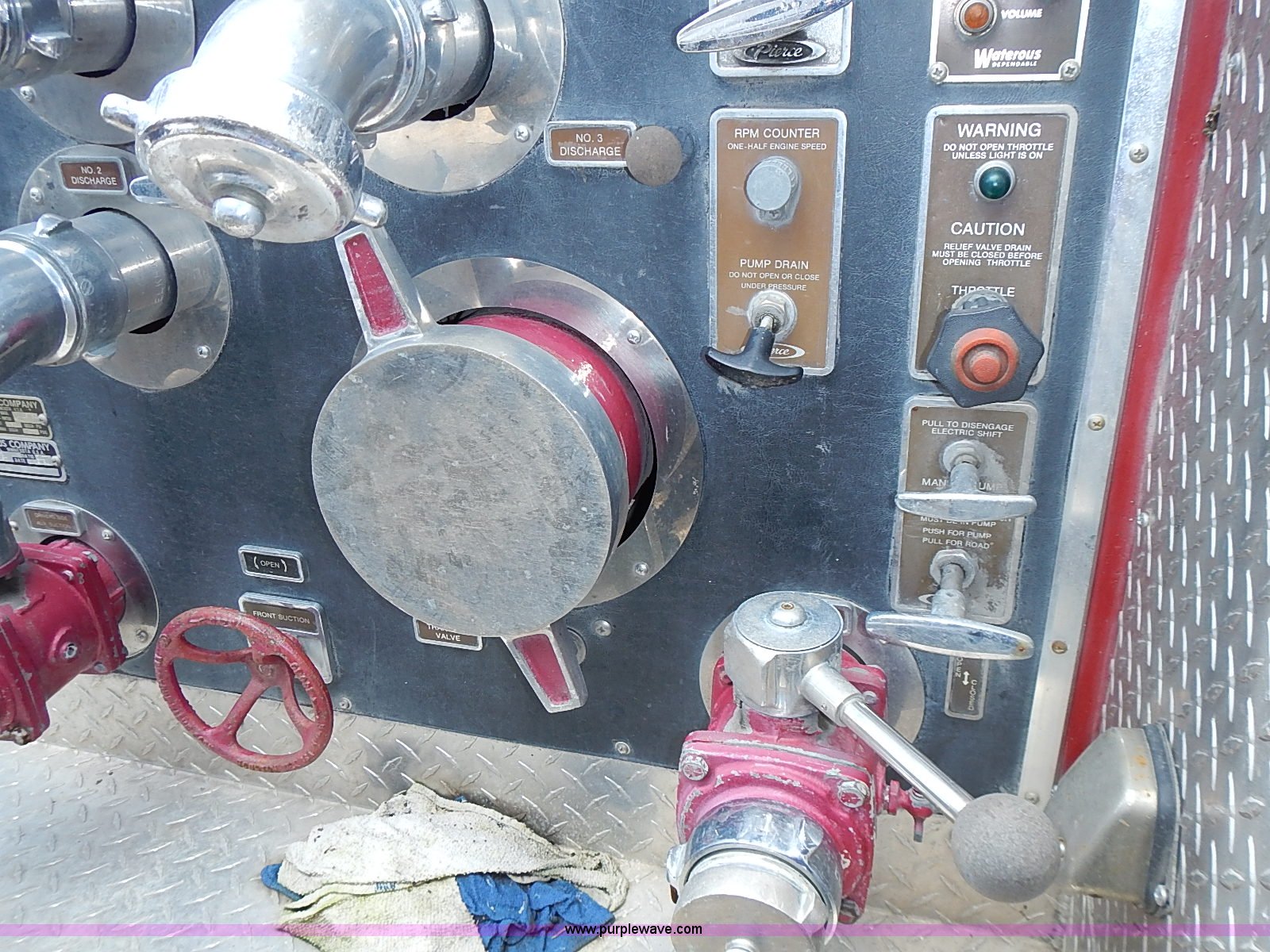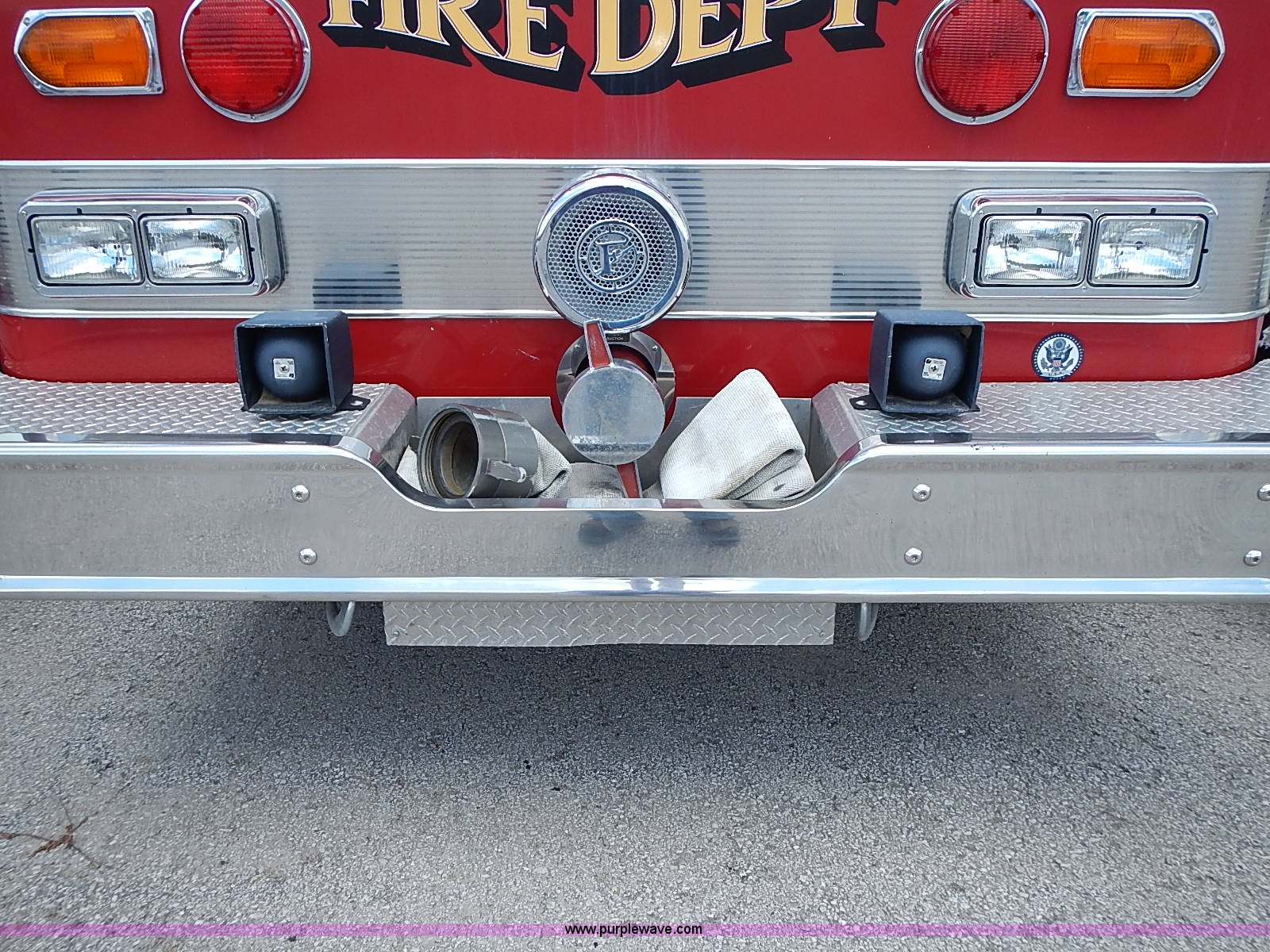 Purple Wave is selling a used Fire Truck or Emergency Vehicle in Kansas. This item is a 1984 Pierce fire truck with the following: 109,295 miles on odometer, Detroit Diesel V8 diesel engine, Automatic transmission, (2) hose reels, 1,250 gallon per minute pump, 12R22.5 tires, 37,180 GVWR, FAWR 13,180 lbs, RAWR 24,000 lbs, Unknown operating condition