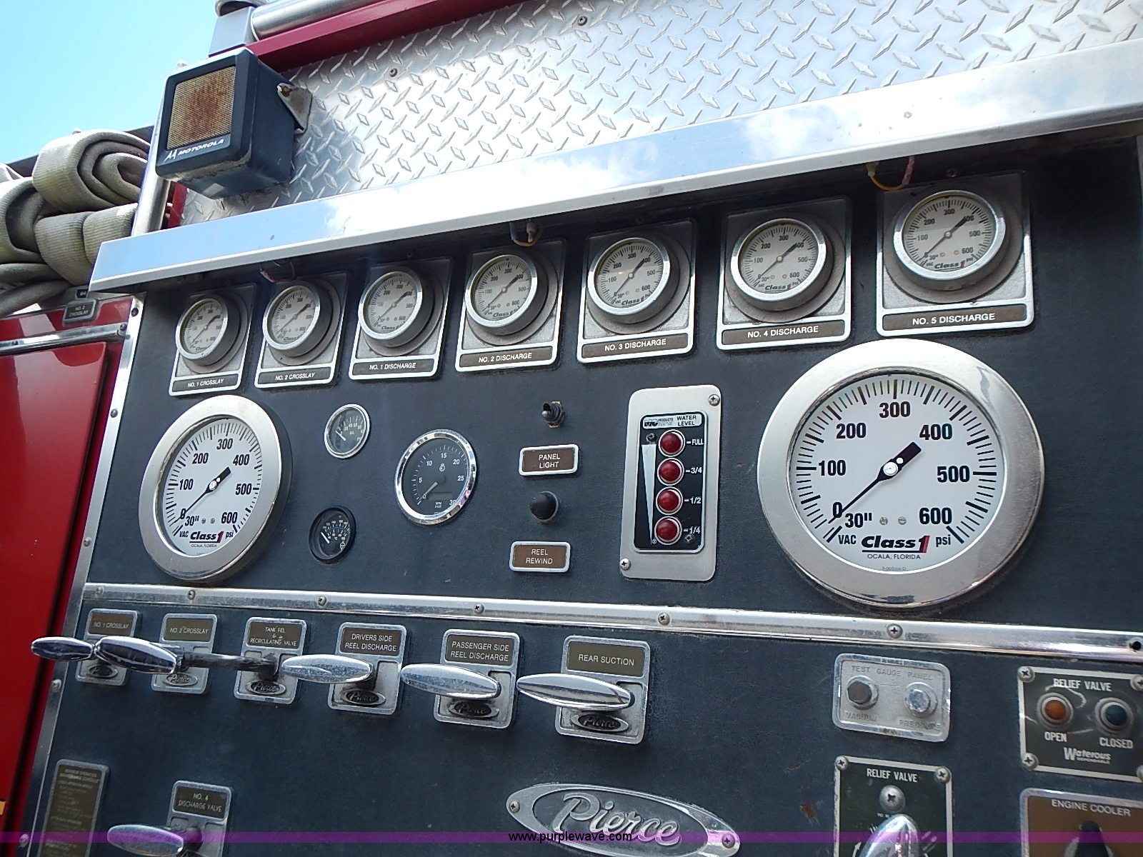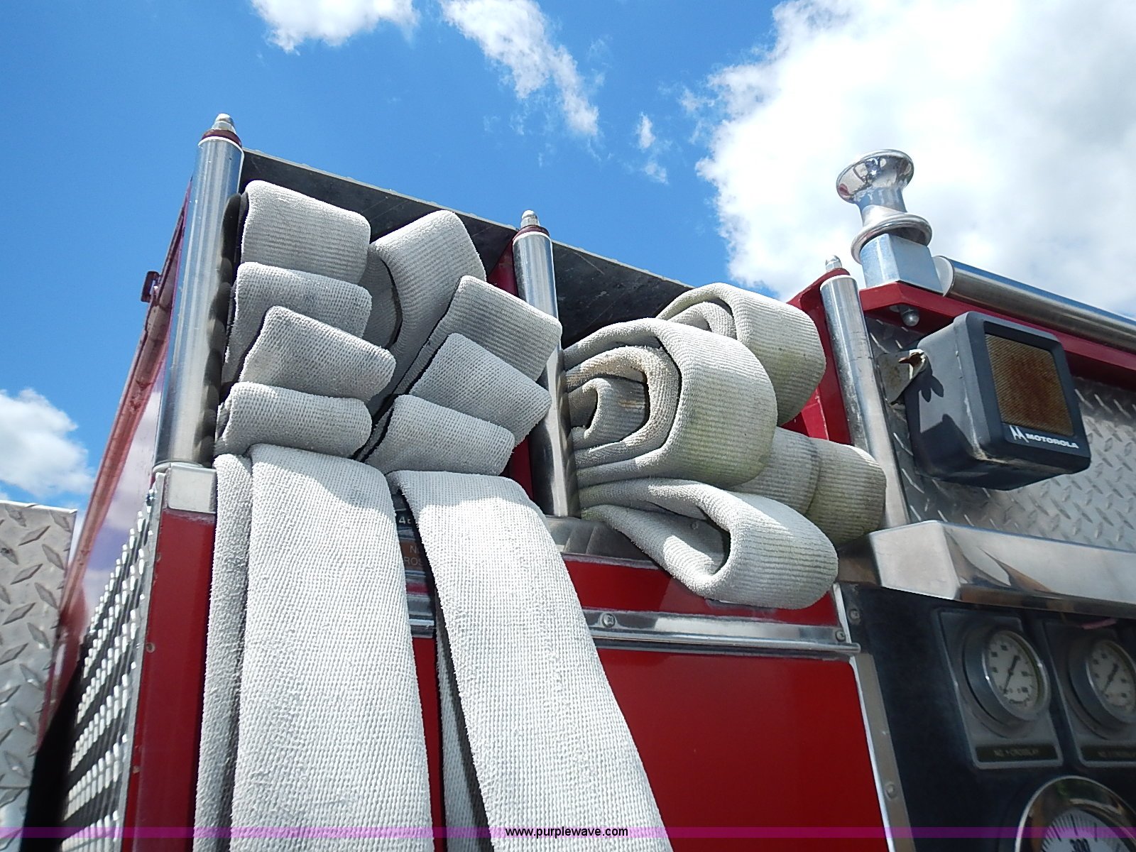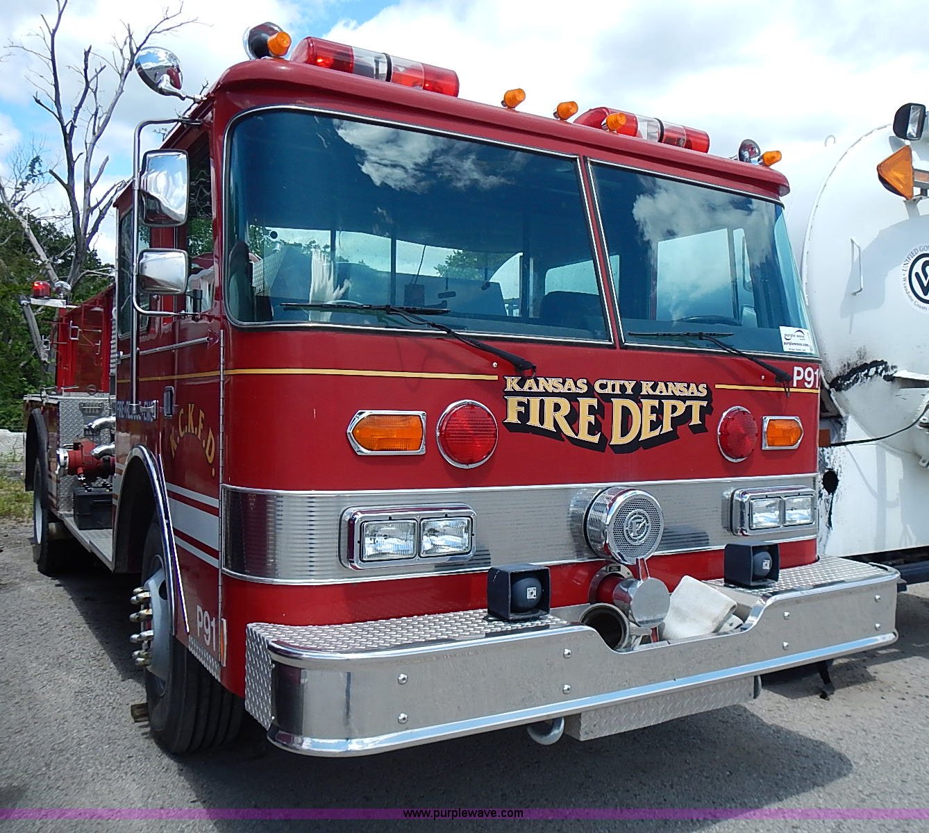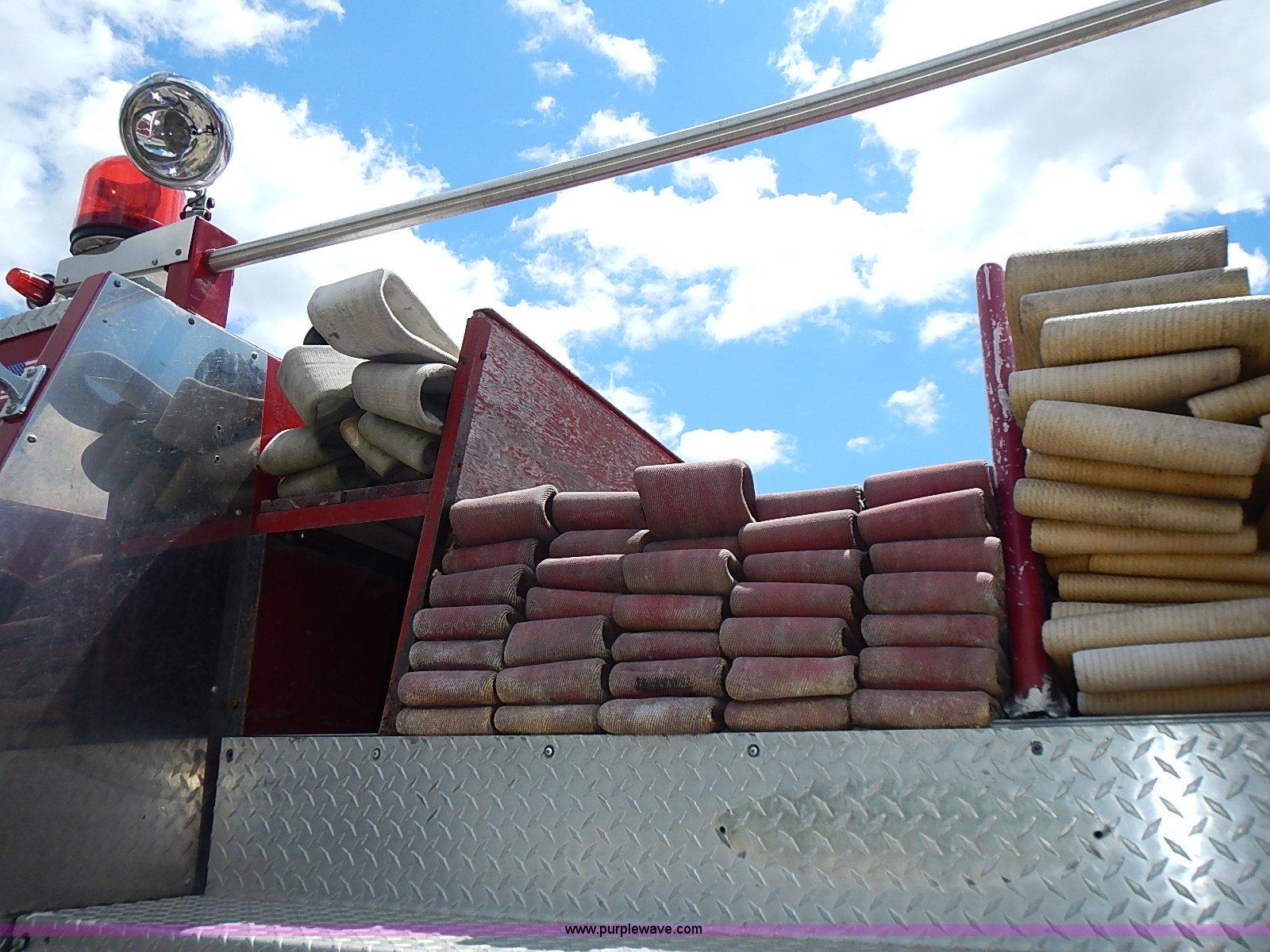 Purple Wave is selling a used Fire Truck or Emergency Vehicle in Kansas. This item is a 1984 Pierce fire truck with the following: 109,295 miles on odometer, Detroit Diesel V8 diesel engine, Automatic transmission, (2) hose reels, 1,250 gallon per minute pump, 12R22.5 tires, 37,180 GVWR, FAWR 13,180 lbs, RAWR 24,000 lbs, Unknown operating condition