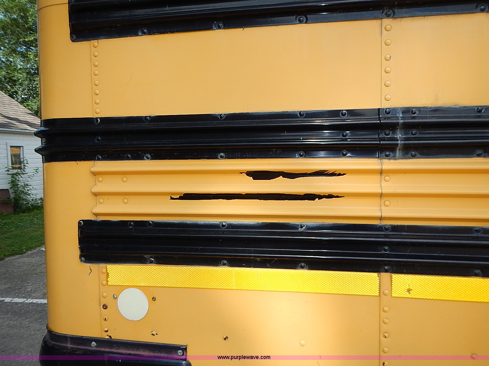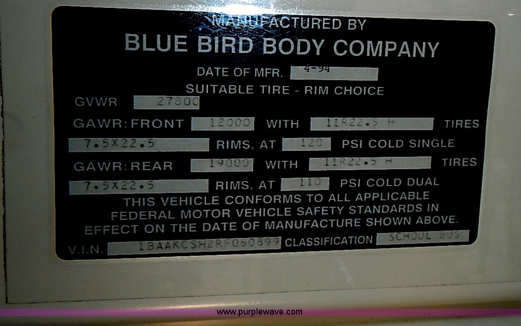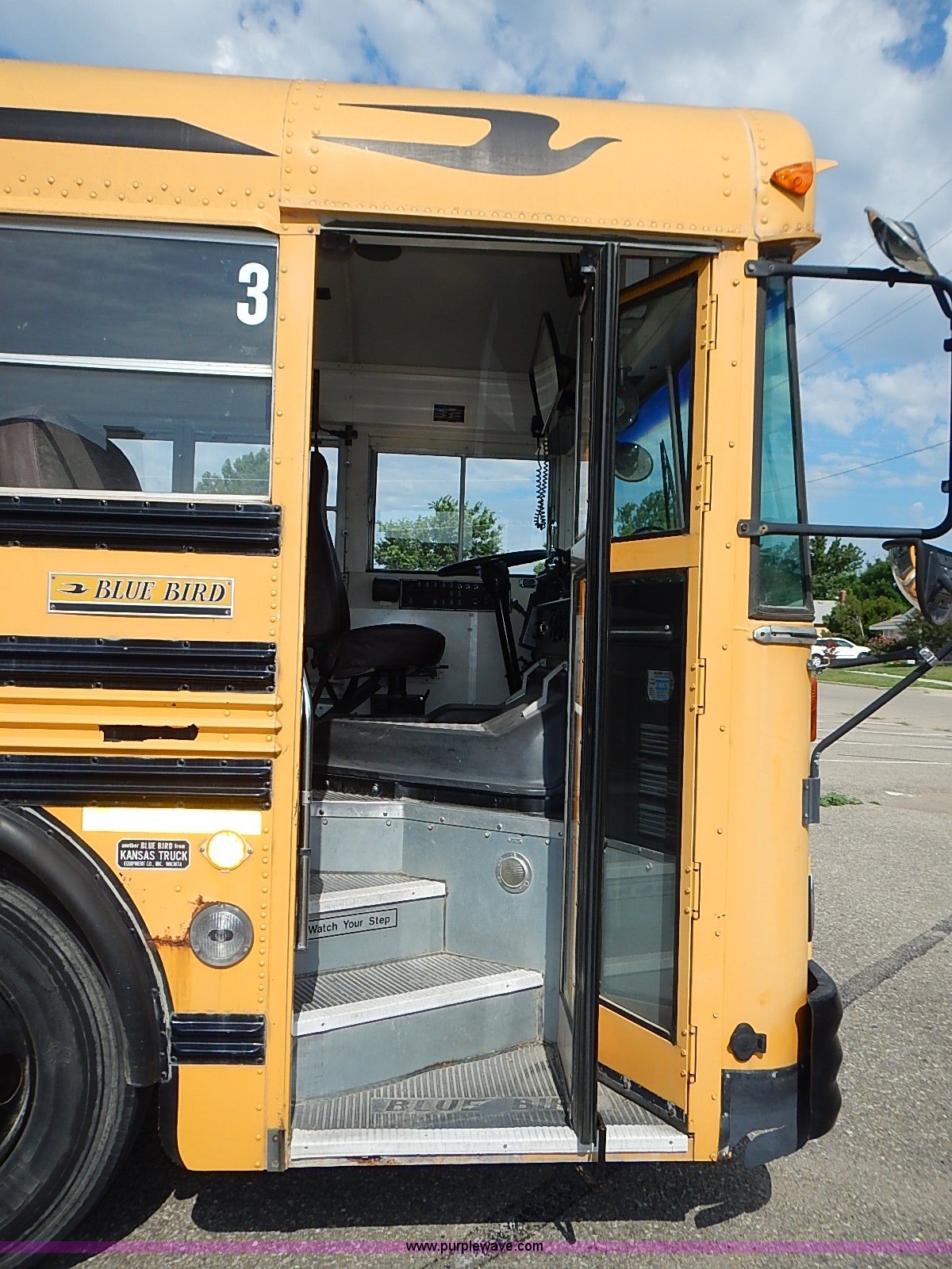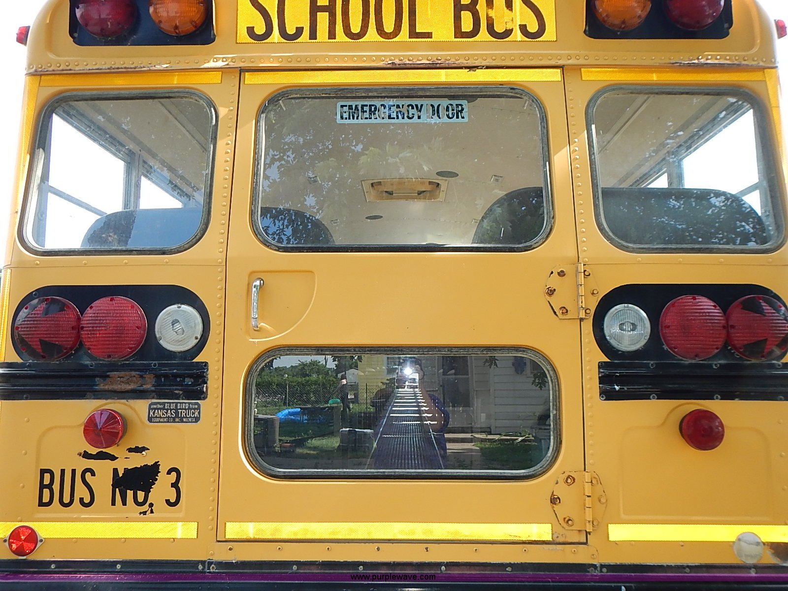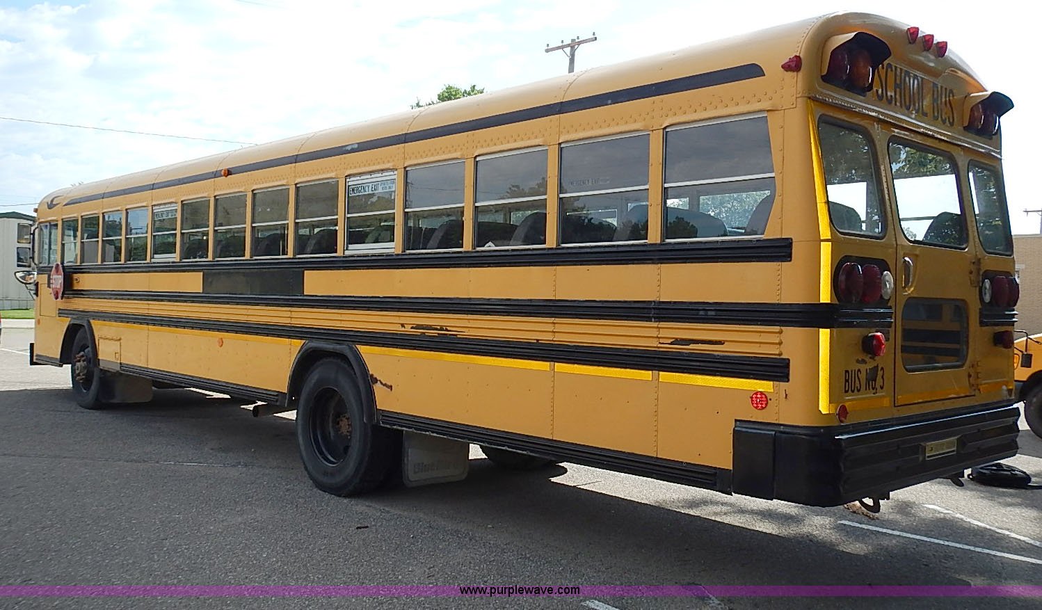Purple Wave is selling a used Bus in Kansas. This item is a 1994 Blue Bird TC2000 school bus with the following: 190,333 miles on odometer, Cummins 5.9L L6 diesel engine, Valve job at 110,000 miles, Serial 44988562, Automatic transmission, Heat, AM/FM/cassette, Manual windows and locks, Vinyl interior, 72 passenger capacity, Rear tow hooks, 11R22.5 tires, GVWR 27,800 lbs, Parking brake light is on, Dents and scratches, Rust, Paint peeling, Unit# 3