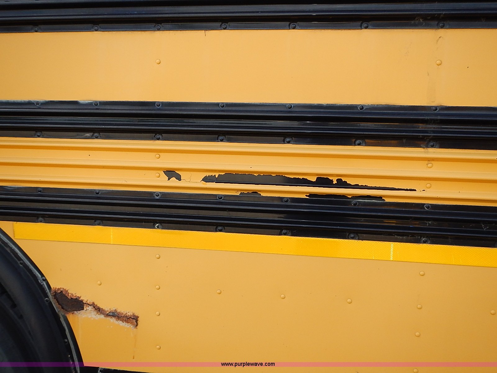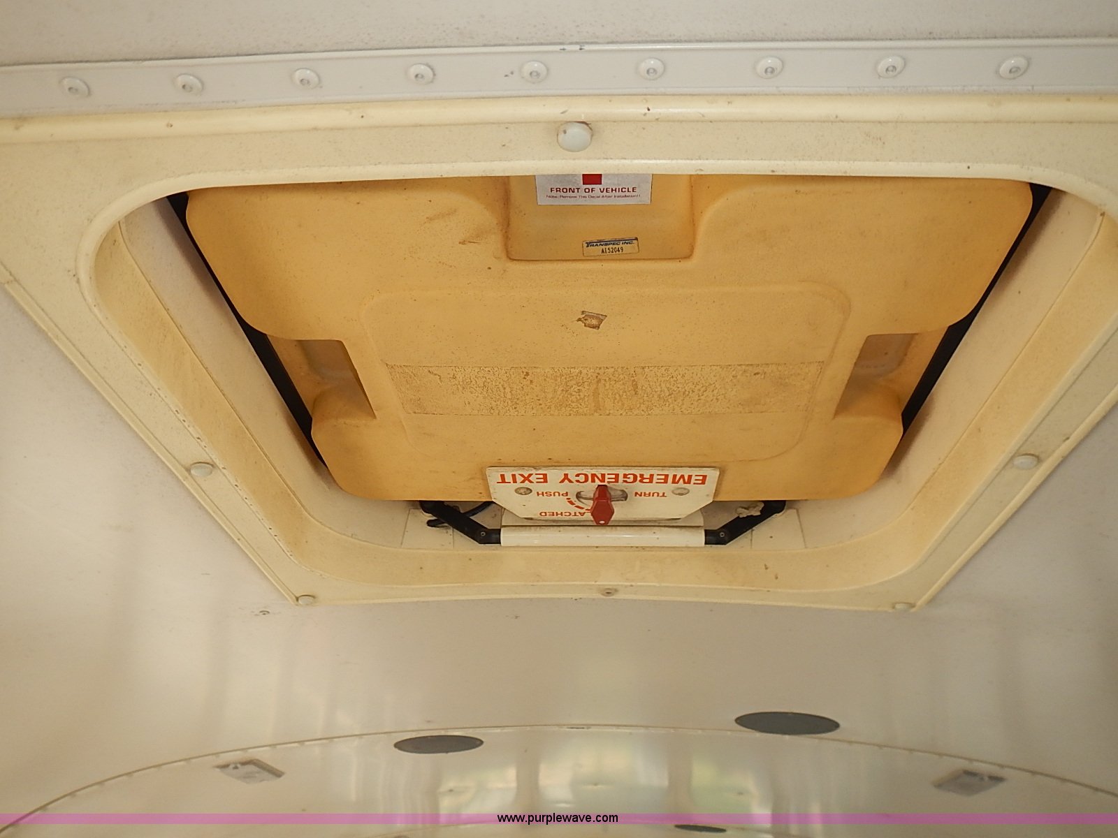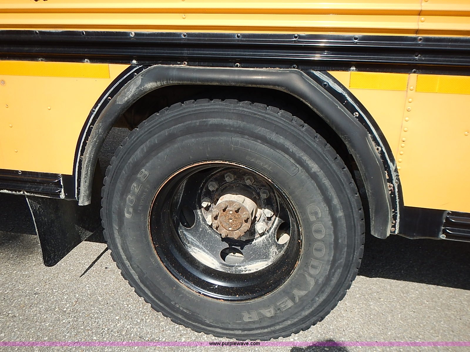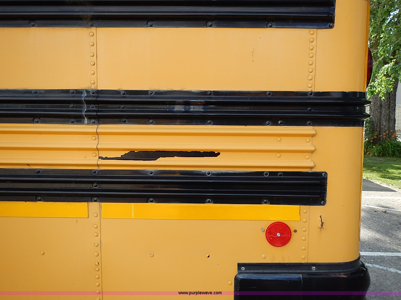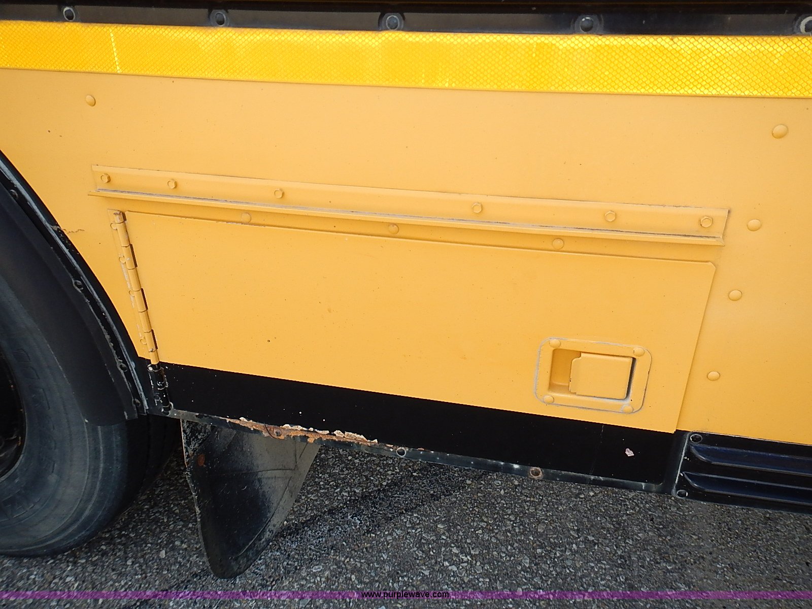 Purple Wave is selling a used Bus in Kansas. This item is a 1994 Blue Bird TC2000 school bus with the following: 190,333 miles on odometer, Cummins 5.9L L6 diesel engine, Valve job at 110,000 miles, Serial 44988562, Automatic transmission, Heat, AM/FM/cassette, Manual windows and locks, Vinyl interior, 72 passenger capacity, Rear tow hooks, 11R22.5 tires, GVWR 27,800 lbs, Parking brake light is on, Dents and scratches, Rust, Paint peeling, Unit# 3