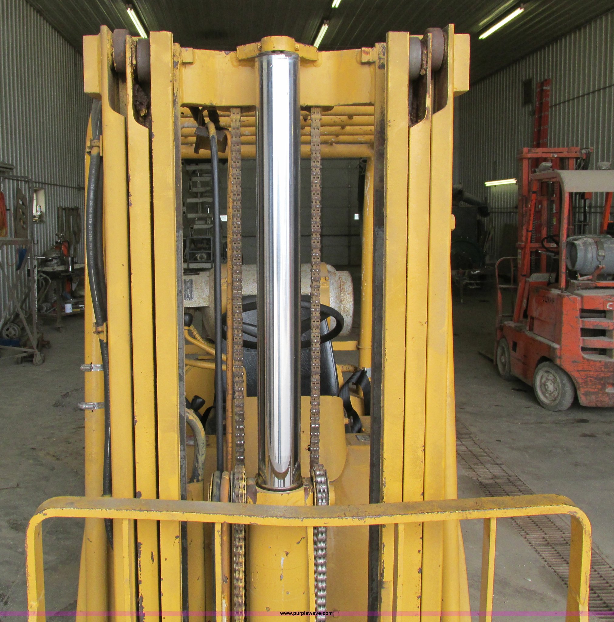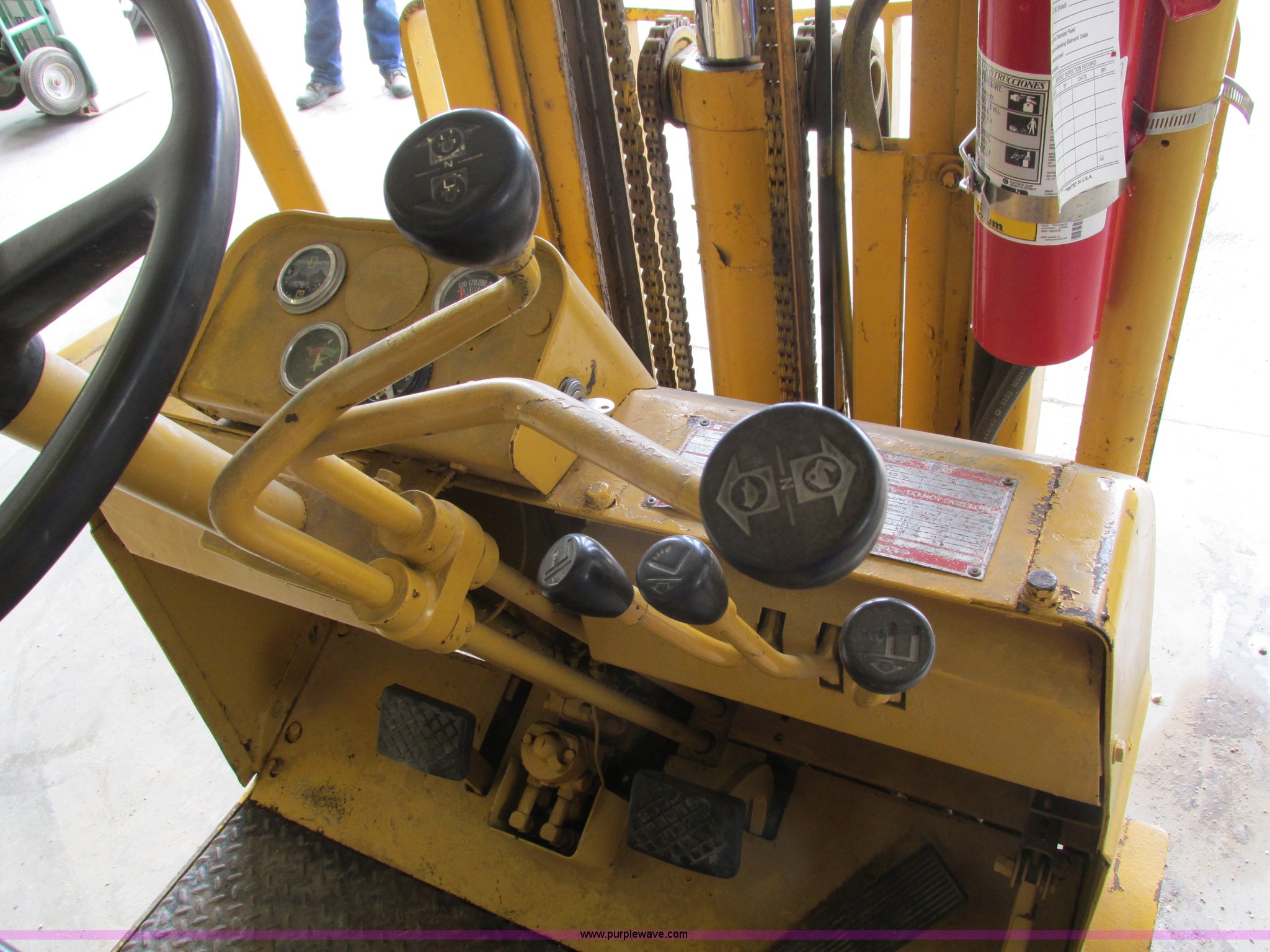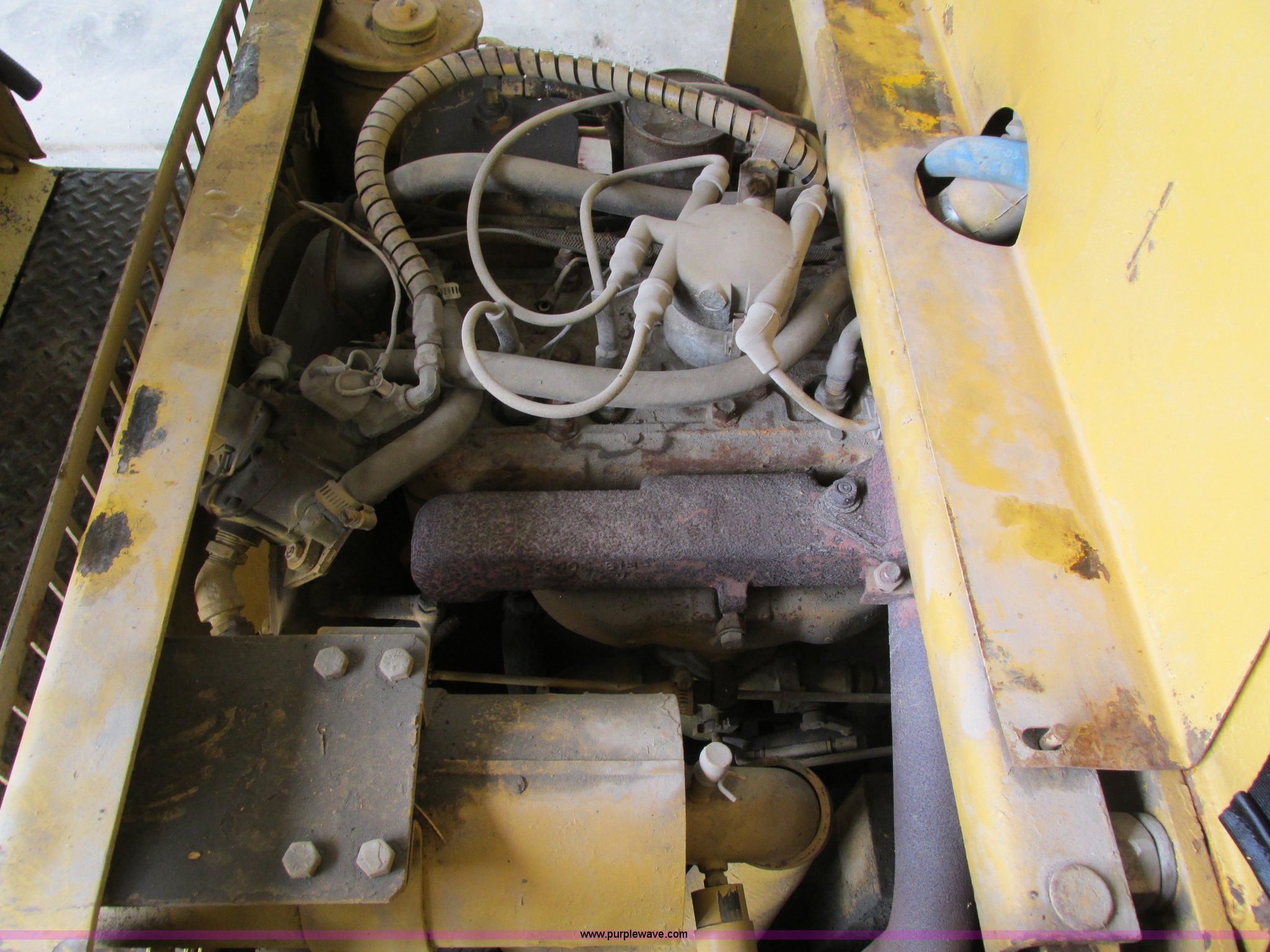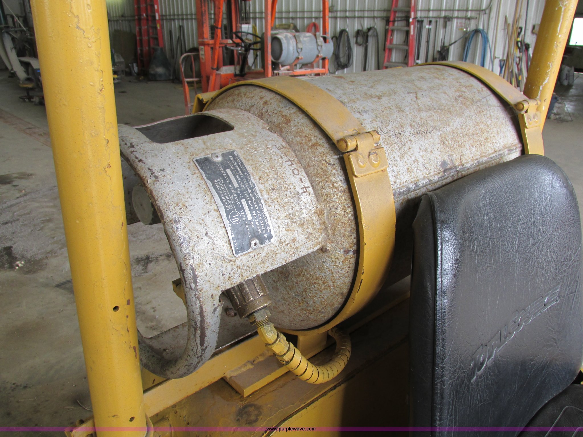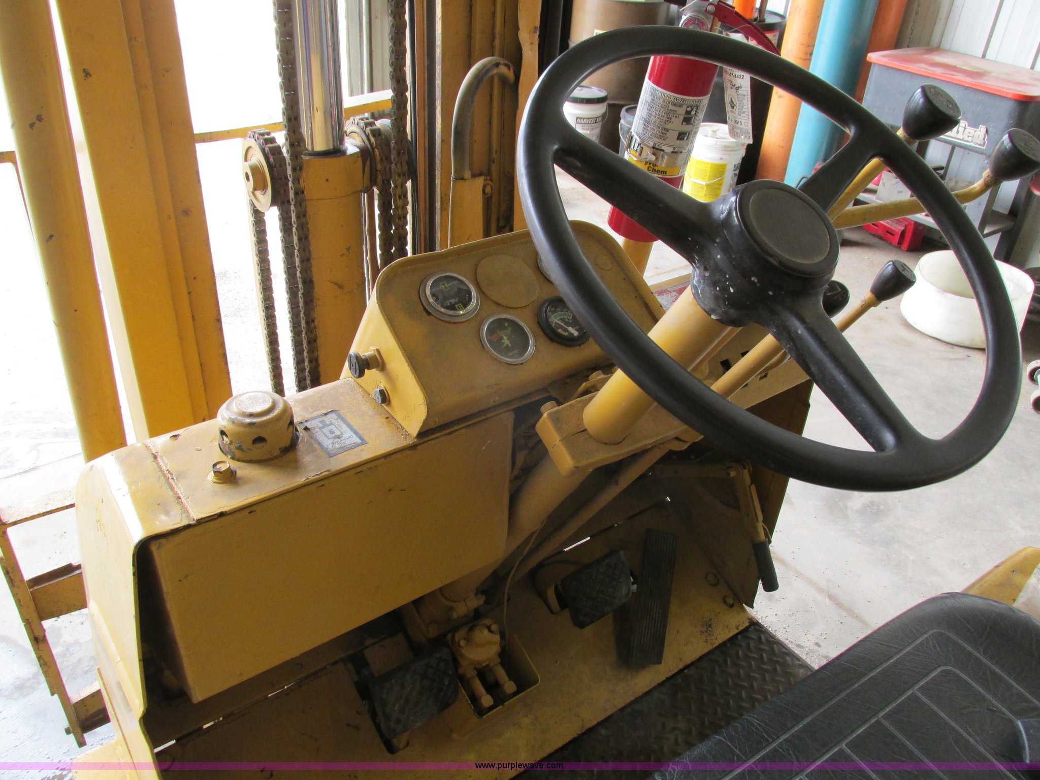 Purple Wave is selling a used Cushion Tire or Pneumatic Forklift in Iowa. This item is a Caterpillar TC30 forklift with the following: 6,432 hours on meter, Four cylinder LP engine, Two speed transmission, Block heater, 42"L forks, Three stage mast, Tilt, Side shift, 3,000 lbs capacity, LP tank included, Parking brake inoperable, Parts to be fixed included, Serial 12X1400