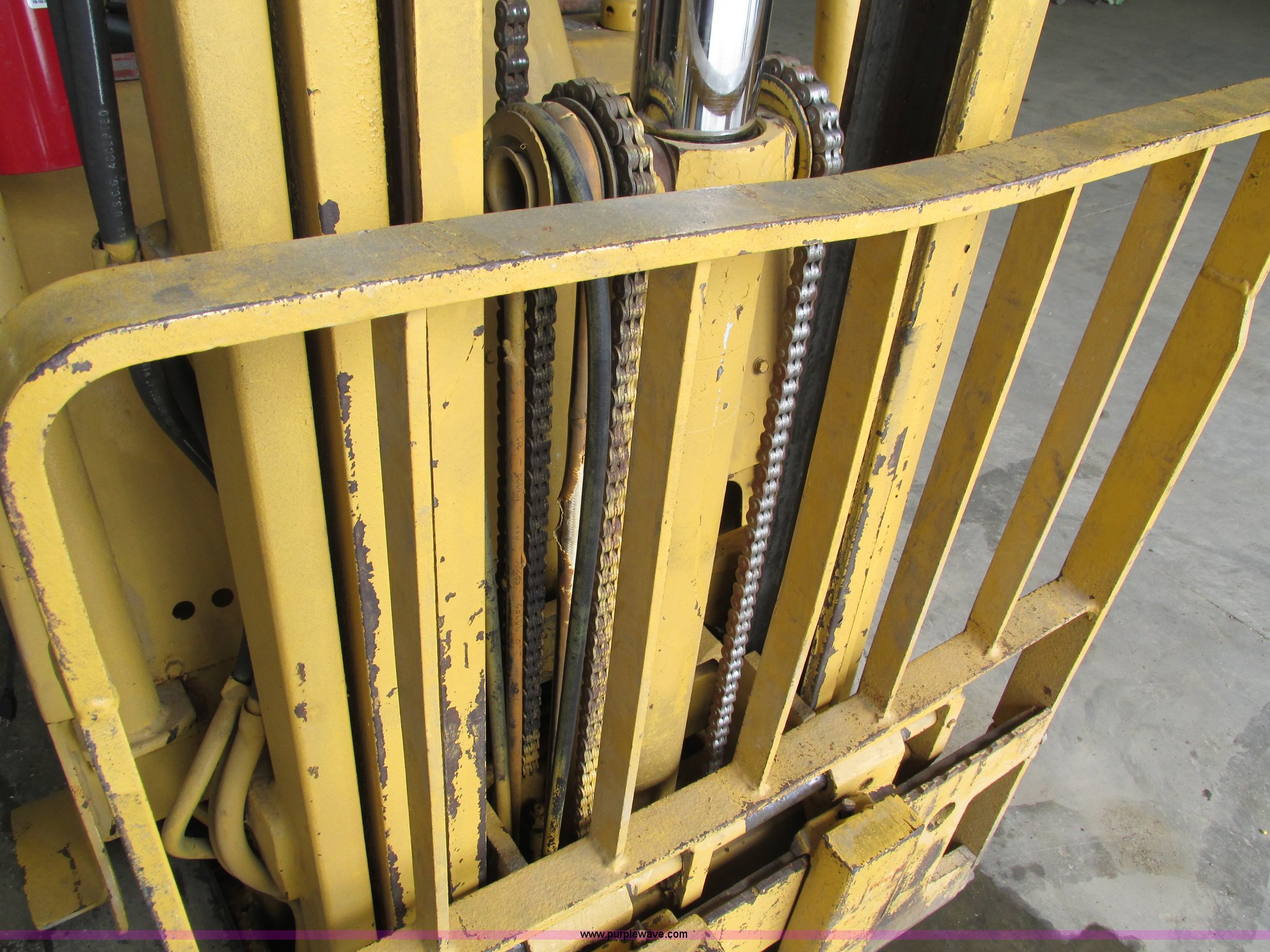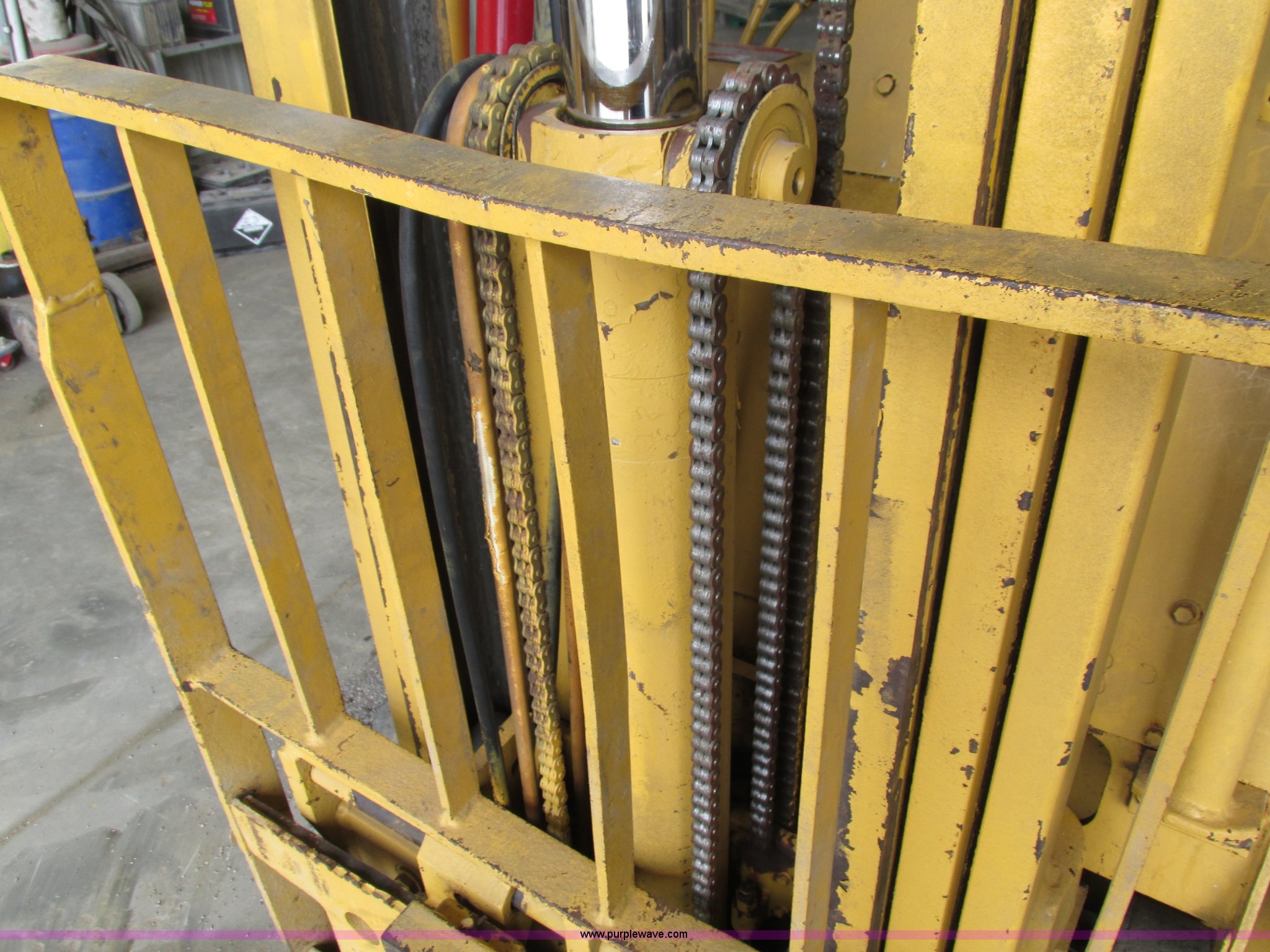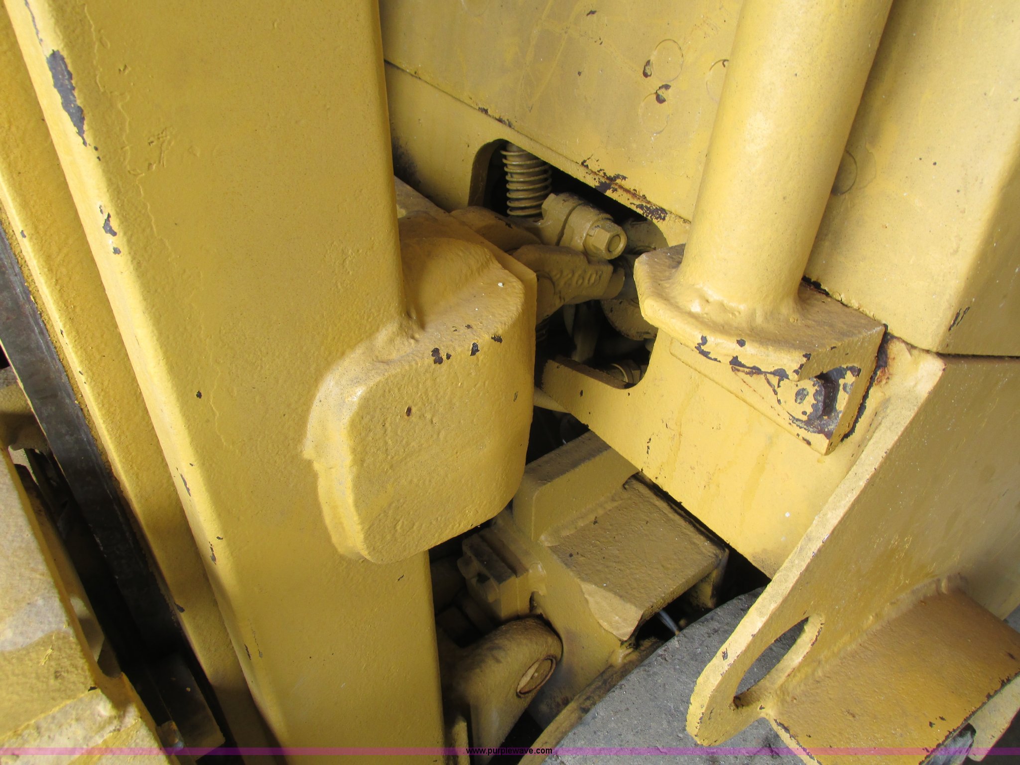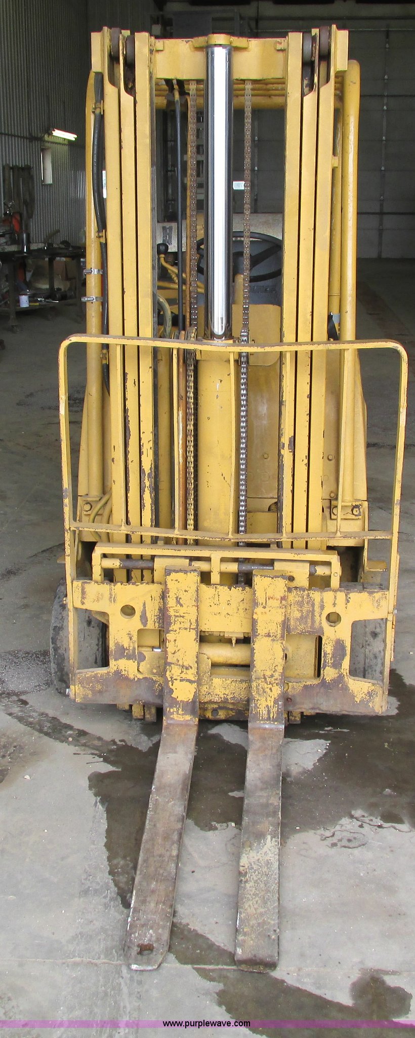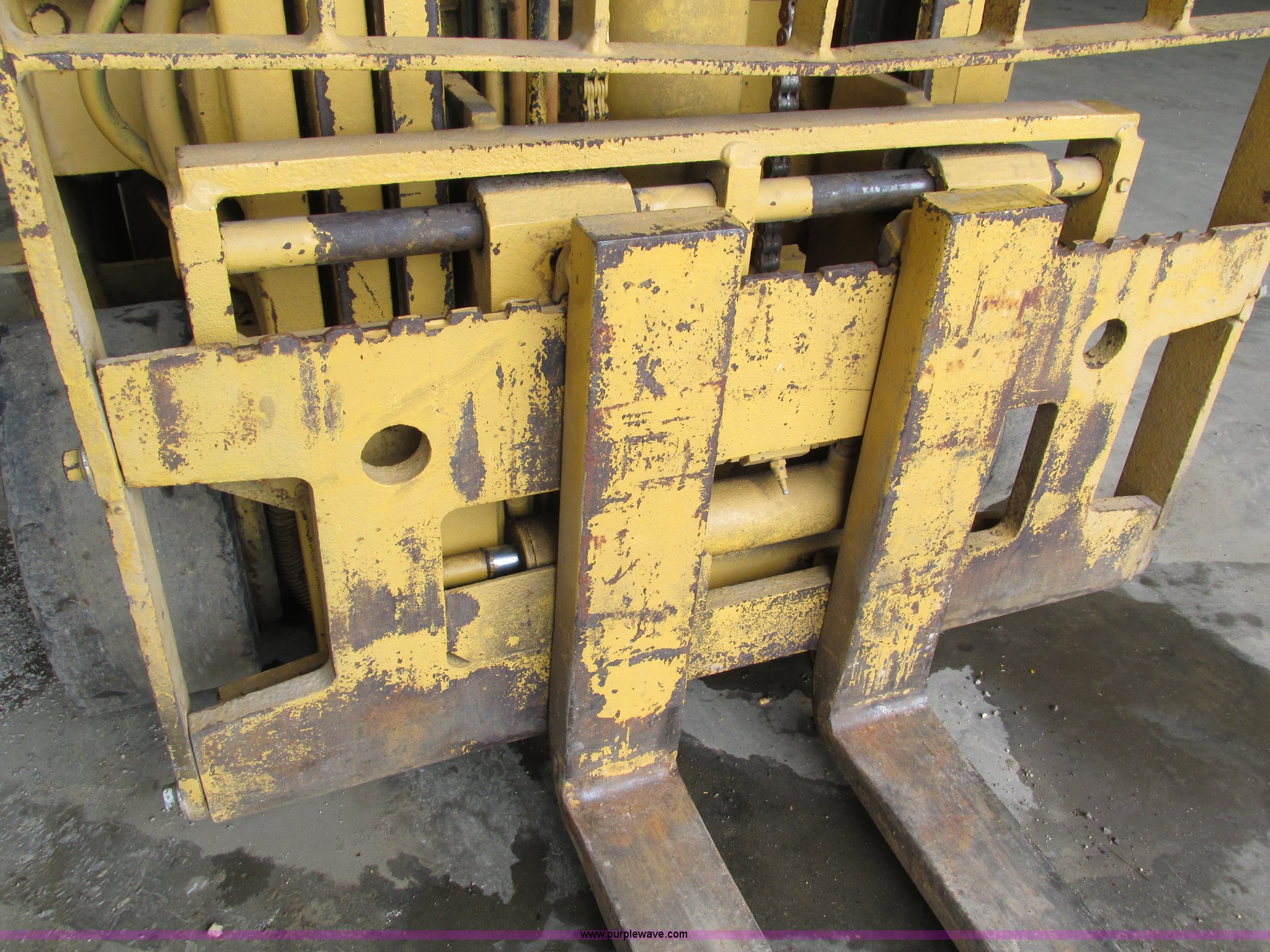 Purple Wave is selling a used Cushion Tire or Pneumatic Forklift in Iowa. This item is a Caterpillar TC30 forklift with the following: 6,432 hours on meter, Four cylinder LP engine, Two speed transmission, Block heater, 42"L forks, Three stage mast, Tilt, Side shift, 3,000 lbs capacity, LP tank included, Parking brake inoperable, Parts to be fixed included, Serial 12X1400