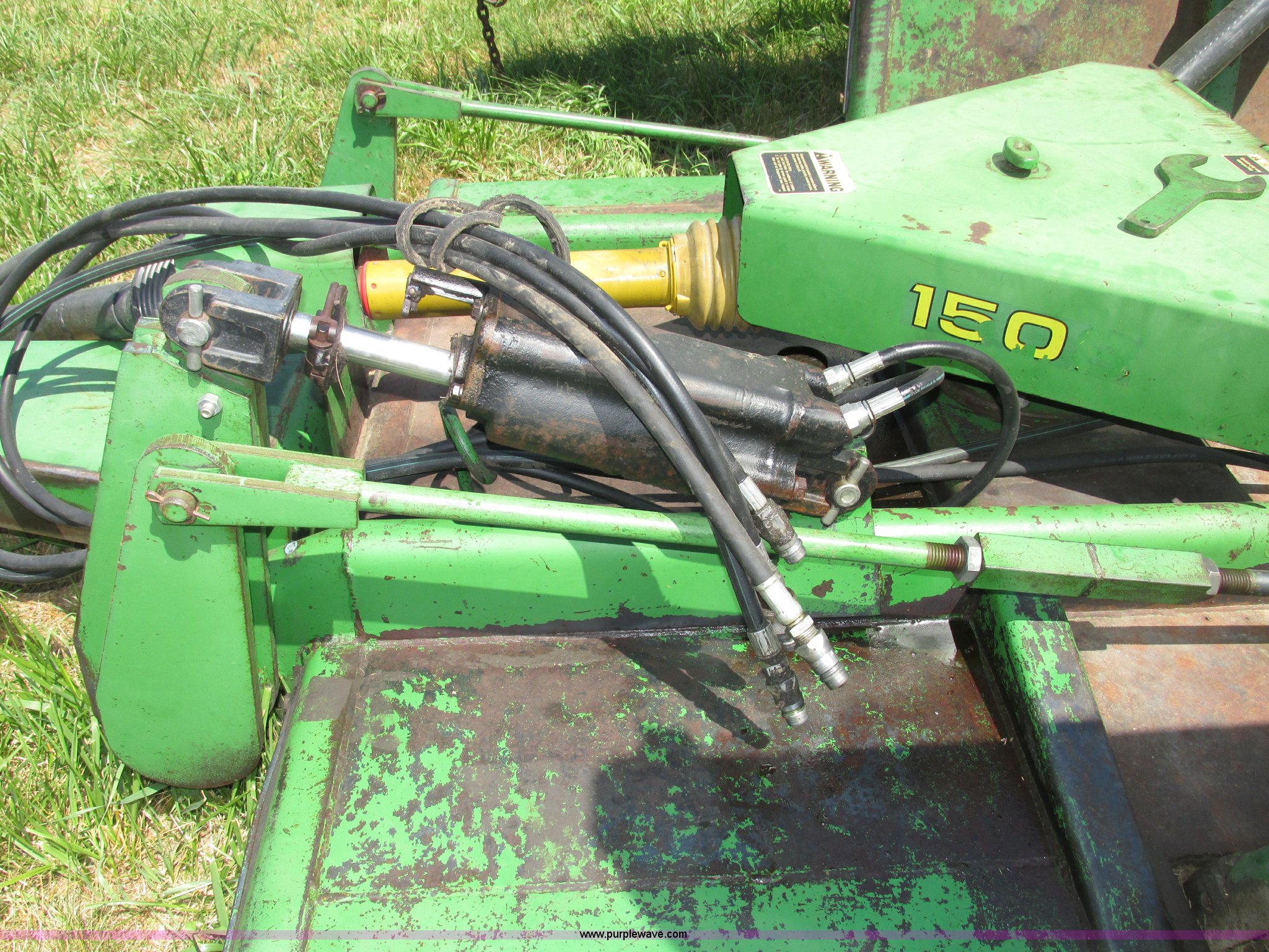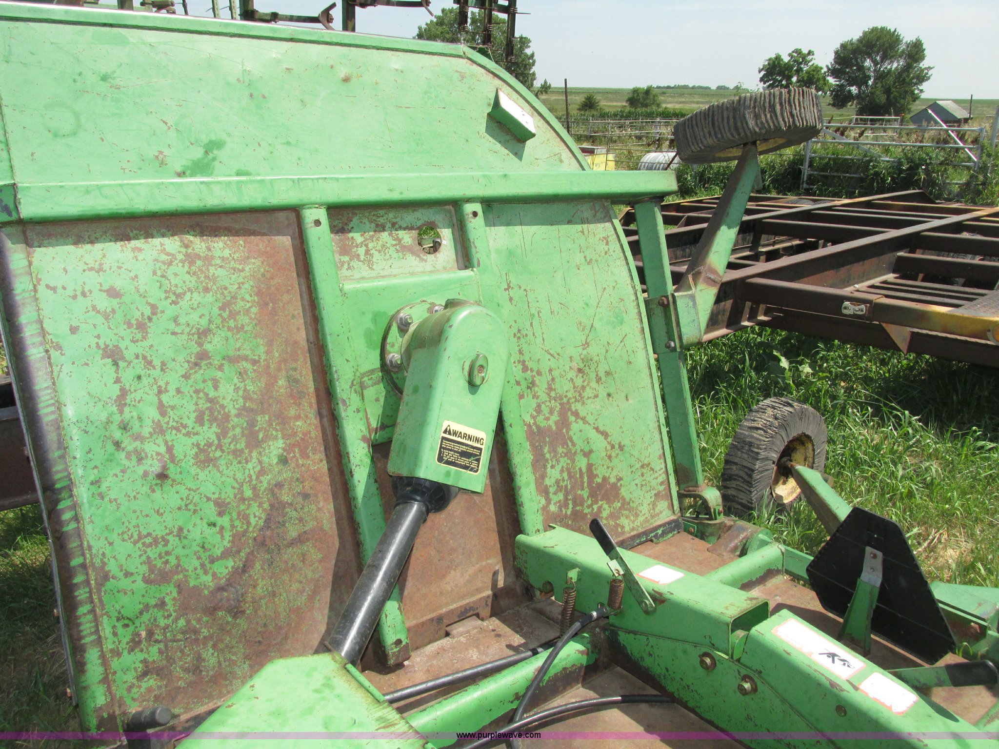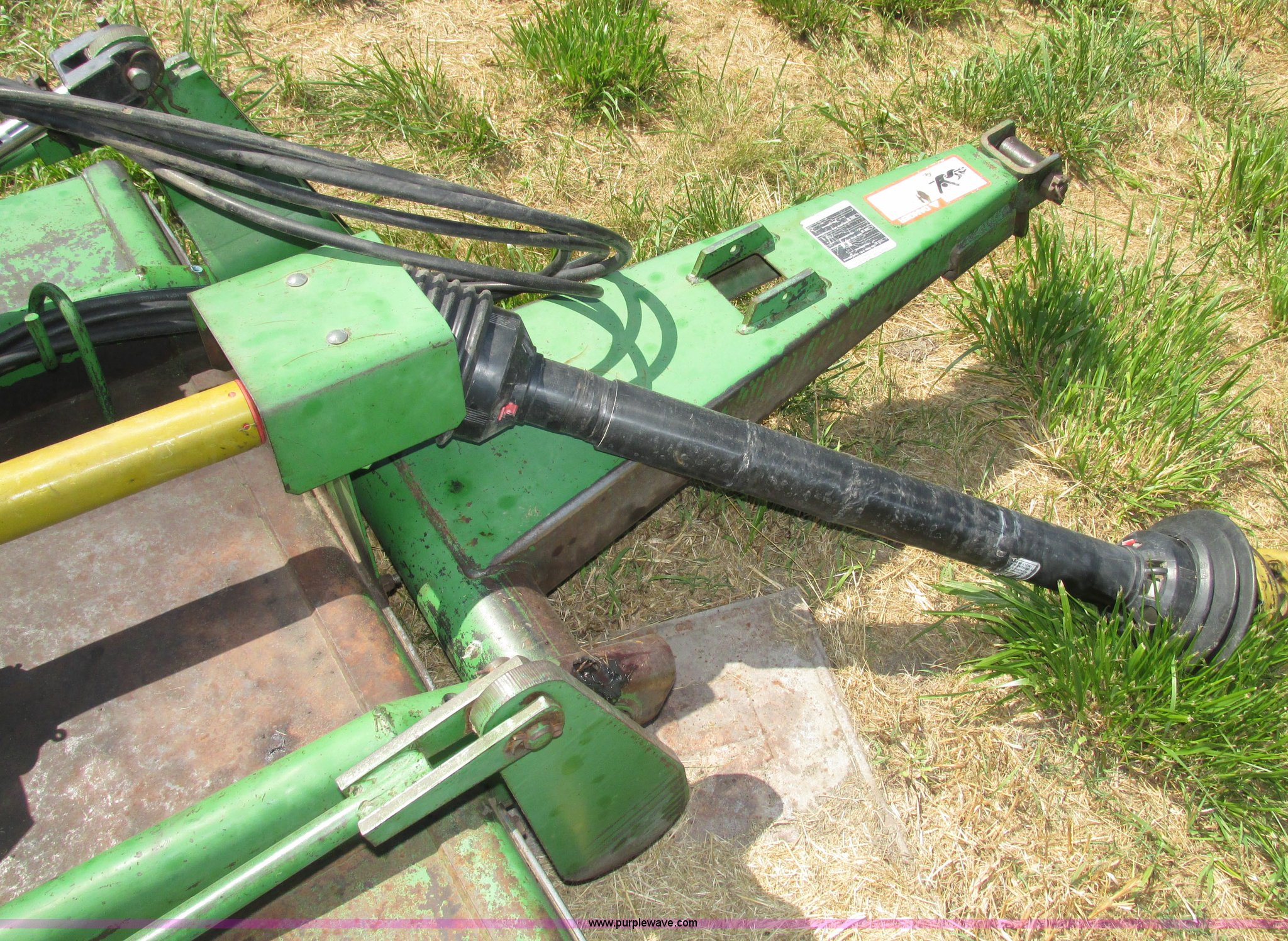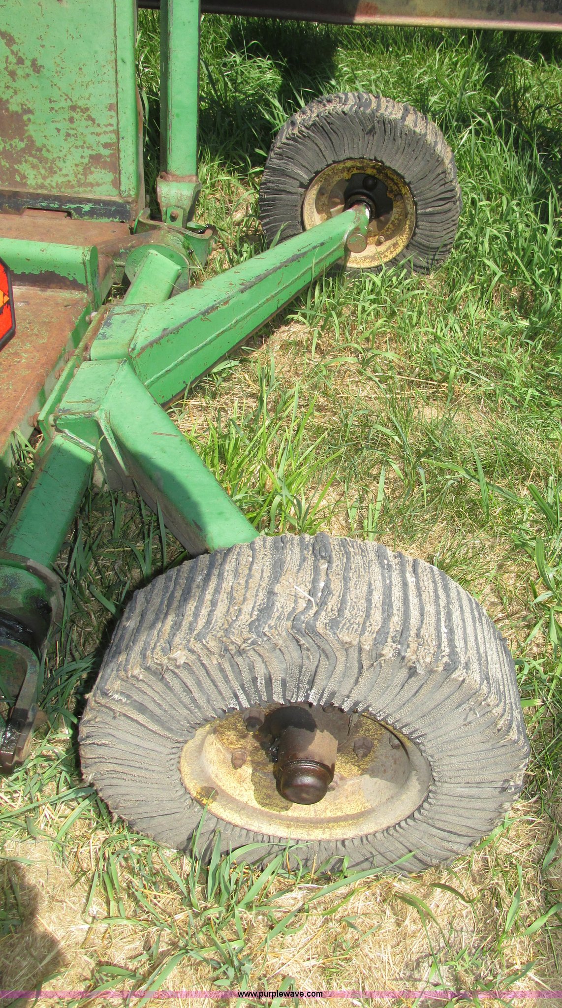 Purple Wave is selling a used Mower, Cutter, Shredder in Nebraska. This item is a John Deere 1508 batwing rotary mower with the following: 15'W, Three 5'W sections, 1000 PTO, Pioneer fittings on four hydraluic hoses, Hydraulic fold, Laminated solid rubber tires, Pin hitch, Blades replaced one year ago, Single owner, Serial W10508F0253