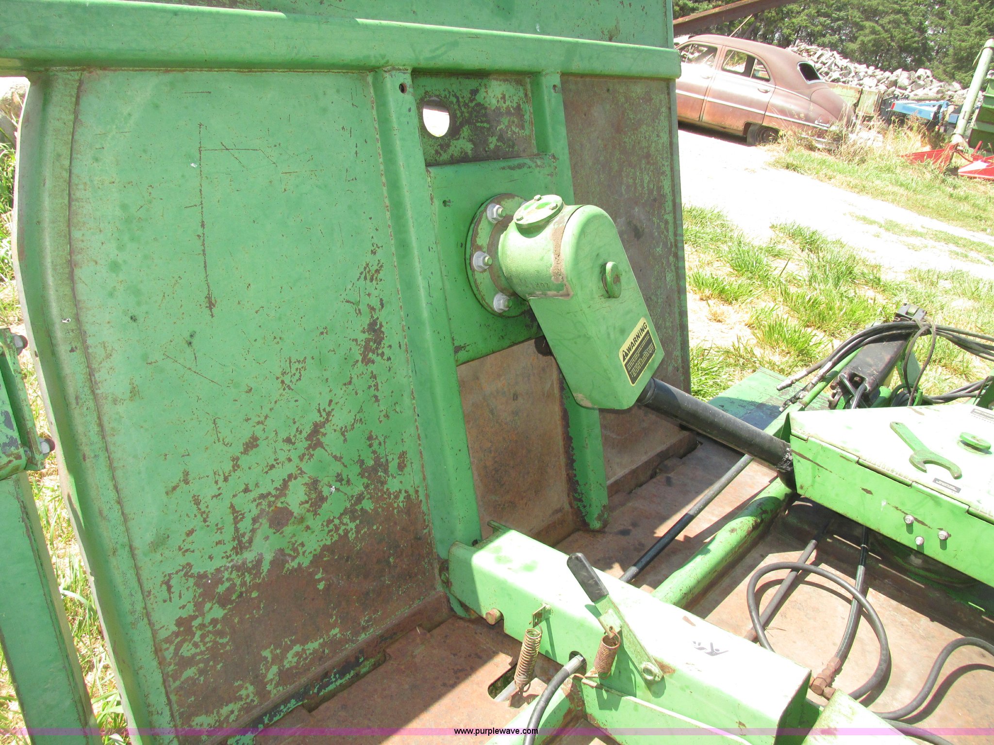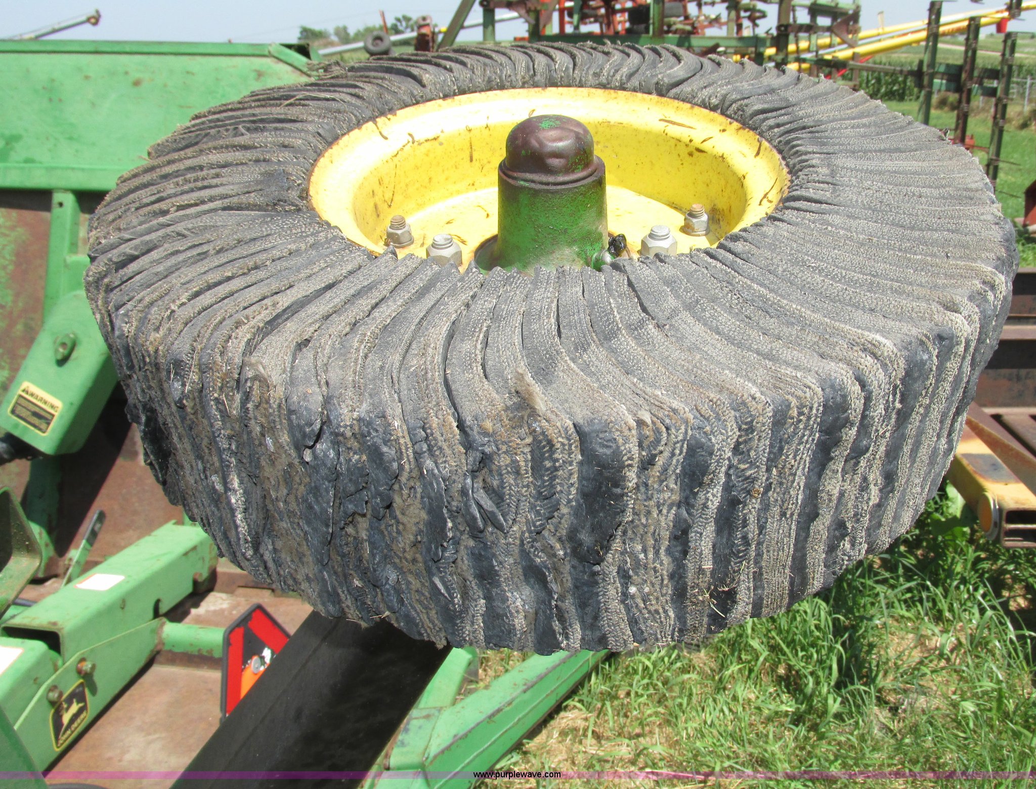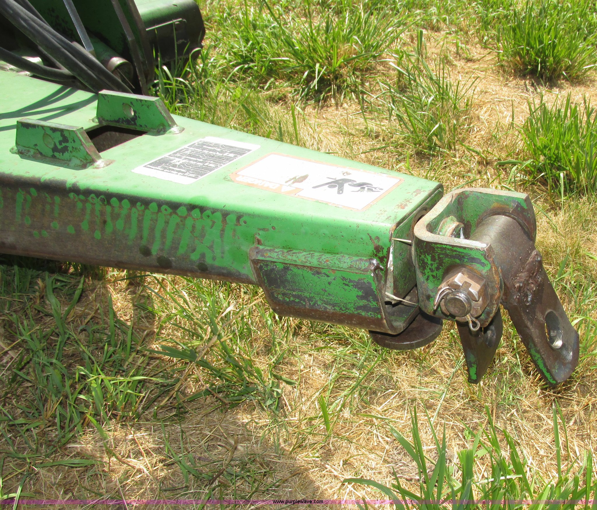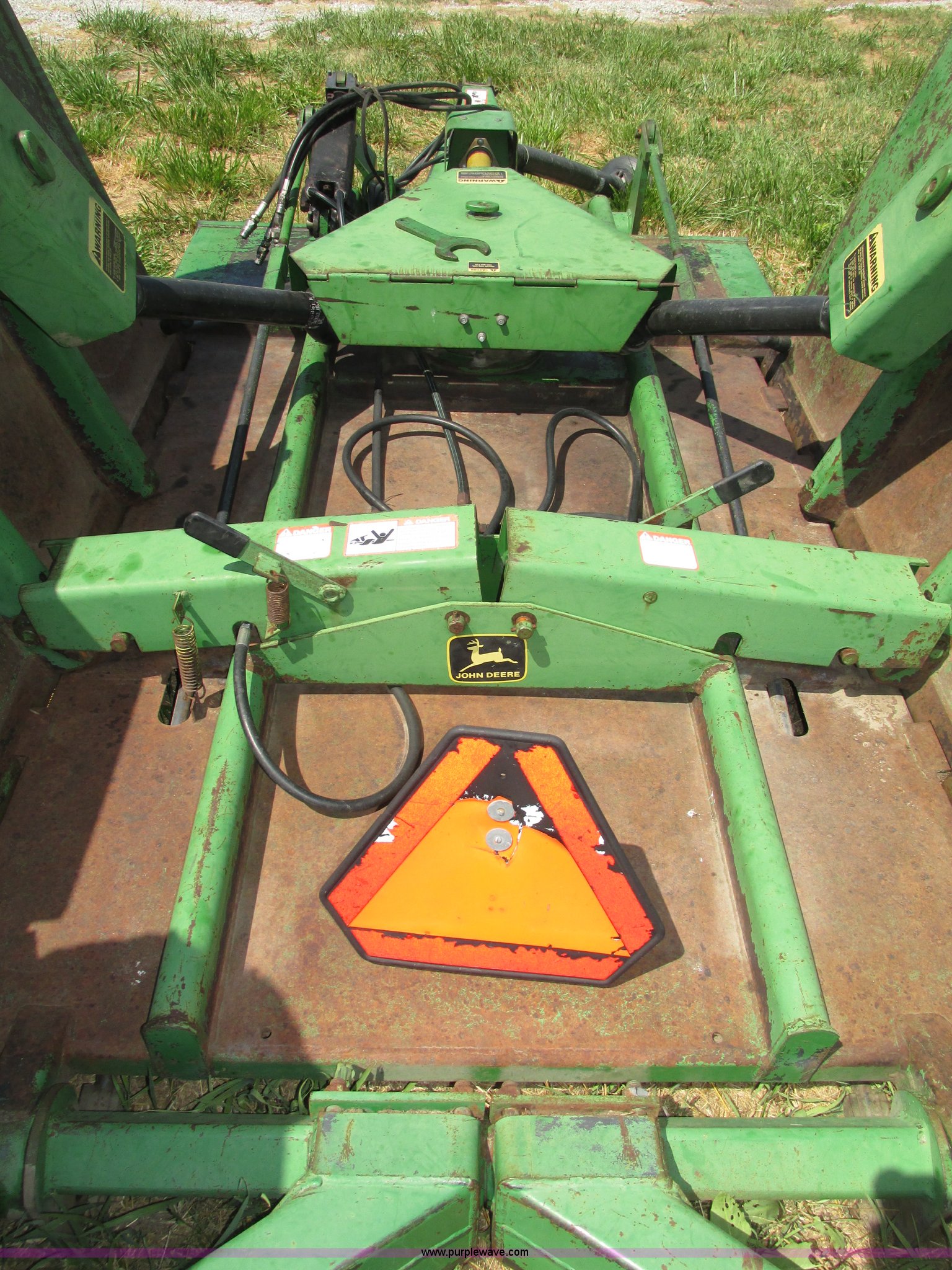 Purple Wave is selling a used Mower, Cutter, Shredder in Nebraska. This item is a John Deere 1508 batwing rotary mower with the following: 15'W, Three 5'W sections, 1000 PTO, Pioneer fittings on four hydraluic hoses, Hydraulic fold, Laminated solid rubber tires, Pin hitch, Blades replaced one year ago, Single owner, Serial W10508F0253