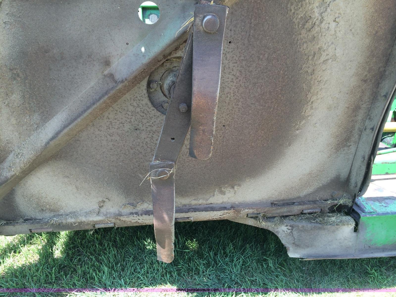 John Deere 1508 batwing rotary mower. 15'W Three 5'W sections, 1000 PTO, Pioneer fittings on four hydraluic hoses, Hydraulic fold , Laminated solid rubber tires, Pin hitch, Blades replaced one year ago, Single owner, Serial W10508F0253. 4050 W Maple. Beatrice, NE 68310