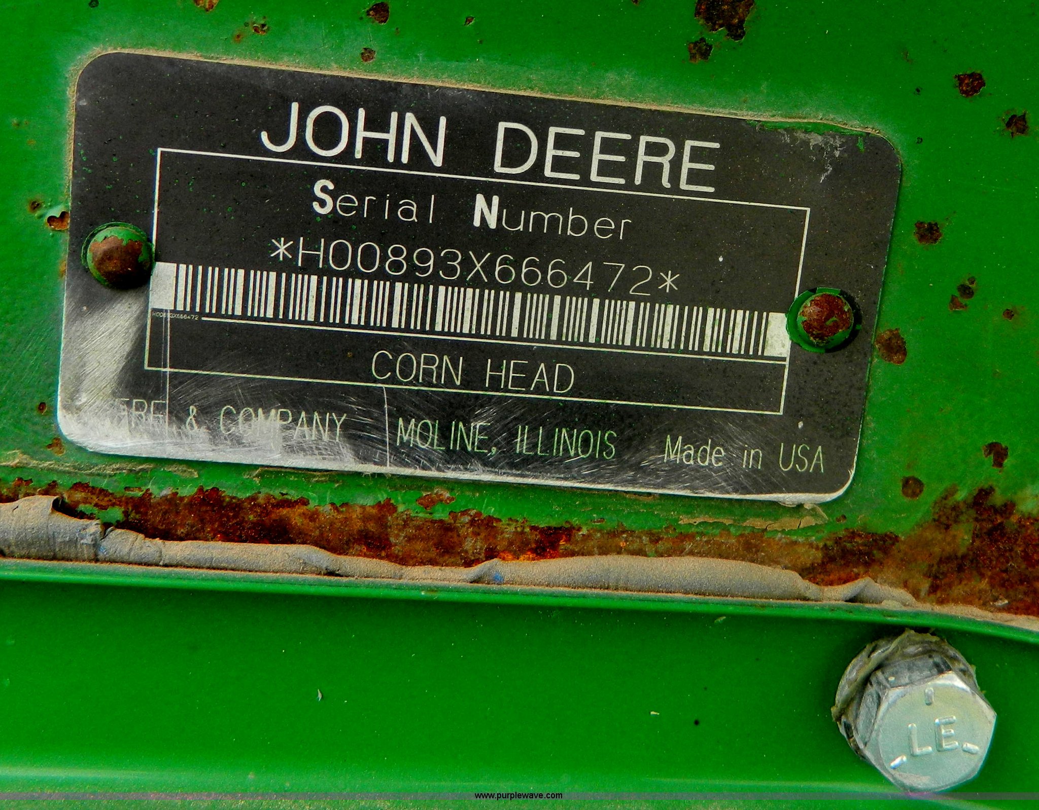 This 1996 John Deere 893 corn head will sell to the highest bidder regardless of price.