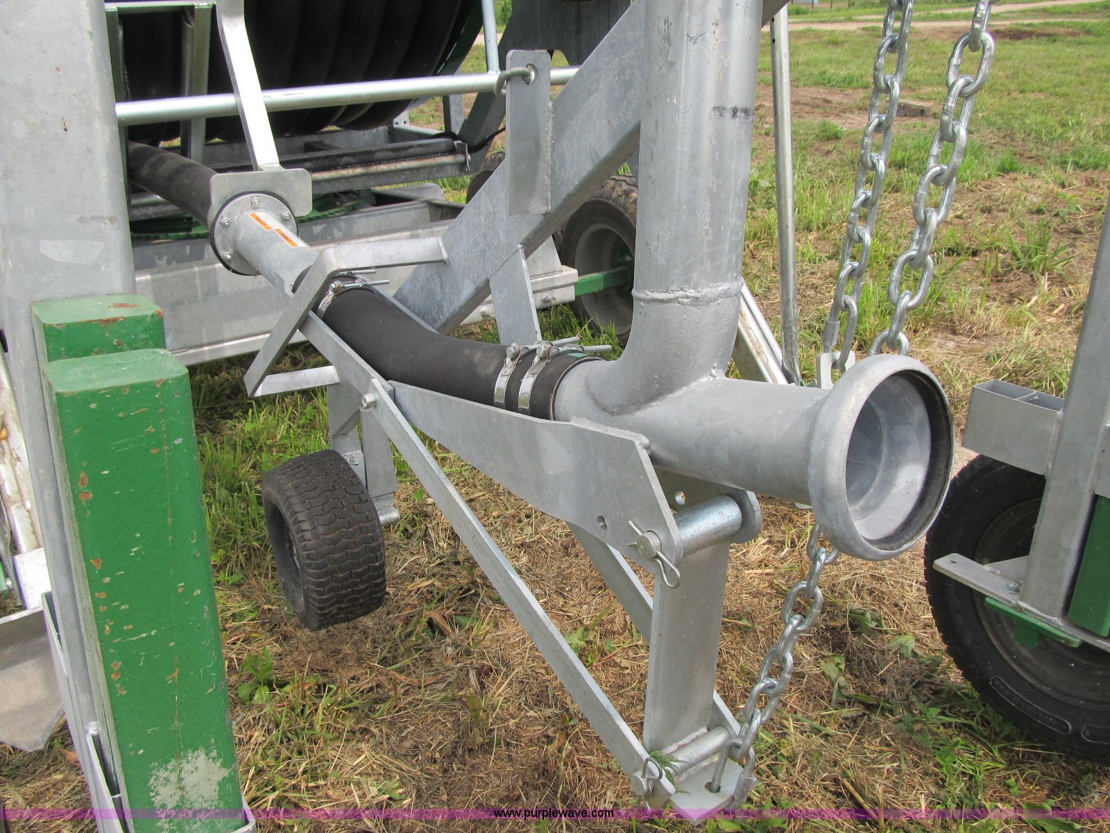 Purple Wave is selling a used Hose Reel in Missouri. This item is a 2012 Kifco Ag Rain water reel with the following: Model ST7B T40X1320, 1,320' of hose, 4" tube diameter, Irrigation with 228' to 298', 5 to 10 acres irrigation area per run, Turbine drive water pressure operated, 205 to 415 gpm range, 78 to 150 inlet psi range, 4.4 to 44 hours per full run, Pin hitch, Tongue jack, Nelson Big Gen SR200 sprinkler, Assorted nozzle sizes, Three wheel gun cart, 166-80R13 tires, 20' x 4" inlet hose, 10.0-75-15 tires, Serial 850