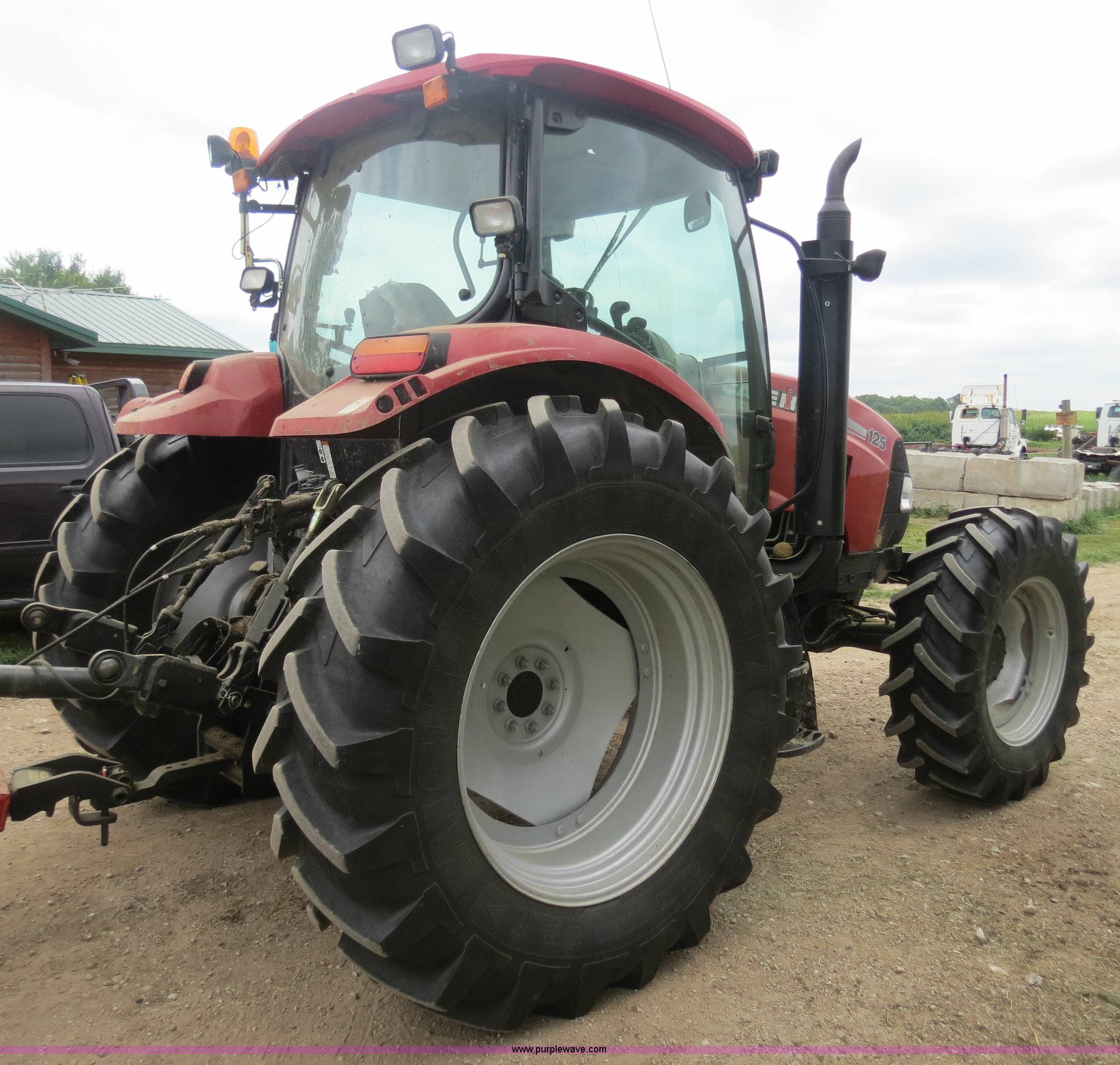 Purple Wave is selling a used Tractor in Missouri. This item is a 2011 Case IH Maxxum 125 MFWD tractor with the following: 849 hours on meter, Hours may vary, still in use, Case IH 6.7L six cylinder turbo diesel engine, 125 HP, Serial 885962, Synchro Shift transmission, 12F-12R gears, Differential lock, AC and heat, AM/FM, Spring suspension seat, Instructor's seat, Tilt steering wheel, Shades and visors, Front windshield wiper, Flashing yellow beacon, Three point, Draw bar, Auxiliary outlet, 540/1000 PTO, (2) rear hydraulic remotes, Suitcase weight bracket, 14.9R28 front tires, 18.4R38 rear tires, Serial ZBBE12817