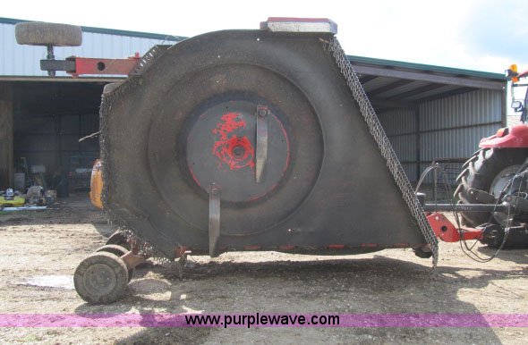Purple Wave is selling a used Mower, Cutter, Shredder in Missouri. This item is a Bush Hog 2720 rotary mower with the following: 20'W, Hydraulic lift and fold, 540 PTO, Stump jumper cutters, Rear discharge, Front and rear safety chains, Pivoting pin hitch, Solid tires, Serial 12-01885