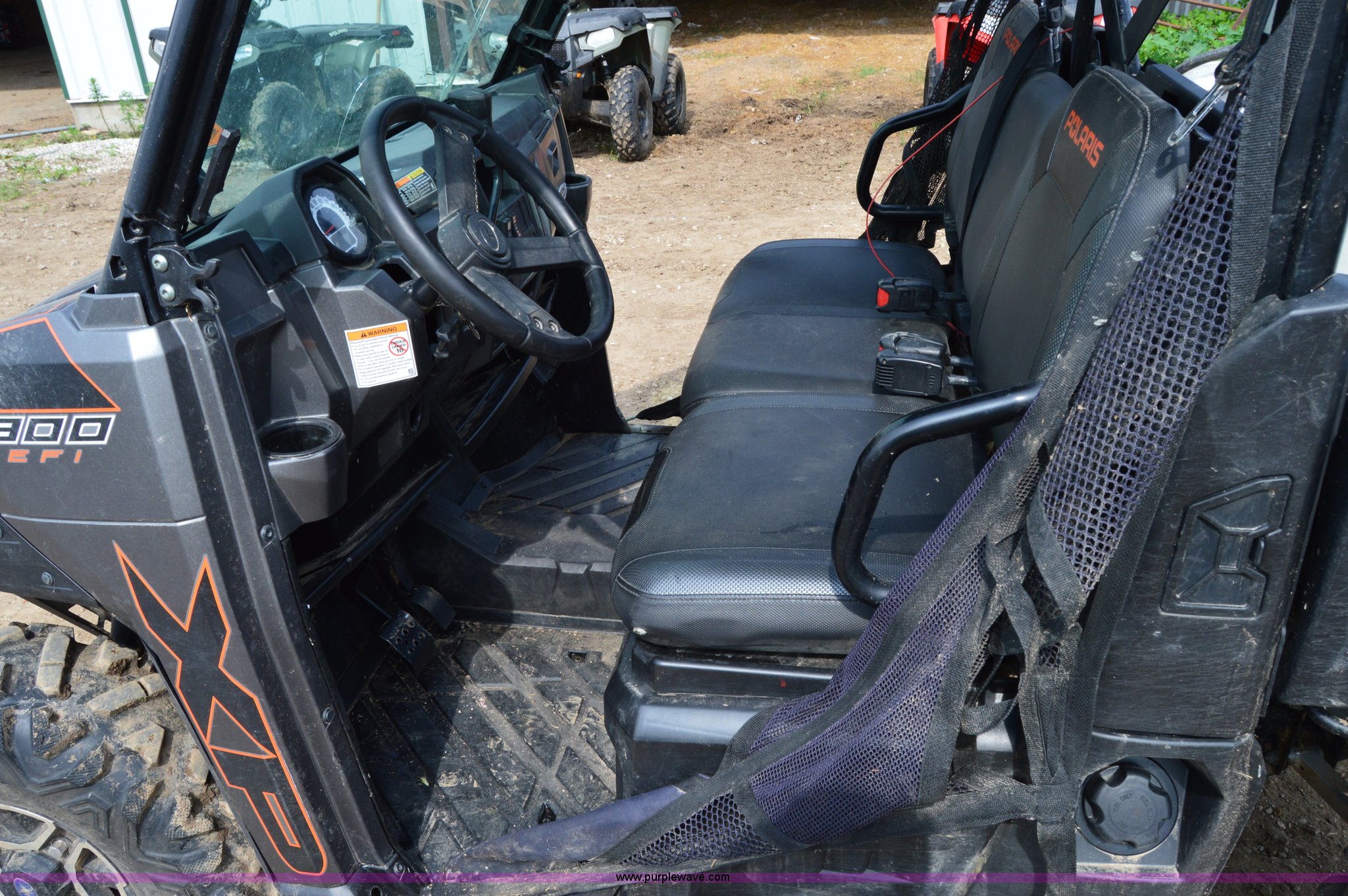Purple Wave is selling a used Utility Vehicle in Missouri. This item is a 2014 Polaris Ranger XP Side by Side Limited Edition ATV with the following: 1,973 miles on odometer, 900 EFI gas engine, Automatic transmission, Four wheel drive, Front windshield, EPS power steering, Net doors, Receiver hitch, Independent suspension, 27x9-12 front tires, 27x12-12 rear tires, Cosmetic damage, Cracked windshield, Sprayer not included