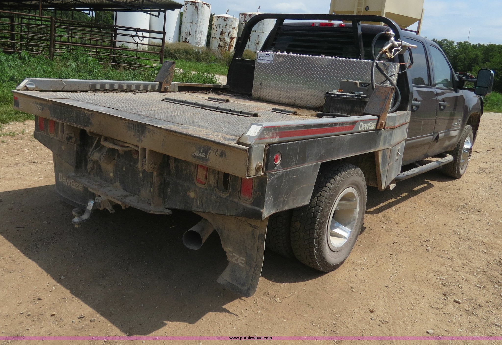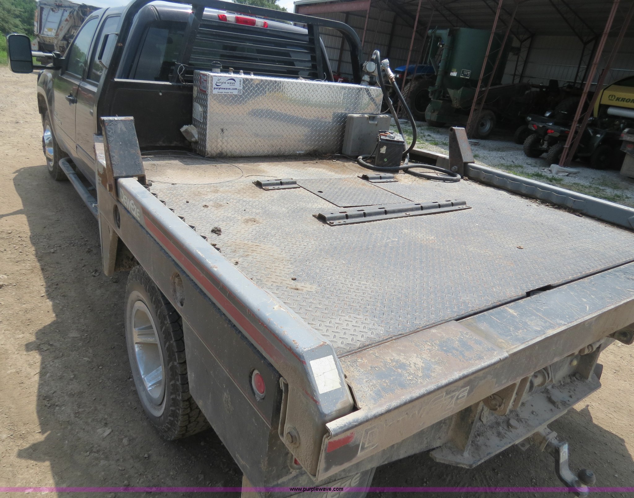 Purple Wave is selling a used Flat Bed Truck in Missouri. This item is a 2008 GMC Sierra 3500HD Crew Cab flatbed truck with the following: 76,248 miles on odometer, 6.6L V8 32V OHV diesel engine, Automatic transmission, Four wheel drive, AC and heat, Tilt, Cruise, AM/FM/CD, Power windows, locks, mirrors, and seat, Cloth interior, Fog lights, On Star compatible, Front cattle guard, Running boards, Chrome front bumper, Compass display in rear view mirror, Tekonsha brake controller, DewEze 578 hay bed, In-cab electric controller, (2) storage boxes, 2 5/16" gooseneck ball, Serial FB578V209A03, Receiver hitch, Trailer wiring, Interior/exterior cosmetic damage, Check engine light on, Driver side door molding missing, Front passenger door molding loose, Scratches, One fog light missing, Diesel fuel transfer tank not included, Battery on bed not included, Trailer not included