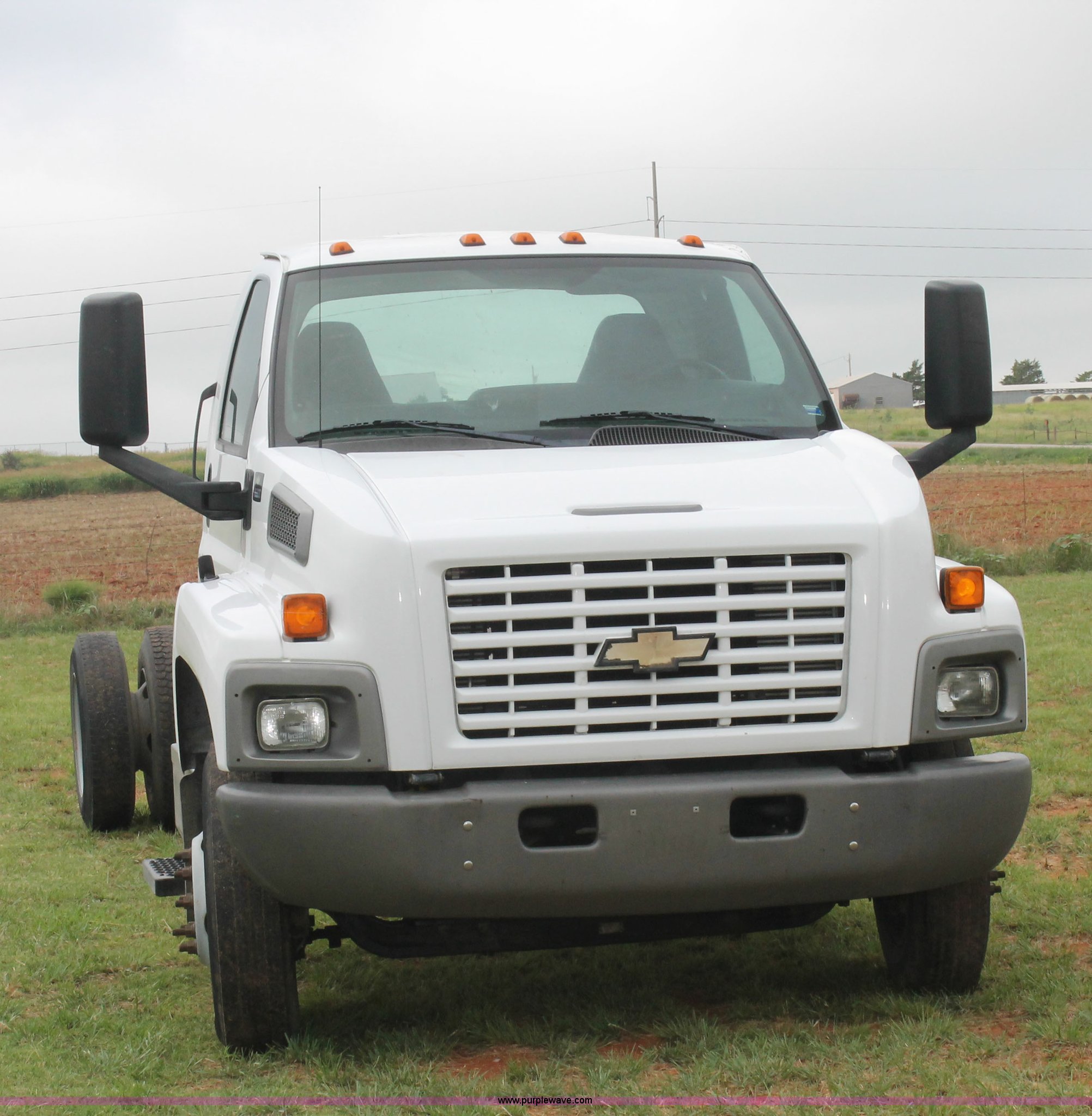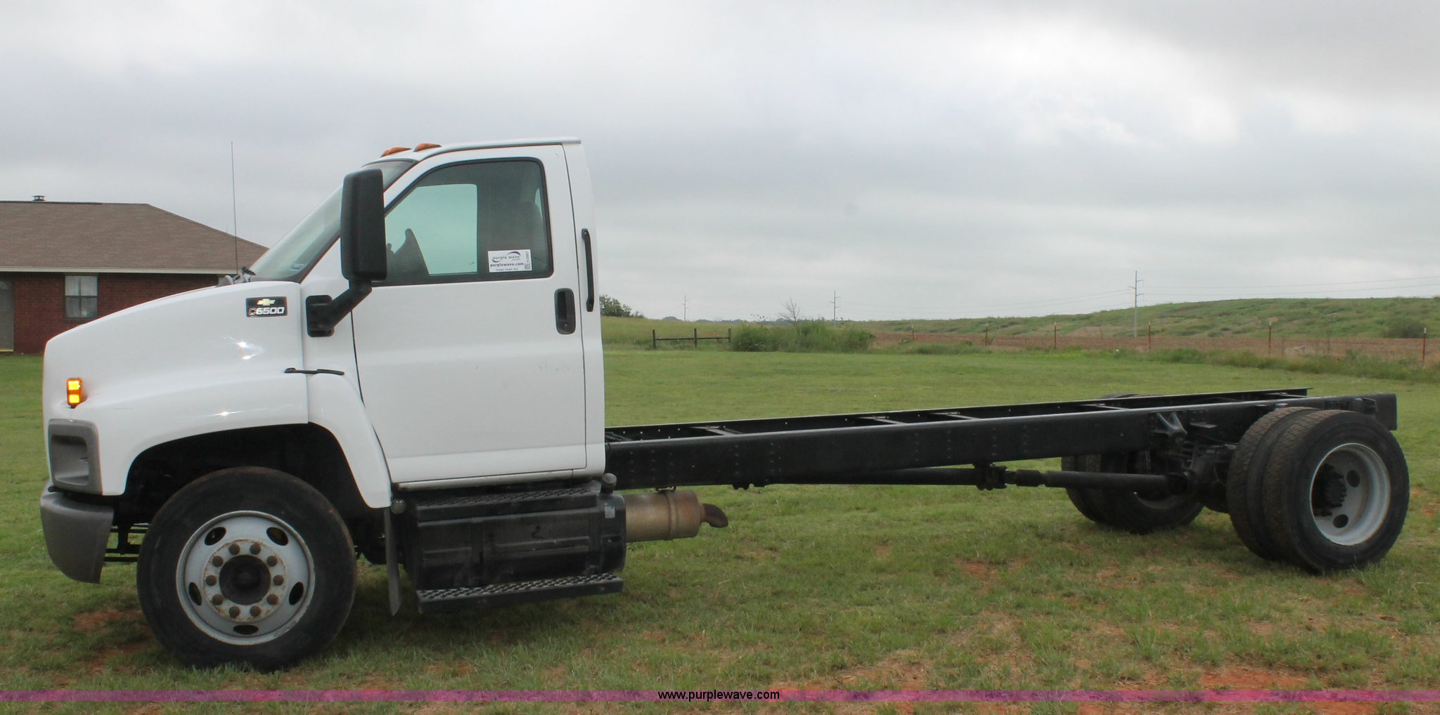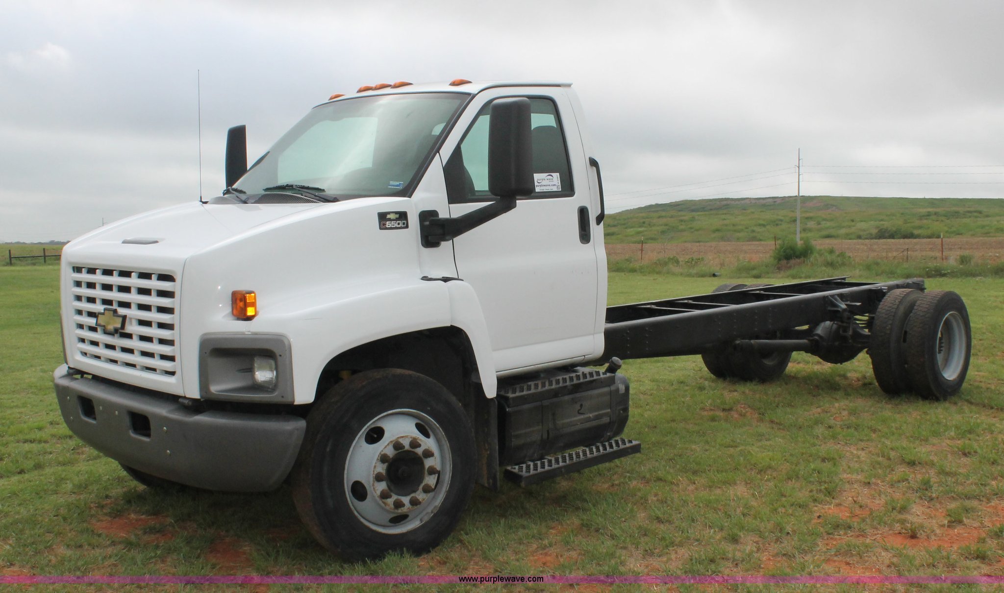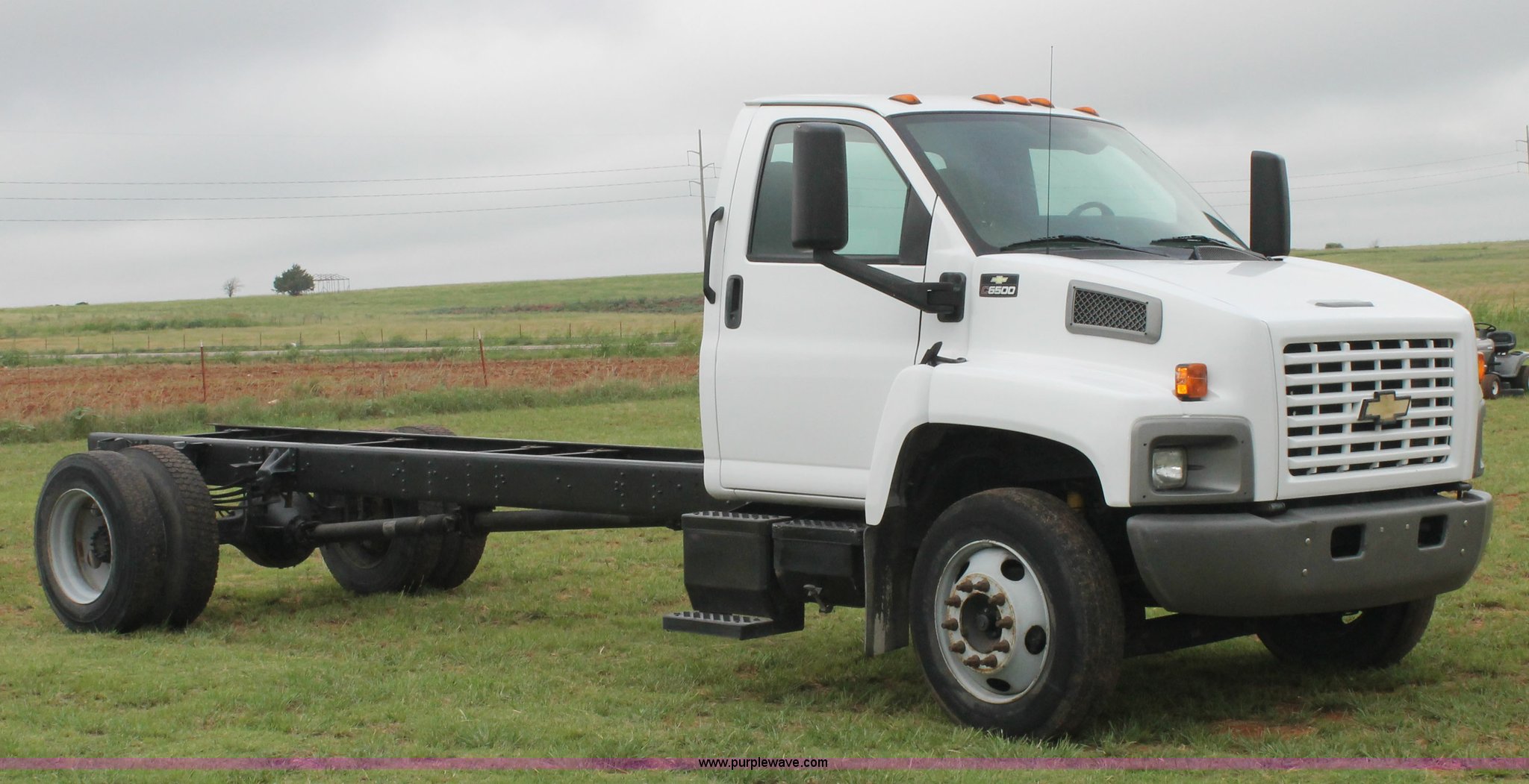 Purple Wave is selling a used Truck Chassis in Oklahoma. This item is a 2006 Chevrolet C6500 cab and chassis with the following: 223,861 actual miles, Caterpillar C7 7.2L six cylinder turbo diesel engine, 190 HP, Serial WAX33763, Automatic transmission, AC and heat, Tilt, AM/FM, Single fuel tank, Spring suspension, Hydraulic brakes, Wheel nut covers, 9R22.5 tires, GVWR 25,200 lbs, FAWR 8,000 lbs, RAWR 17,200 lbs