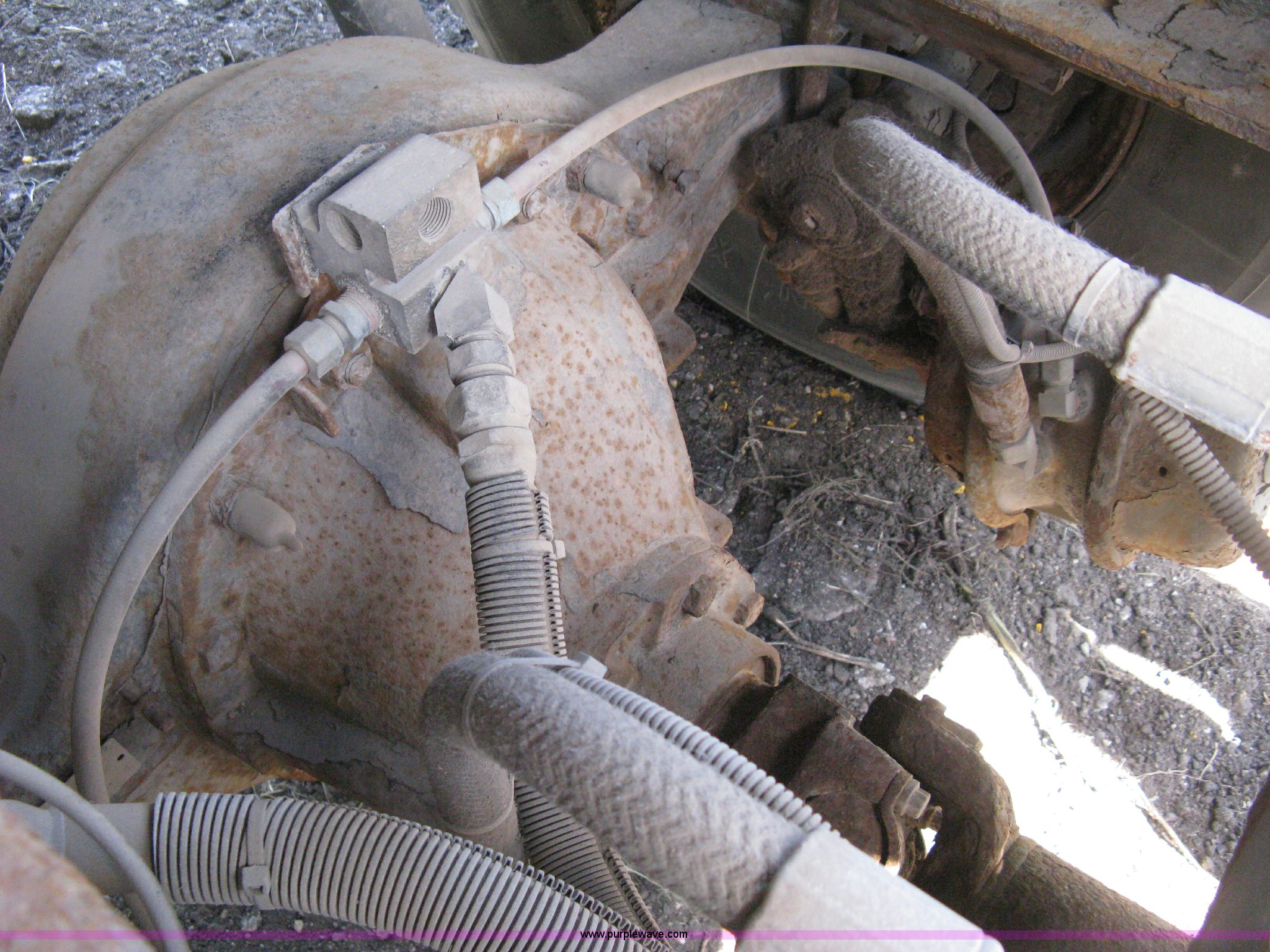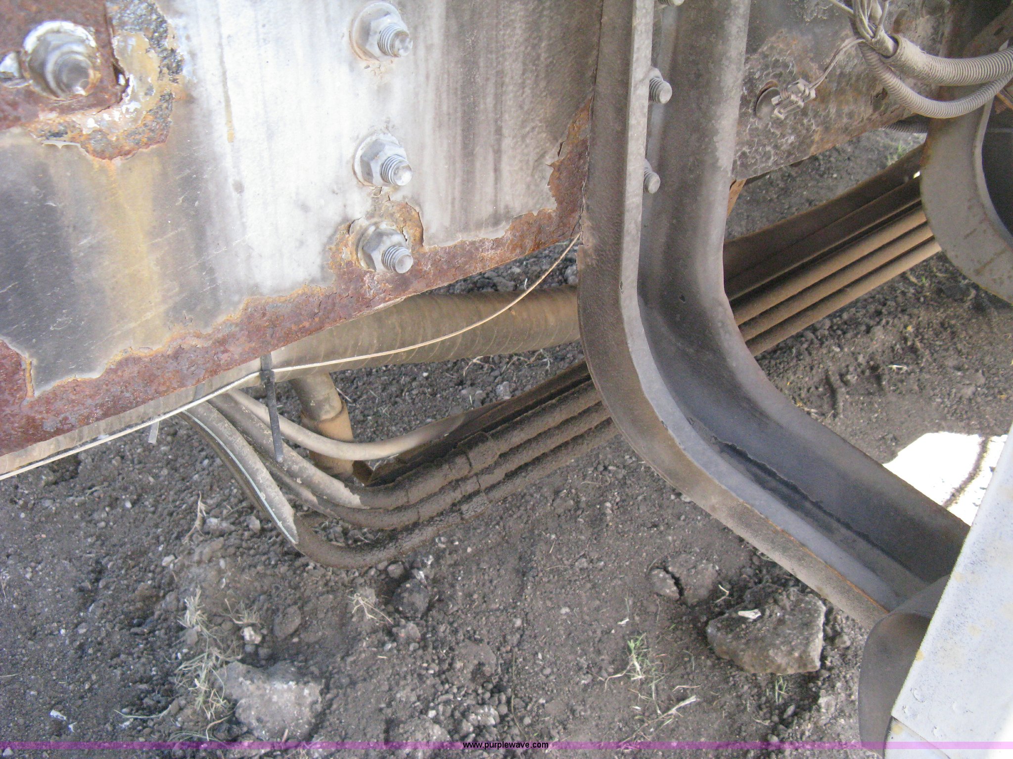 Purple Wave is selling a used Construction Dump Truck in Kansas. This item is a 1999 GMC C8500 dump truck with the following: 28,622 actual miles, Caterpillar 3126 7.2L six cylinder diesel engine, Allison automatic transmission, Heat, Tilt, AM/FM, Air suspension seat, Swenson APB dump bed, 10'L x 8'W, Air operated end gate, Single ram hoist, Roll over tarp, Spreader, Hydraulic drive spinner, 28" conveyor, Plate over conveyor, 70 gallon pre-wet system, (6) steel grates, Front mounted PTO, Western 10' snow plow, 50 gallon fuel tank, Pintle hitch, Spring suspension, Air brakes, 12R22.5 tires, Battery weak, Windshield cracked, Interior/exterior cosmetic damage, Rust, Radiator leak, Water hose leak