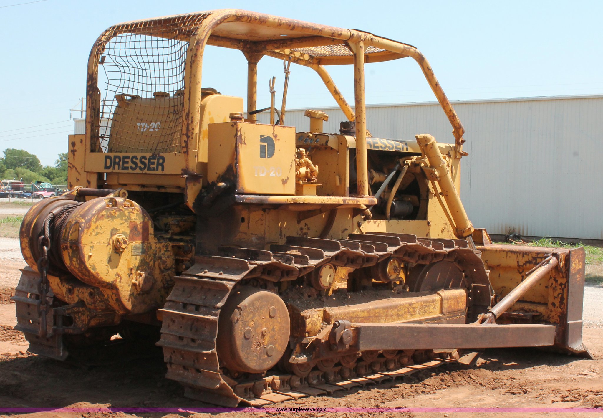Purple Wave is selling a used Crawler Dozer in Oklahoma. This item is a Dresser TD-20 dozer with the following: 4,009 hours on meter, International six cylinder gas engine, Power shift transmission, 2F-2R gears, Reverse linkage disconnected, unit will not shift into reverse gear until repaired, Canopy, Clutch brake steering, Sweeps, Rear screen guard, S-Dozer, Angle, Tilt, 120"W dozer face, 46"H, Bolt-on cutting edge, Carco G-4 winch, Serial 4651, Six bottom rollers, 22"W single grouser track pads, Torque converter weak