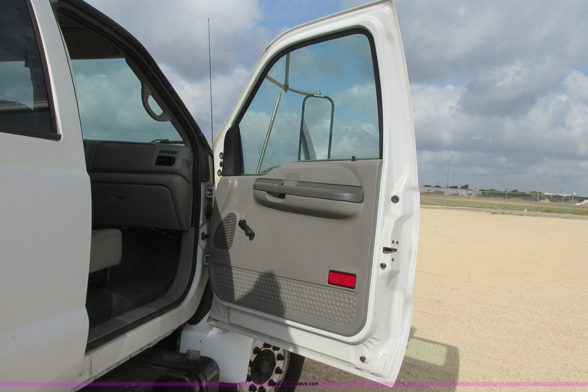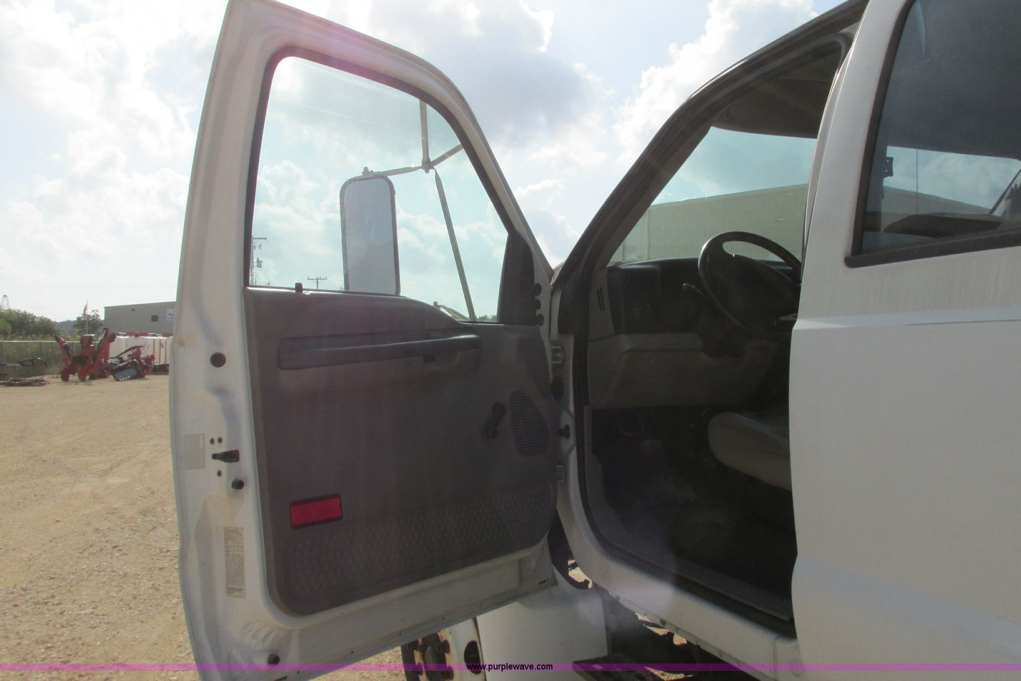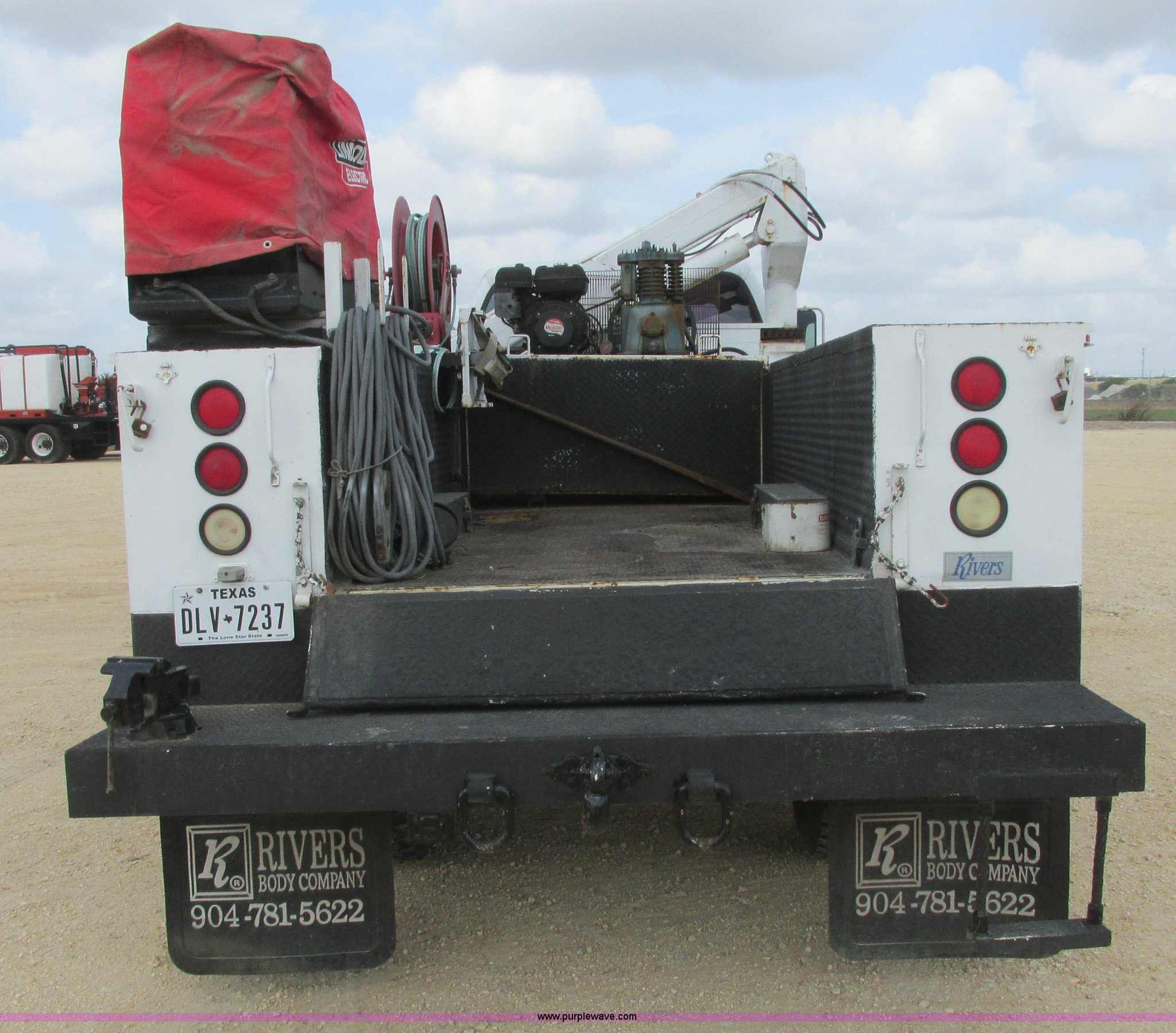 Purple Wave is selling a used Service Truck in Texas. This item is a 2000 Ford F650 Super Duty XL Crew Cab service truck with crane with the following: 65,191 miles on odometer, 7.3L V8 diesel engine, Six speed manual transmission, AC and heat, AM/FM, Manual windows, Vinyl interior, PTO, Pilot trailer brake controller, Knapheide service bed, 11'L x 94"W, (8) storage compartments, Rear bumper mounted vise, Lincoln Ranger 8 welder/generator, 45 hours on meter, Onan performer gas engine, 16 HP, AC/DC, (4) 115V outlets, 115/230V outlet, Compress Products air compressor, Robin Subaru gas engine, 13.5 HP, 200 psi, Reel and hose assembly, Cascade 40C compact hydraulic knuckle boom crane, Dual controls, 6,430 lbs maximum lift capacity, Telescoping, Oscillating, Two post outriggers, 53 gallon fuel tank, Pintle hitch, Trailer wiring, Spring suspension, Hydraulic brakes, 10R22.5 tires, GVWR 26,000 lbs, FAWR 8,500 lbs, RAWR 17,500 lbs, Driver's seat torn, Small hydraulic leak in crane controls