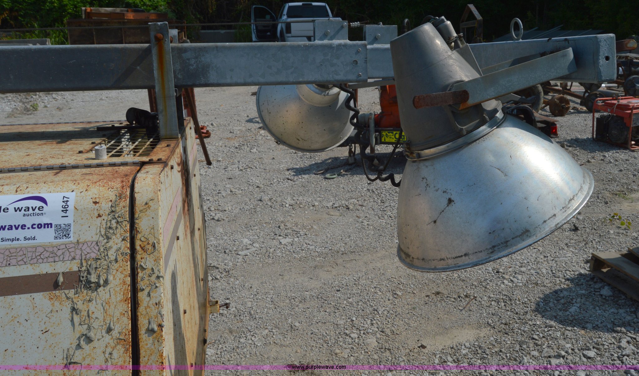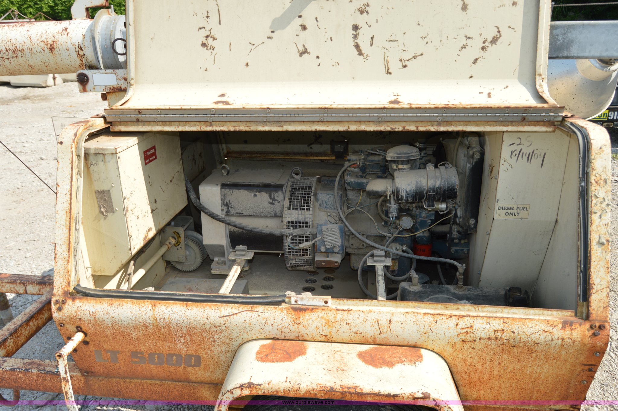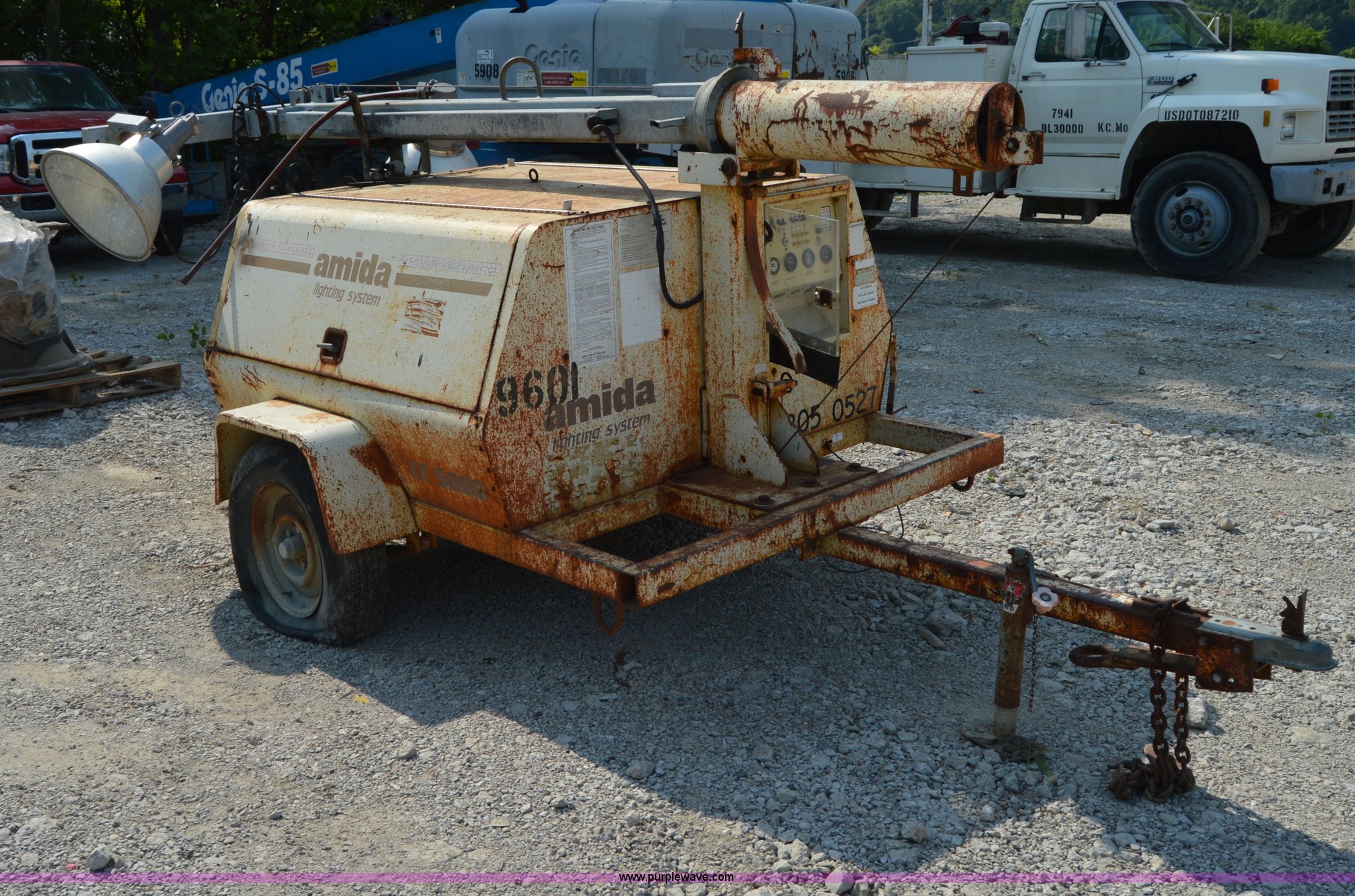 Amida LT500 air compressor. 9,101 hours on meter, Manual jack, 2" ball hitch, (2) lights missing, Connections on mast need repair, Serial 8805B0527, Unit# 9601. Clarkson Construction Company. 4133 Gardner. Kansas City, MO 64120
