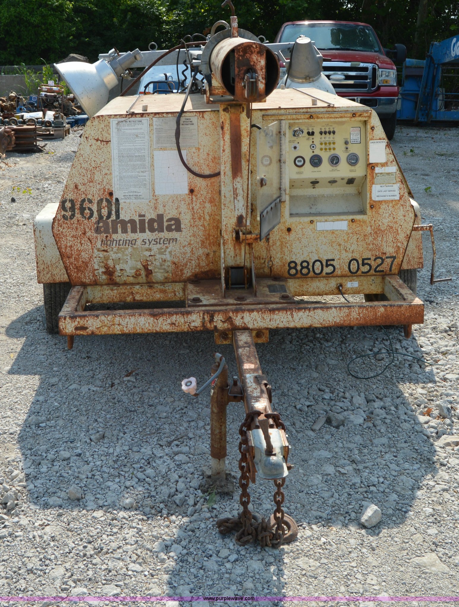 Purple Wave is selling a used Air Compressor in Missouri. This item is a Amida LT500 air compressor with the following: 9,101 hours on meter, Manual jack, 2" ball hitch, (2) lights missing, Connections on mast need repair, Serial 8805B0527, Unit# 9601