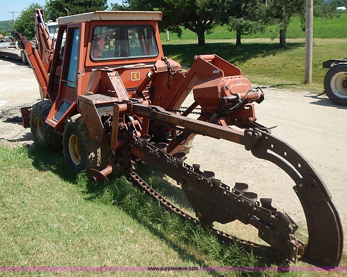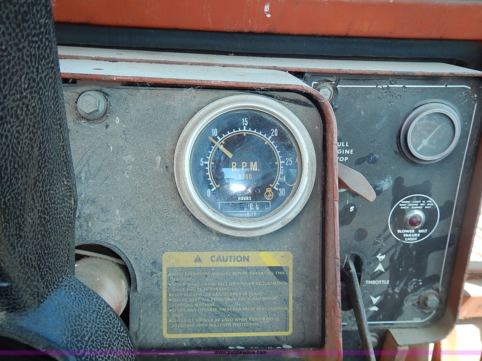 Purple Wave is selling a used Trencher or Rock Saw in Kansas. This item is a Ditch Witch 6510 trencher with the following: Deutz Four cylinder diesel engine, 64 HP, Type F4L912, Serial 7144727, Manual transmission, 4F-1R gears, Four wheel drive, Enclosed cab, Heat, Vinyl seat, 6'W back fill blade, 6' trencher, 6" trenching width, Outriggers, Cable plow, Model A651, PTO driven, No blade, Serial 2B1091, 16.5L-16.1SL tires, Transmission issues, Serial 5C0030