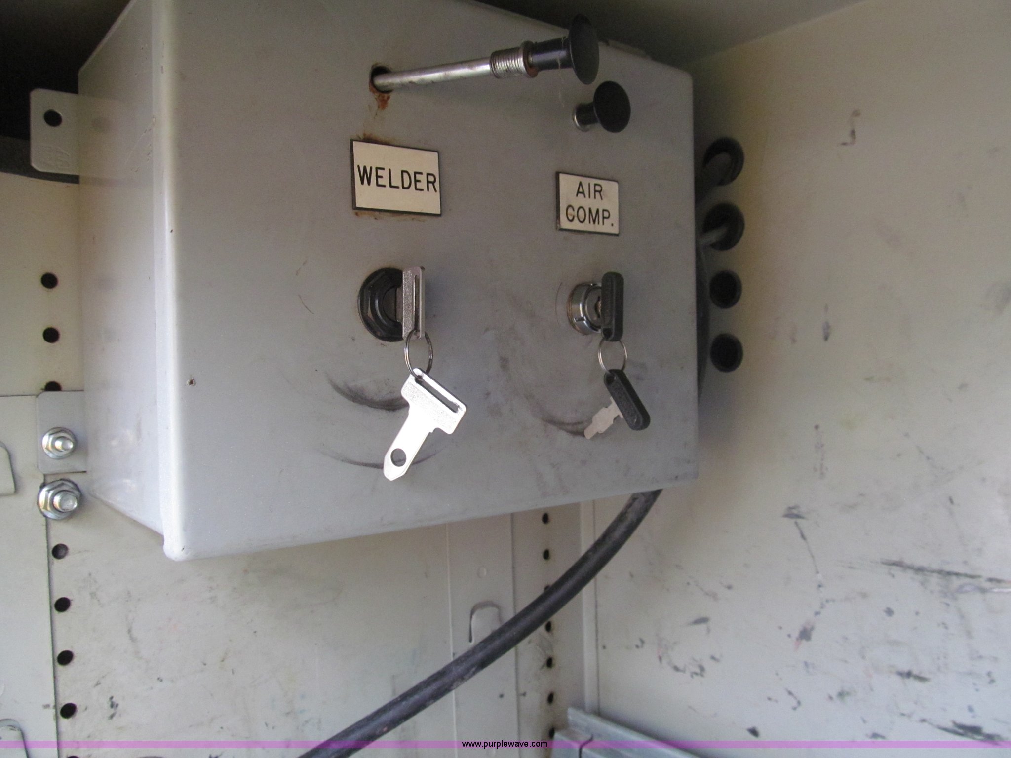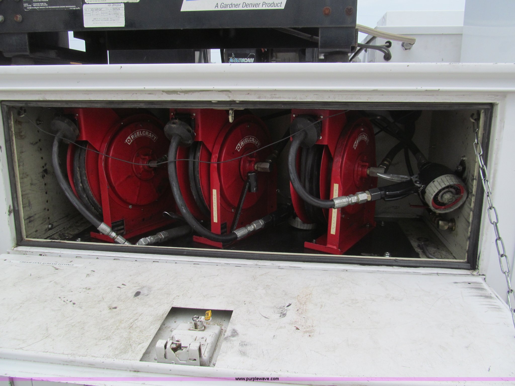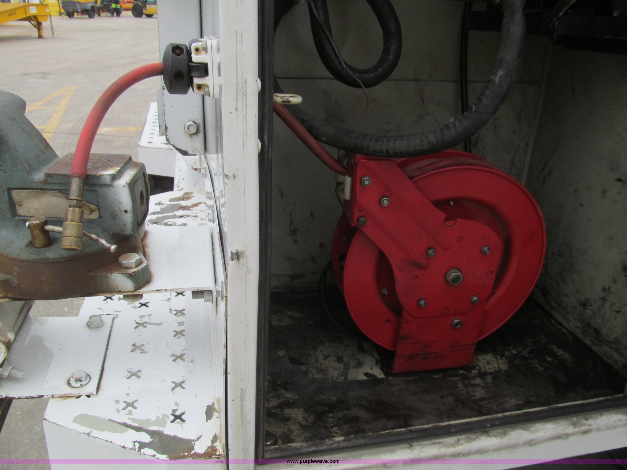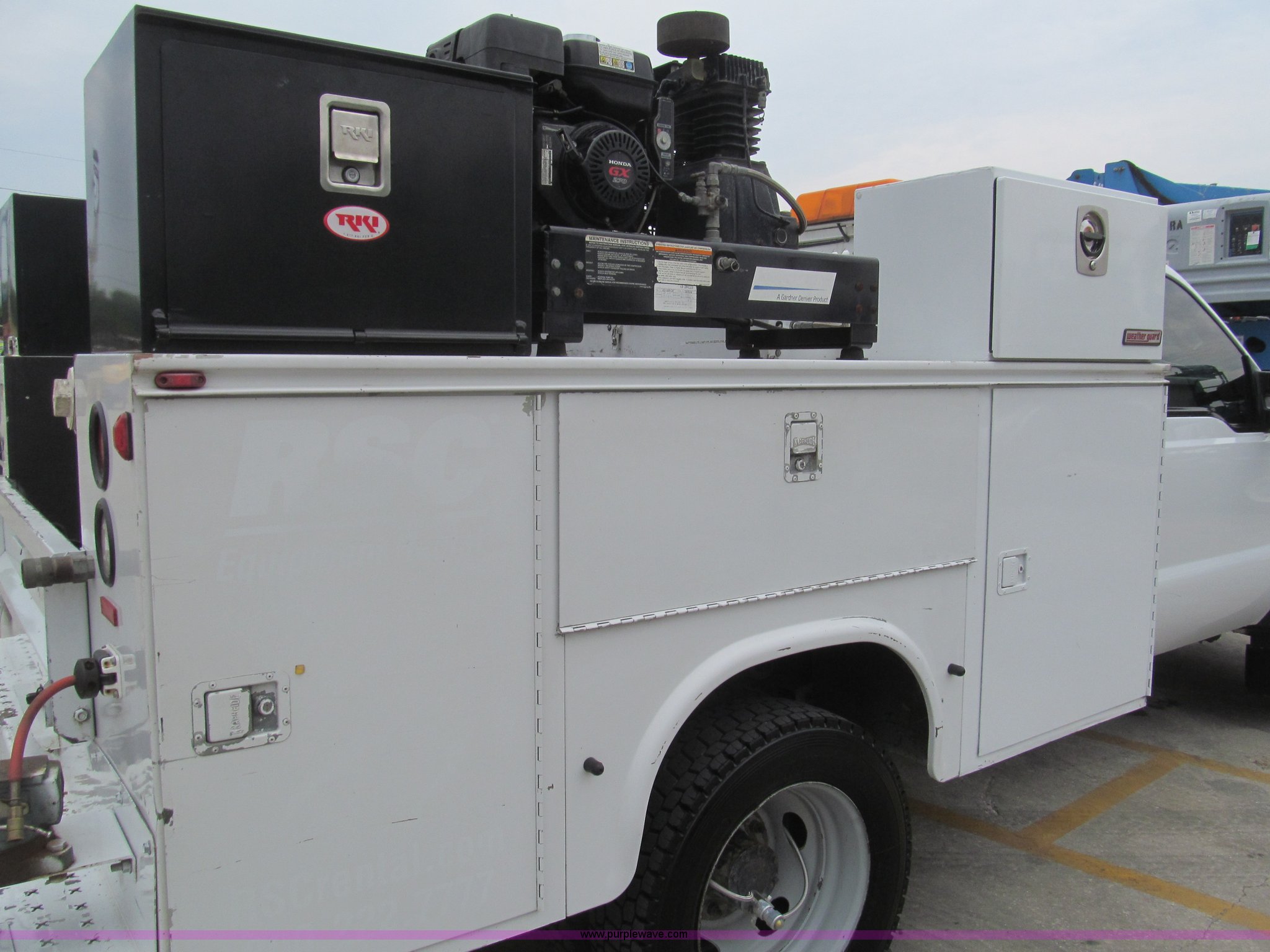 Purple Wave is selling a used Service Truck in Louisiana. This item is a 2008 Ford F450 Super Duty XL service truck with the following: 116,067 actual miles, 6.4L V8 OHV 32V turbo diesel engine, Automatic transmission, AC and heat, Tilt, Cruise, Pioneer AM/FM/CD, Touch screen, Manual windows and locks, Vinyl interior, Auxiliary control switches, Front tow hooks, Front auxiliary power outlet, Knapheide utility bed, (6) storage compartments, Toolboxes, 5" vise, Miller BlueStar 185 welder/generator, 22 hours on meter, Kohler 12.75 HP gas engine, CC/DC, 6,000 watt, Champion air compressor, Honda gas engine, Hose, reel, and nozzle assembly, Graco oil system, Motor oil, hydraulic oil, and grease recovery systems, Mini Fireball pumps, Hose, reel, and nozzle assemblies, Receiver hitch, Trailer wiring, 225/70R19.5 tires, Windshield cracked, EIN 720683RA