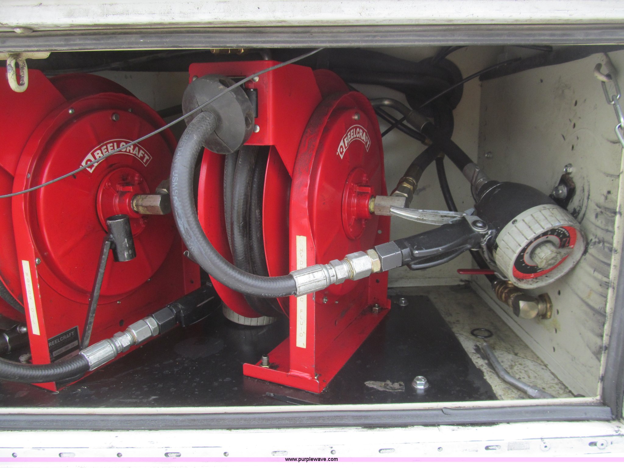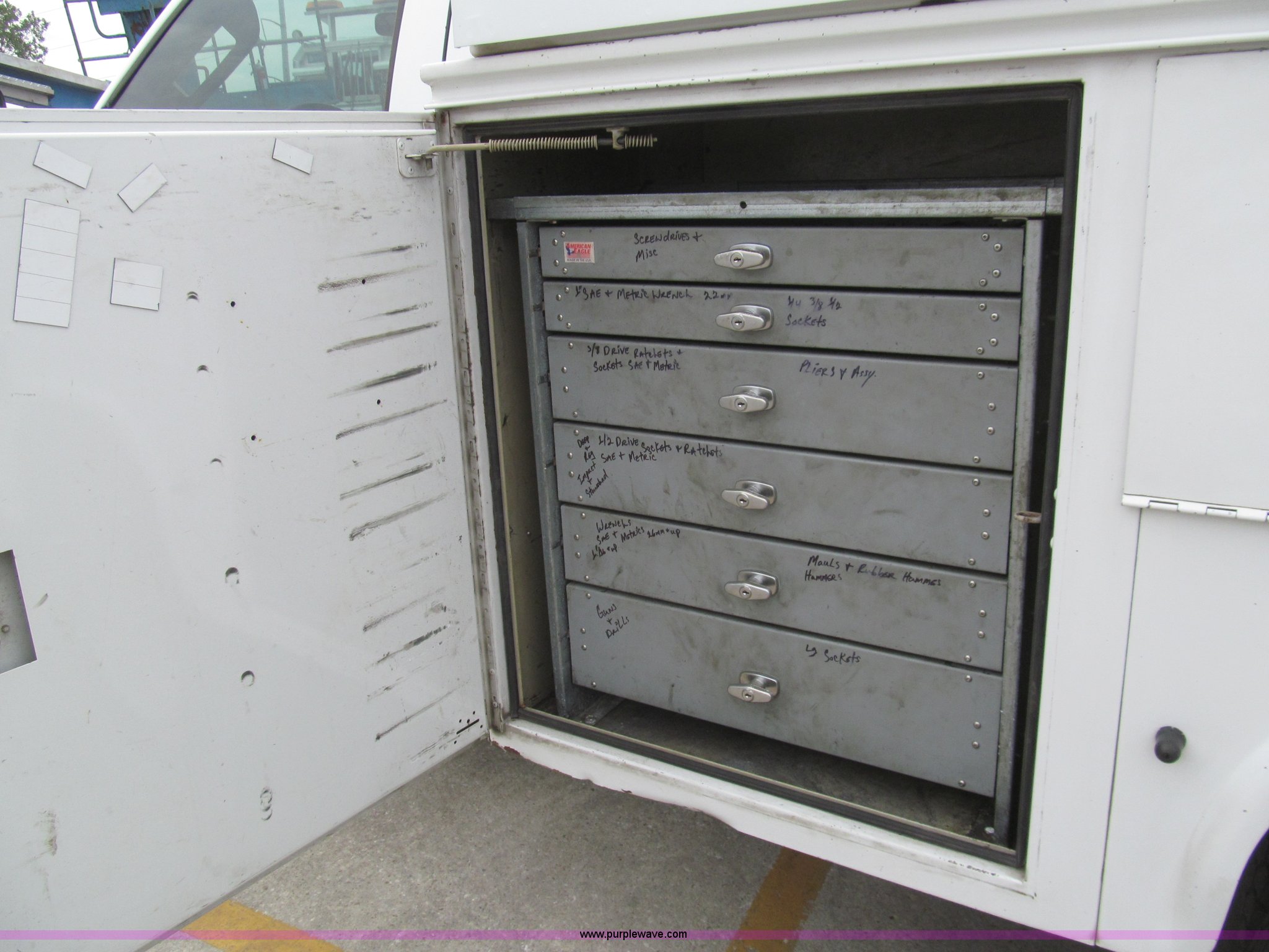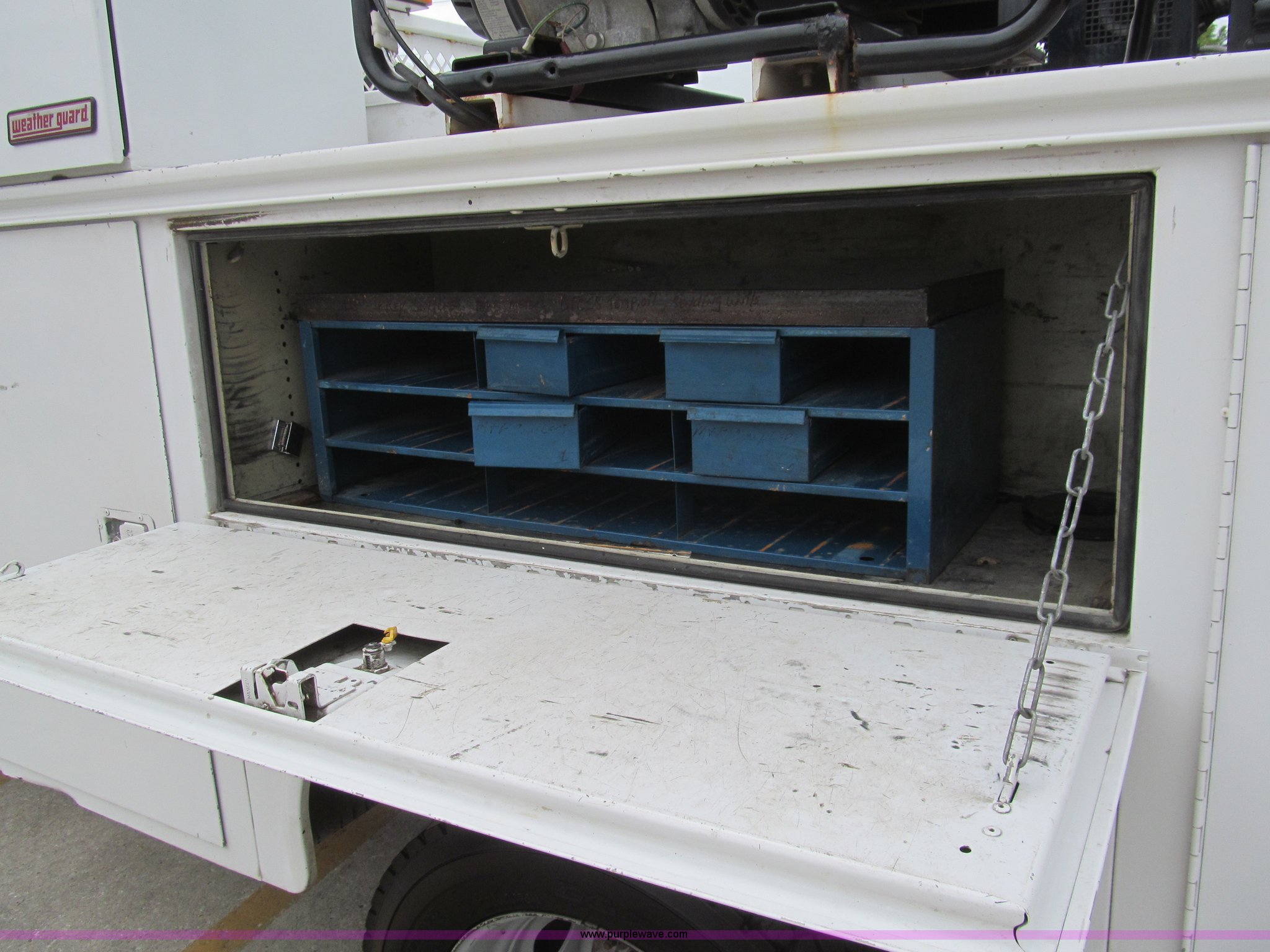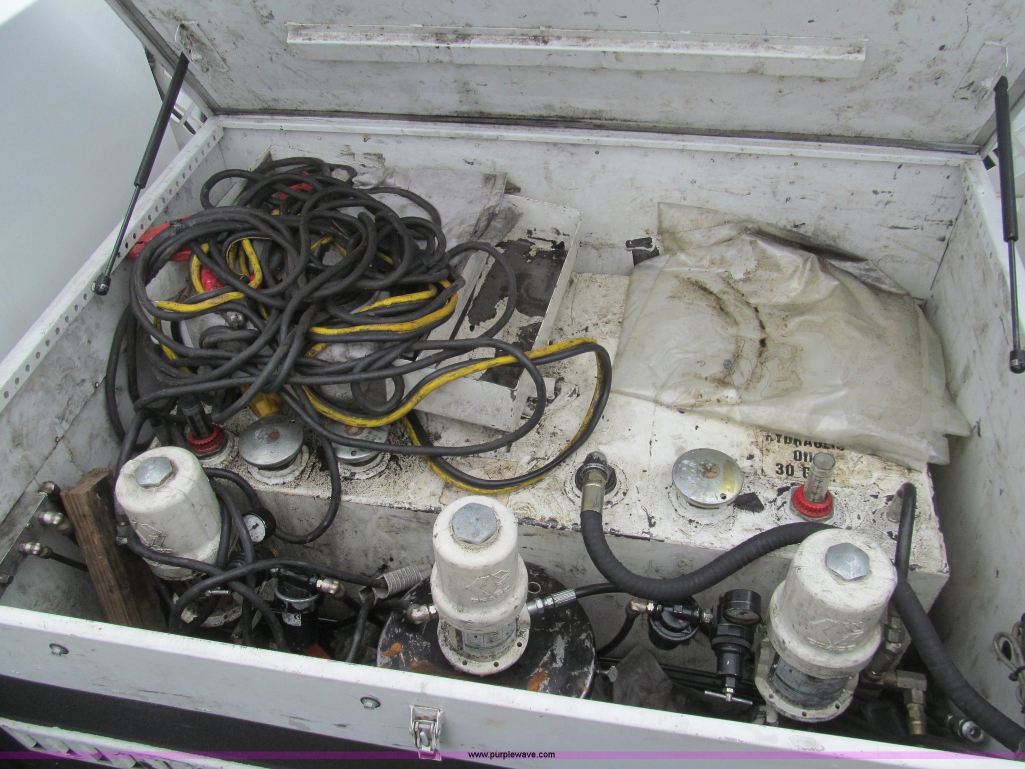 Purple Wave is selling a used Service Truck in Louisiana. This item is a 2008 Ford F450 Super Duty XL service truck with the following: 116,067 actual miles, 6.4L V8 OHV 32V turbo diesel engine, Automatic transmission, AC and heat, Tilt, Cruise, Pioneer AM/FM/CD, Touch screen, Manual windows and locks, Vinyl interior, Auxiliary control switches, Front tow hooks, Front auxiliary power outlet, Knapheide utility bed, (6) storage compartments, Toolboxes, 5" vise, Miller BlueStar 185 welder/generator, 22 hours on meter, Kohler 12.75 HP gas engine, CC/DC, 6,000 watt, Champion air compressor, Honda gas engine, Hose, reel, and nozzle assembly, Graco oil system, Motor oil, hydraulic oil, and grease recovery systems, Mini Fireball pumps, Hose, reel, and nozzle assemblies, Receiver hitch, Trailer wiring, 225/70R19.5 tires, Windshield cracked, EIN 720683RA