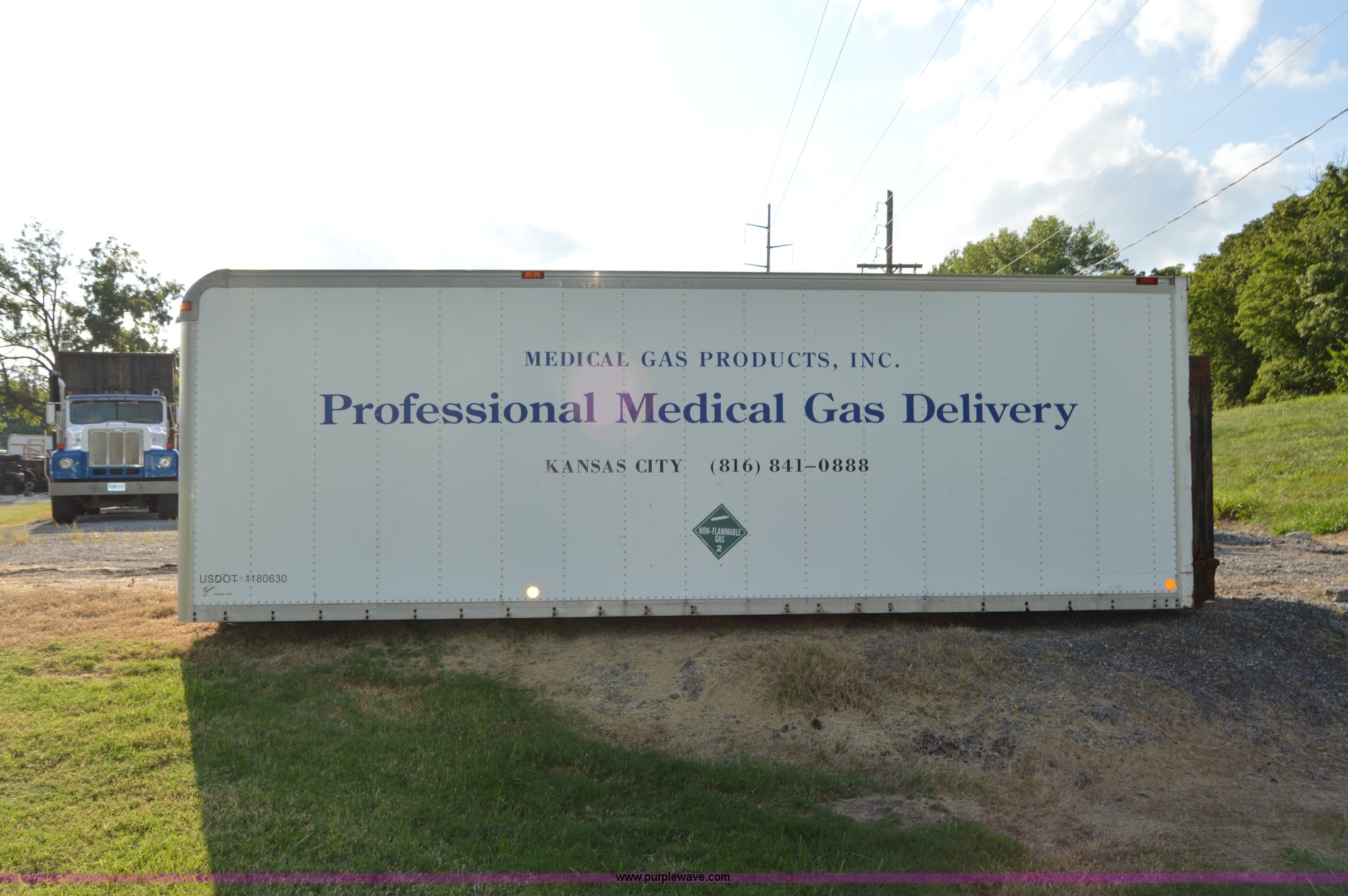 Purple Wave is selling a used Truck Part and Attach. in Missouri. This item is a Brown 22.5' cargo van box with the following: Rear roll up door, Dents