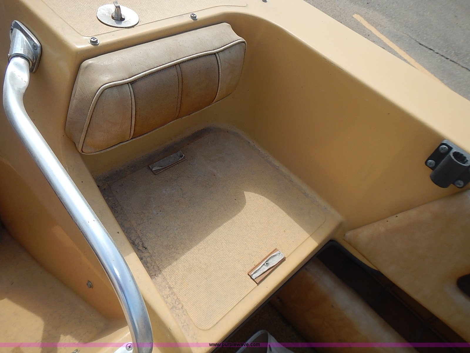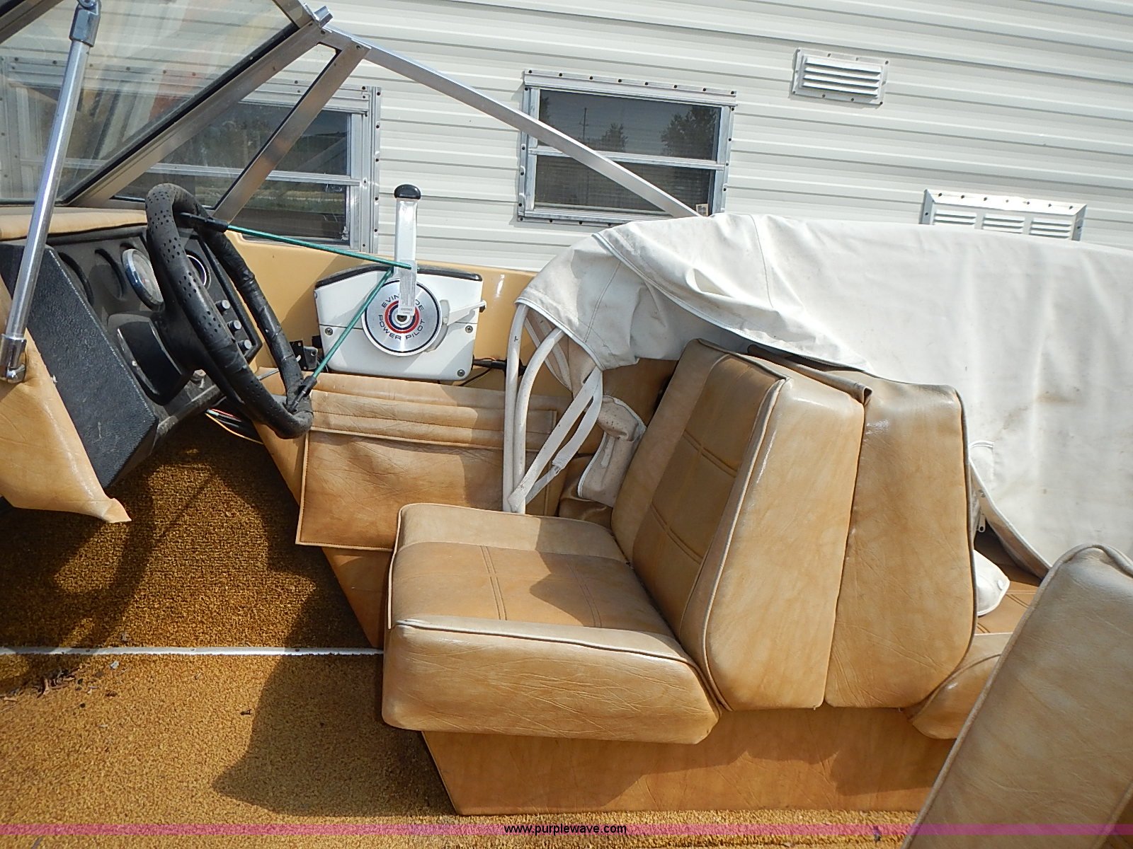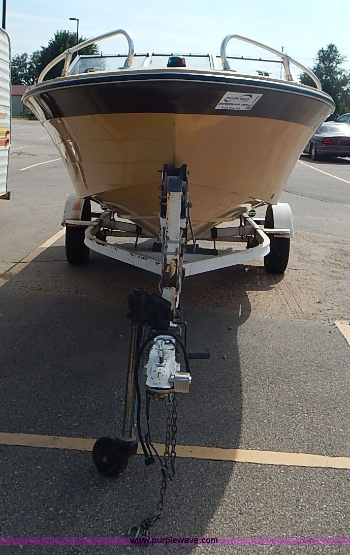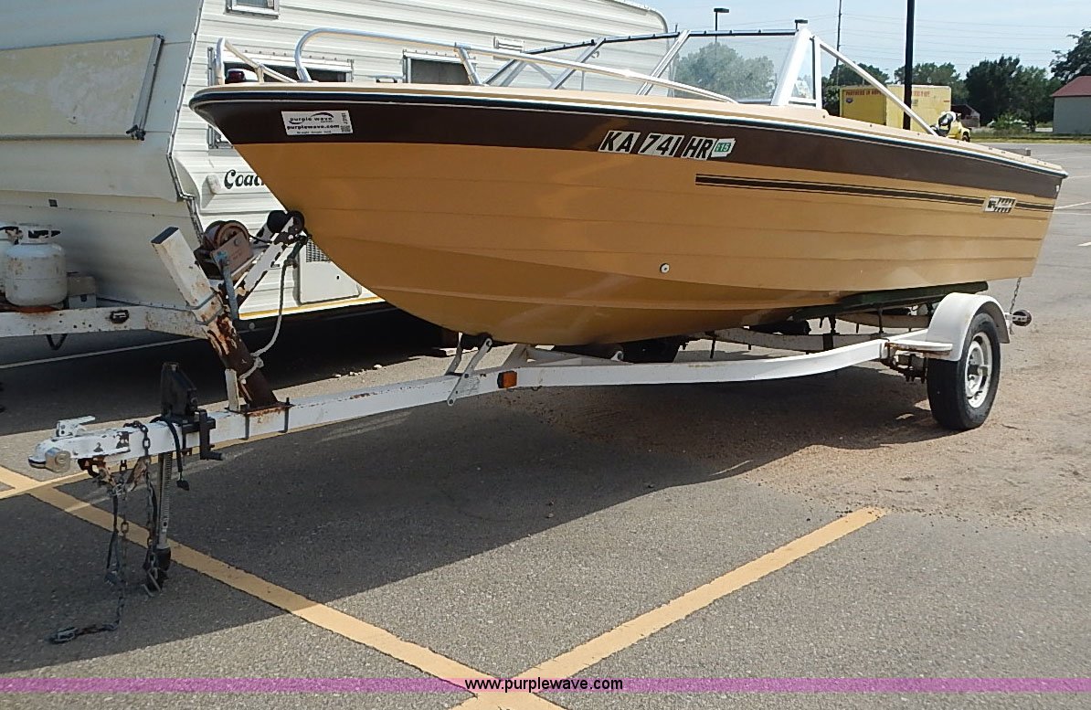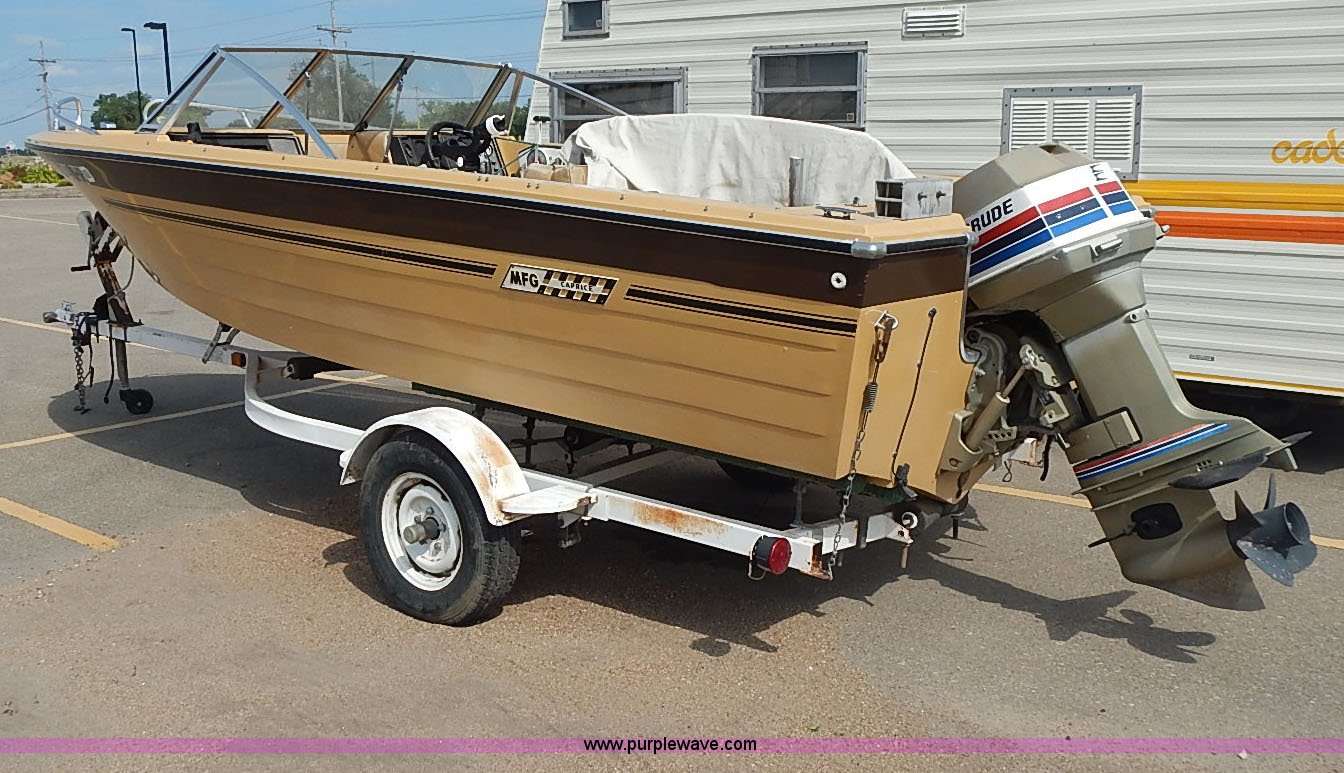 Purple Wave is selling a used Boat in Kansas. This item is a 1977 Caprice boat with the following: Evinrude outboard engine, 115 HP, Tilt/trim inoperable, Engine is hard to start, Warming lever must be used,, Hummingbird Wide 128 fish finder, 1,000 lbs maximum person capacity, 1,460 lbs maximum capacity, Canvas cover, (2) rod holders, (2) rear seat cushions missing, Hull I.D. MFGC3059M77C, Model C16/65-18 trailer, 1,800 lbs maximum capacity, Jack, Chains, 2" ball hitch, 175/80R13 tires, Gas tank leaks, Lock is not included