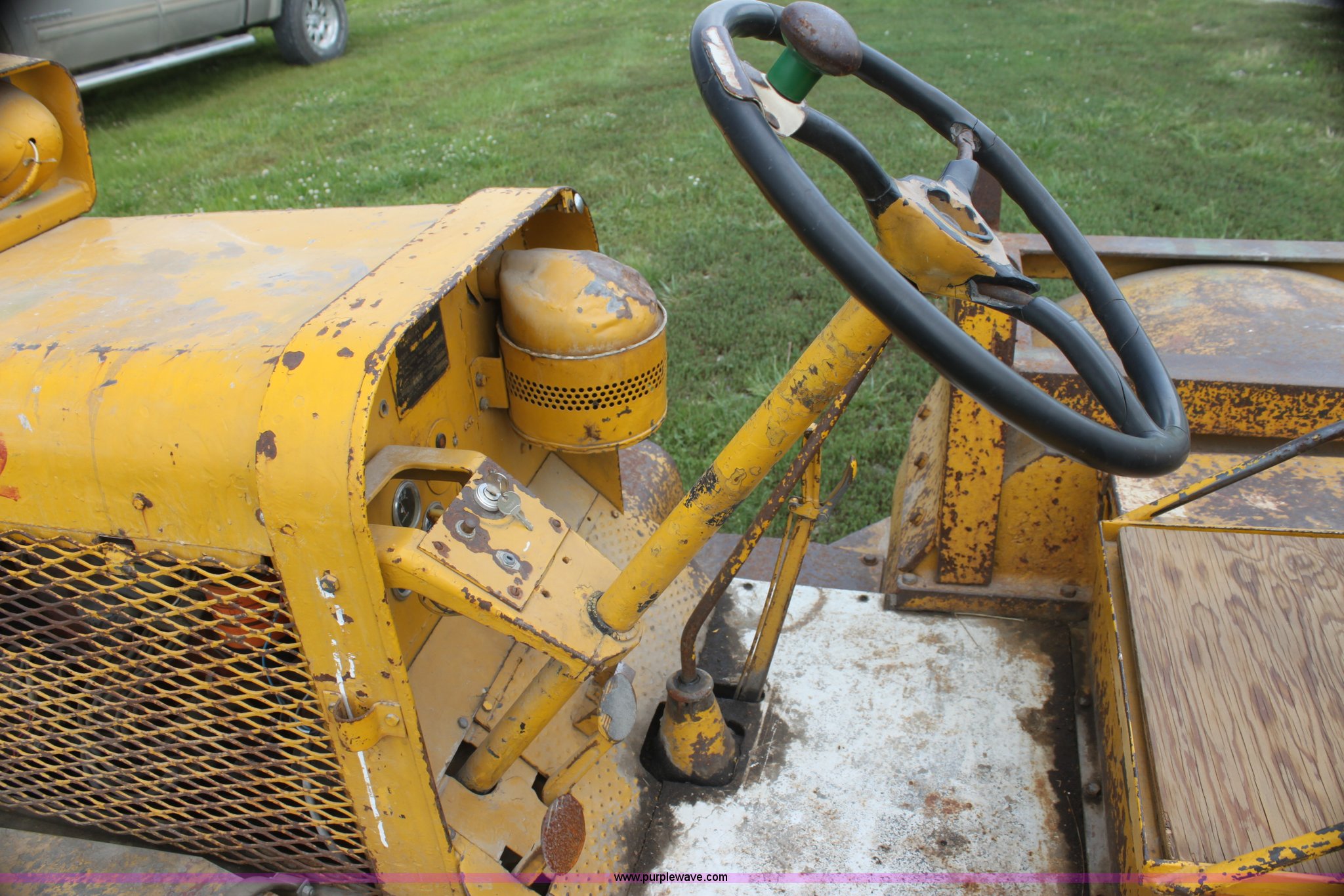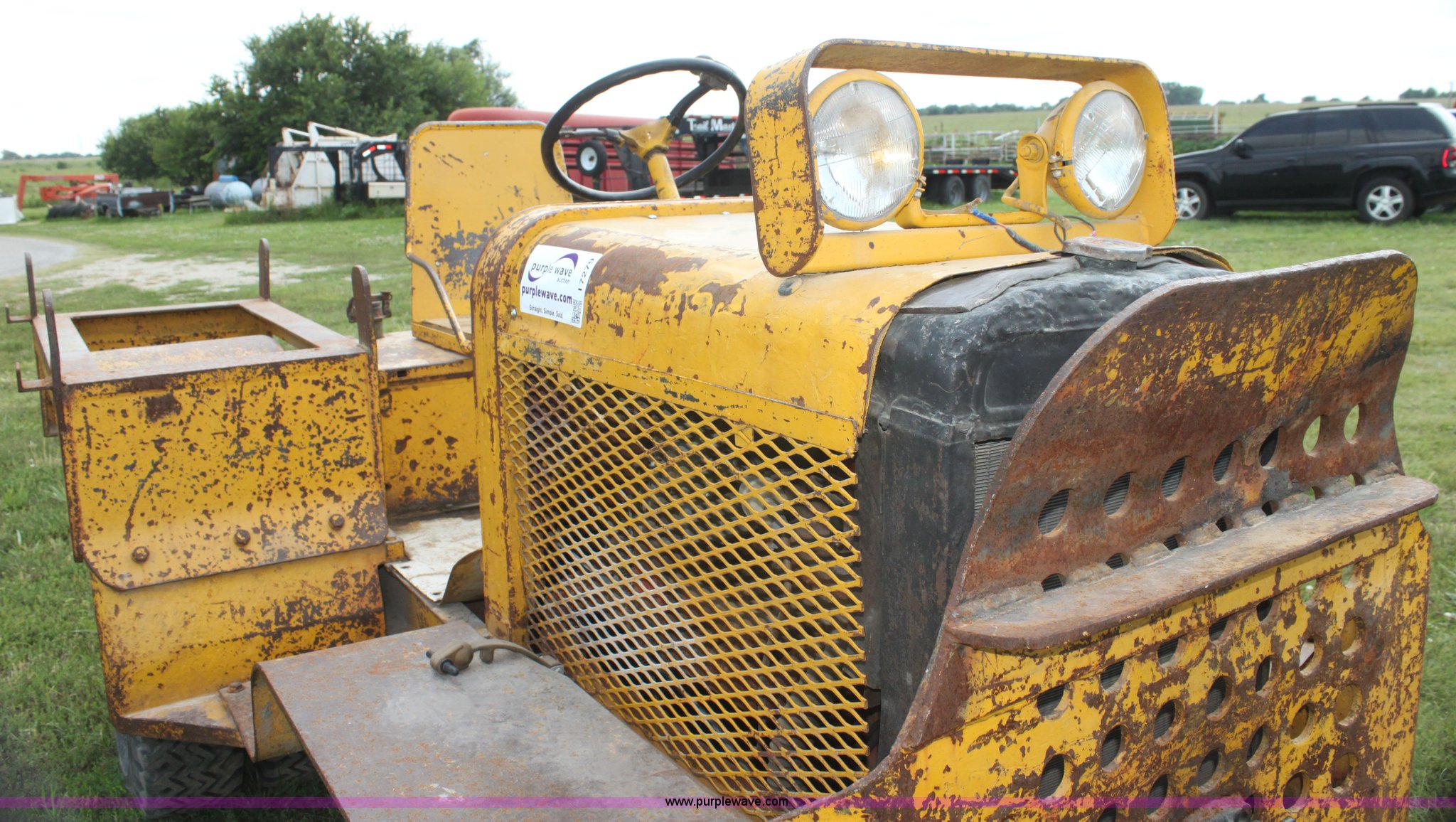 Purple Wave is selling a used Yard Truck in Kansas. This item is a 1975 Clarktor aircraft tug with the following: Six cylinder gas engine, Three speed manual transmission, 6.00-9 front tires, 7.50-16 rear tires, Operational when parked, Unit has been parked for two years, Battery needs replaced, Serial CT401162CT