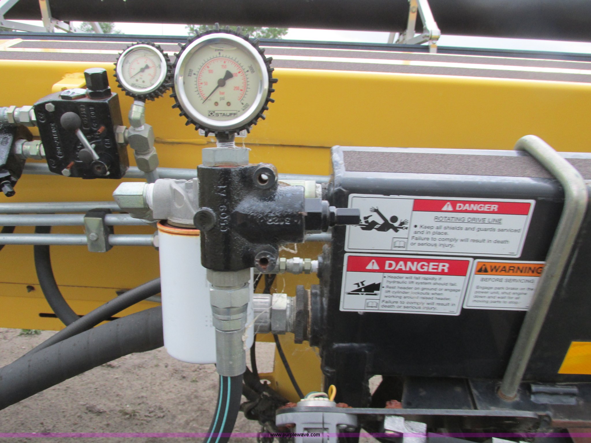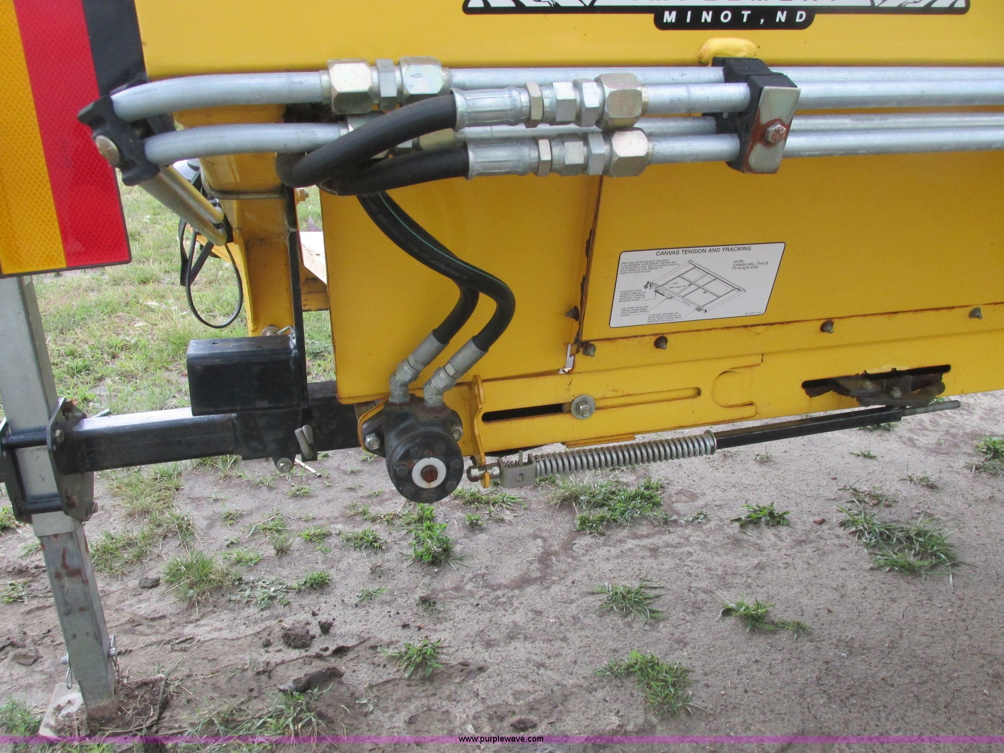 Purple Wave is selling a used Platform or Stripper Head in North Dakota. This item is a 2004 New Holland 94C draper head with the following: 42'W, UII pickup reel with poly fingers, Dual reel hydraulic drive, Hydraulic reel height, Hydraulic fore/aft, Transport package, ST225/75R15 tires, Serial 420400028