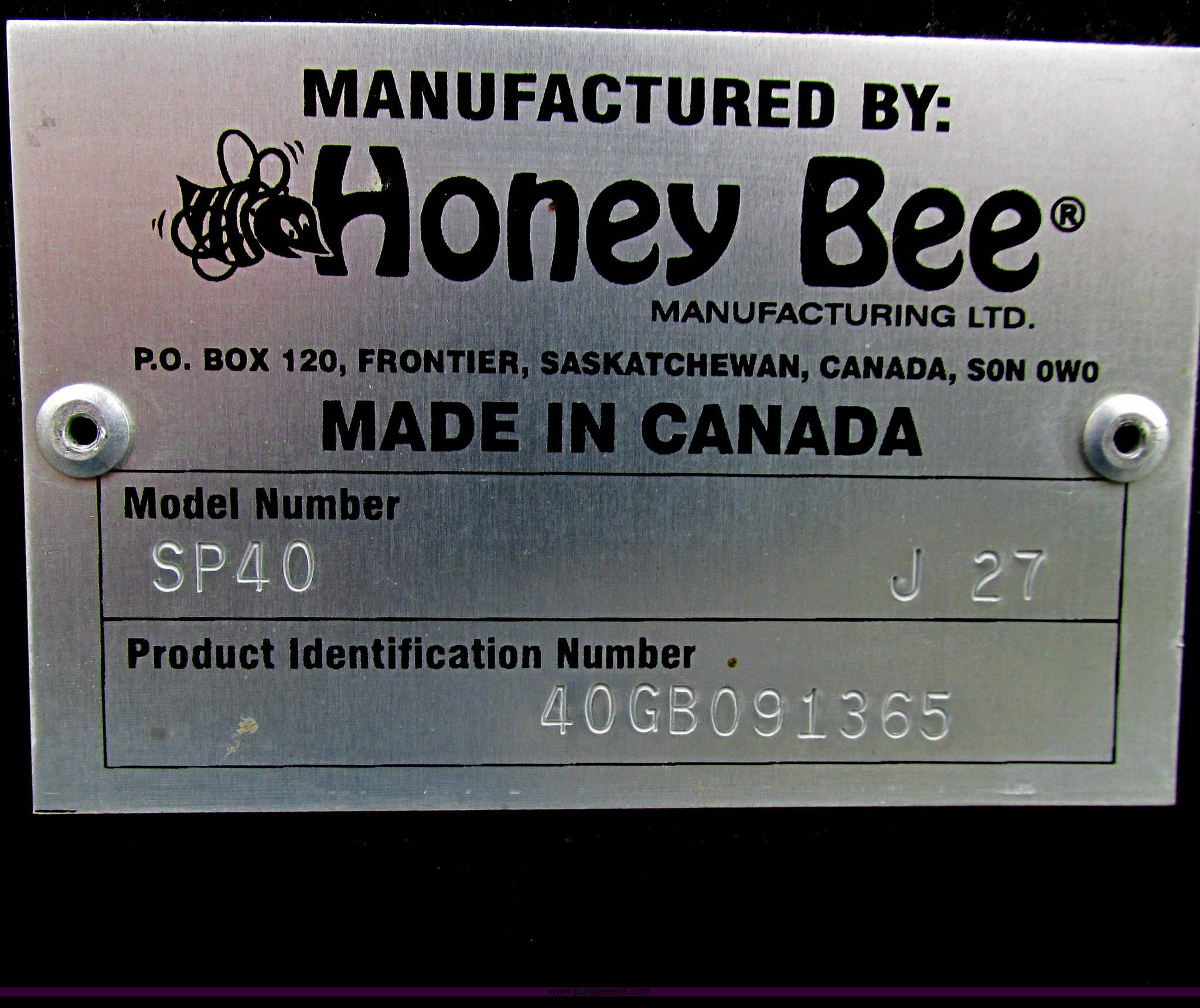 Take a look at this used 2009 Honey Bee SP40 draper head being sold on August 27th, 2014 in the SOLD! August 27 Ag Equipment Auction made by Honey Bee. Take a look at all of the item information below or take a look at similar auctions for Harvesters.