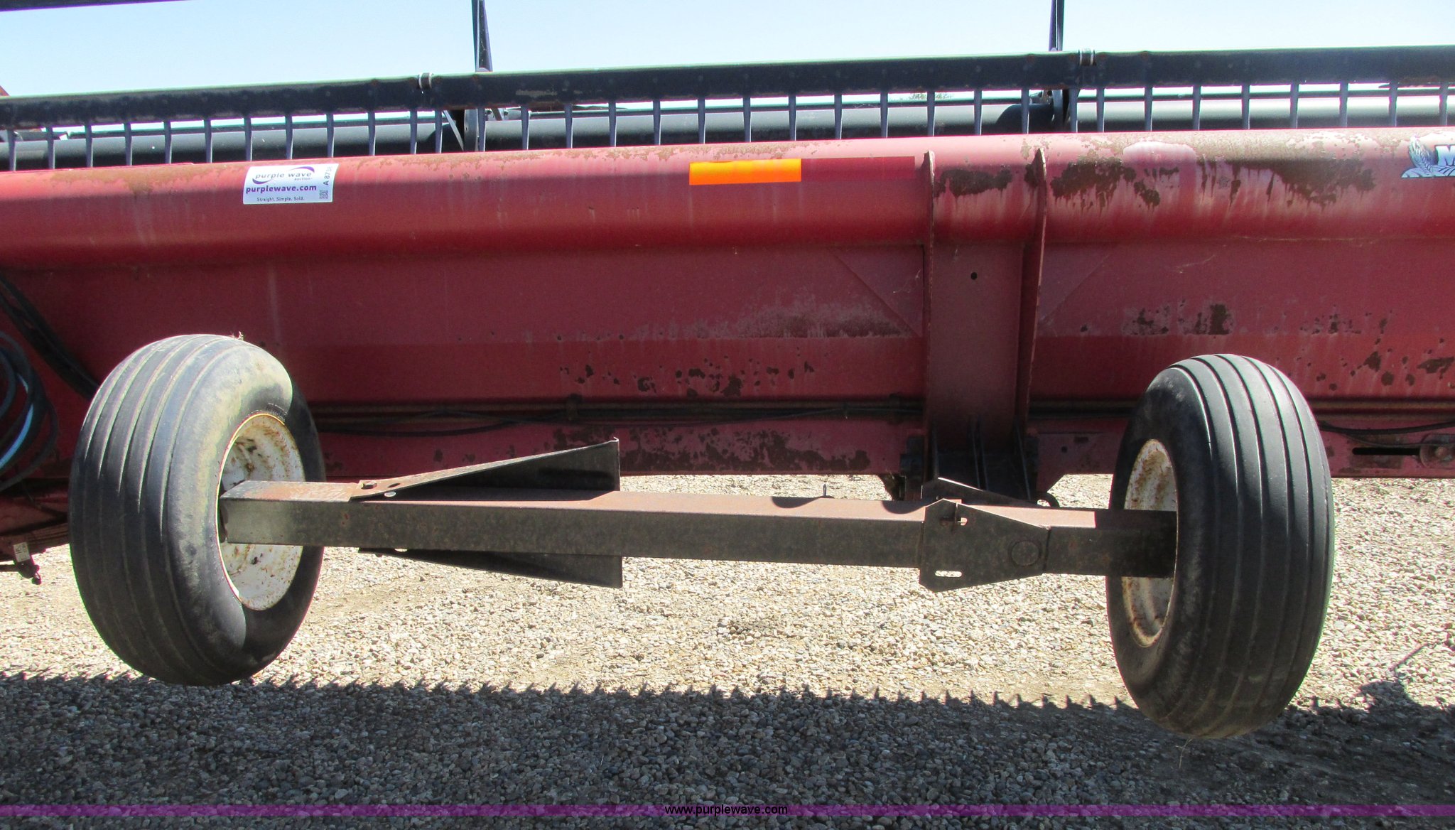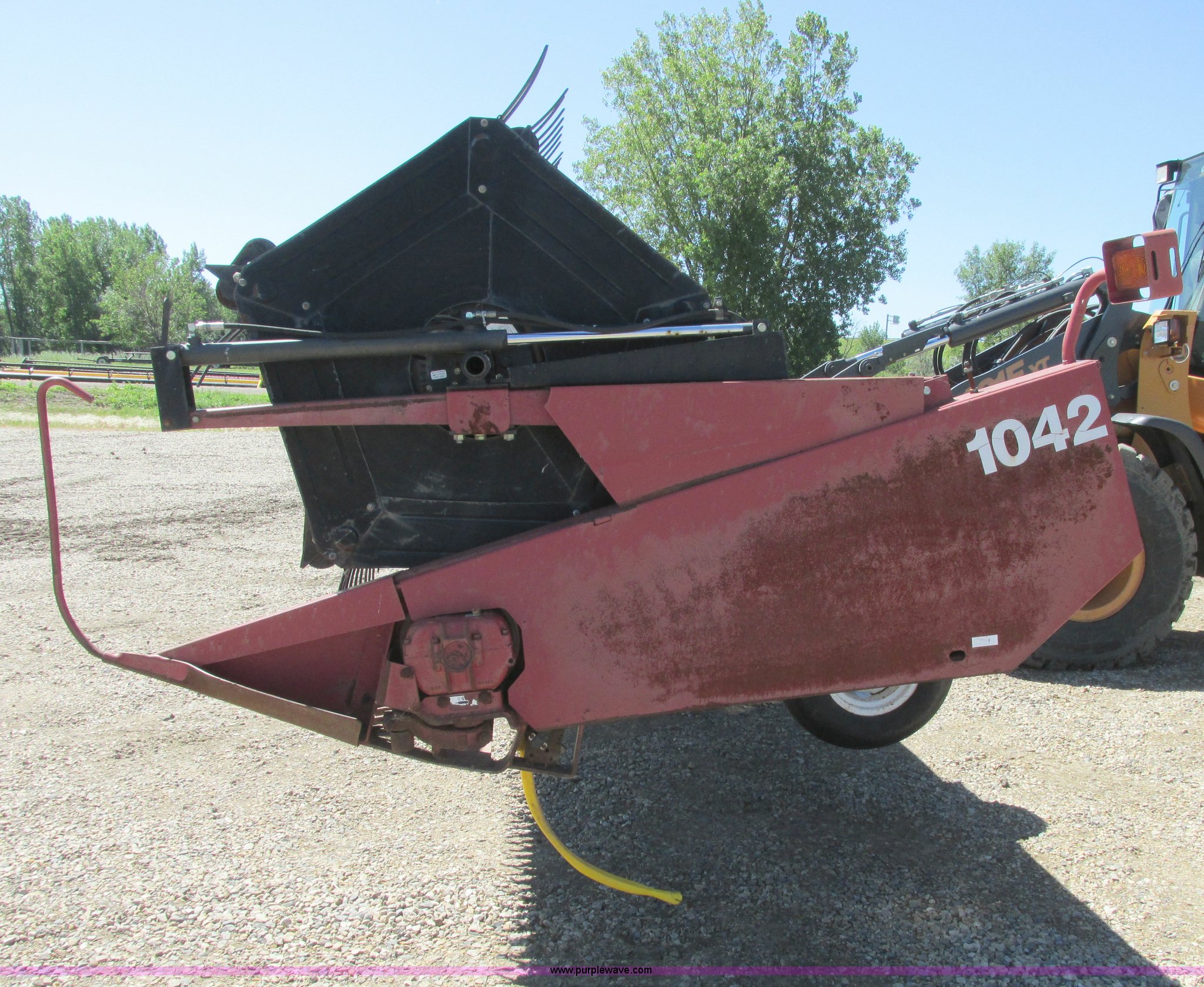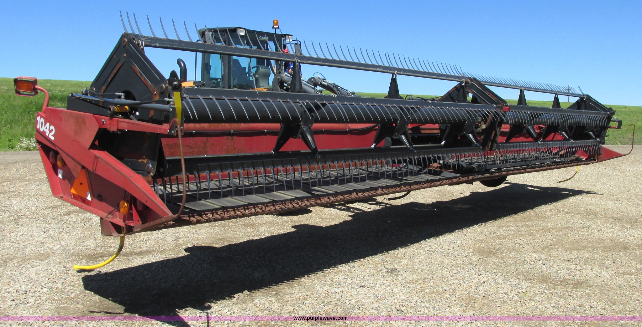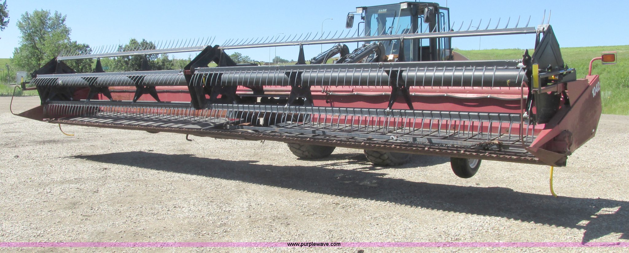 Purple Wave is selling a used Platform or Stripper Head in North Dakota. This item is a 1999 Case IH 1042 draper head with the following: 36'W, Poly finger reel, Hydraulic reel height, Hydraulic fore/aft, Transport trailer system, Draw bar, 9.5L-14 tires, Missing center feeder belt, Serial CCC0009071