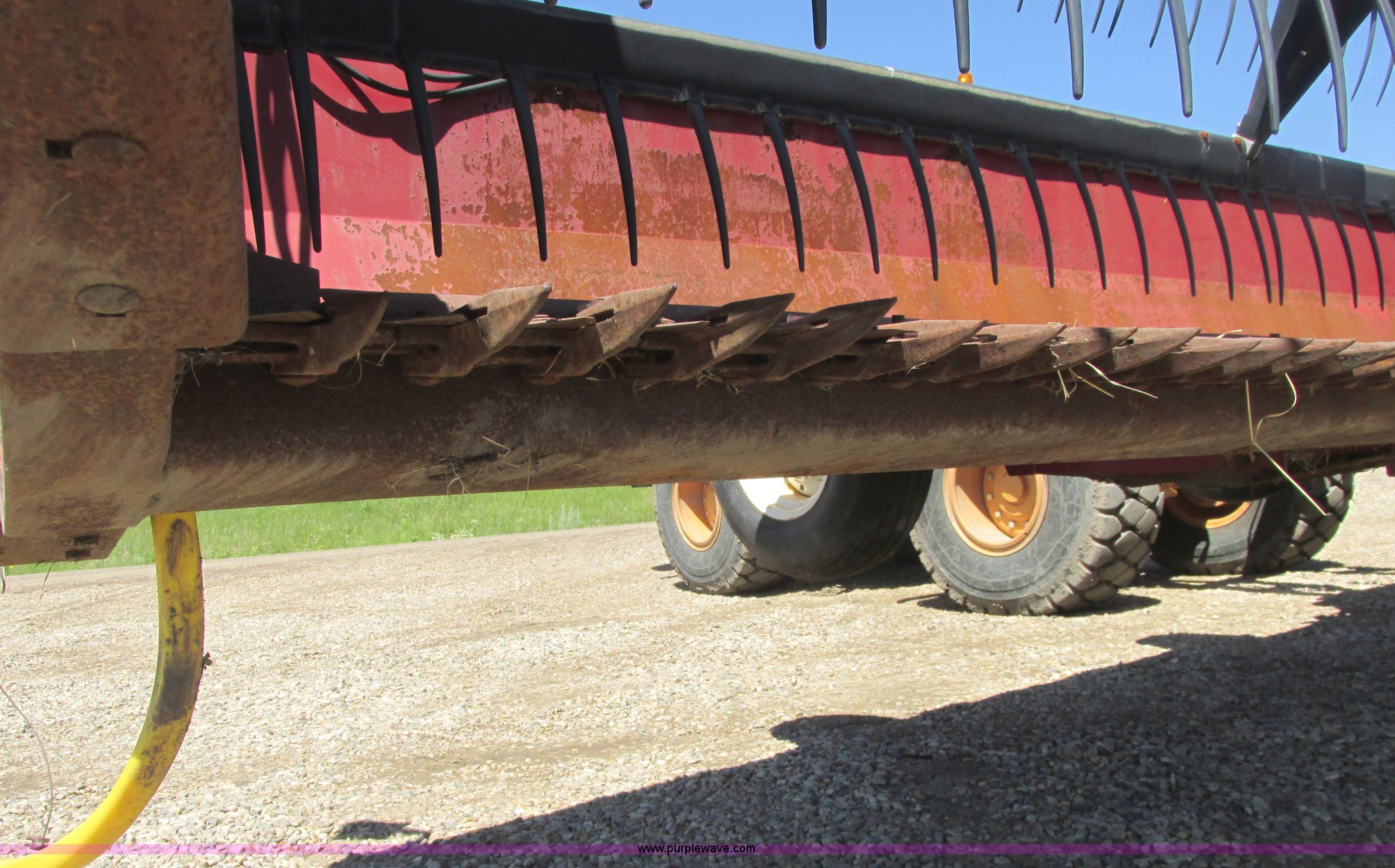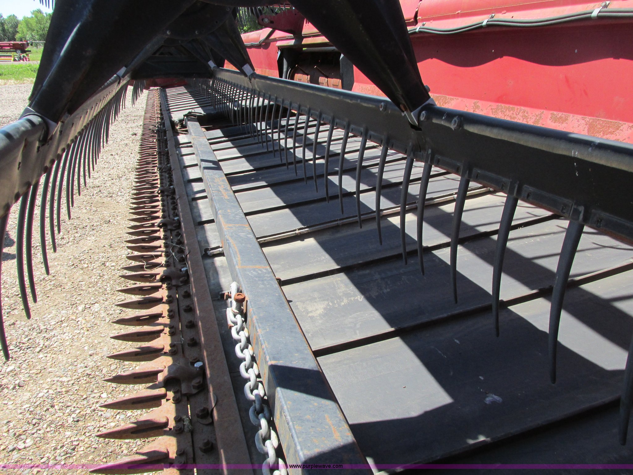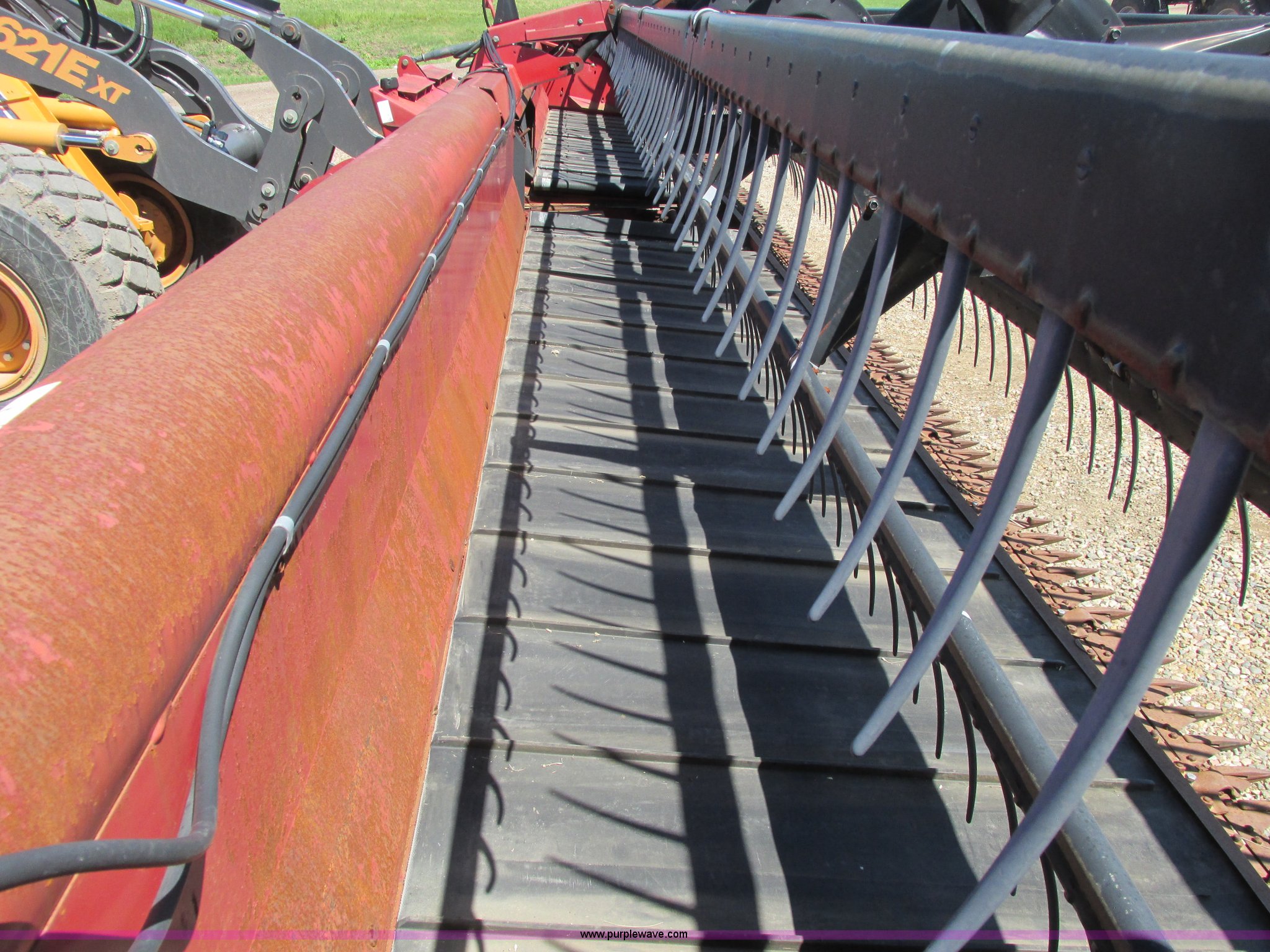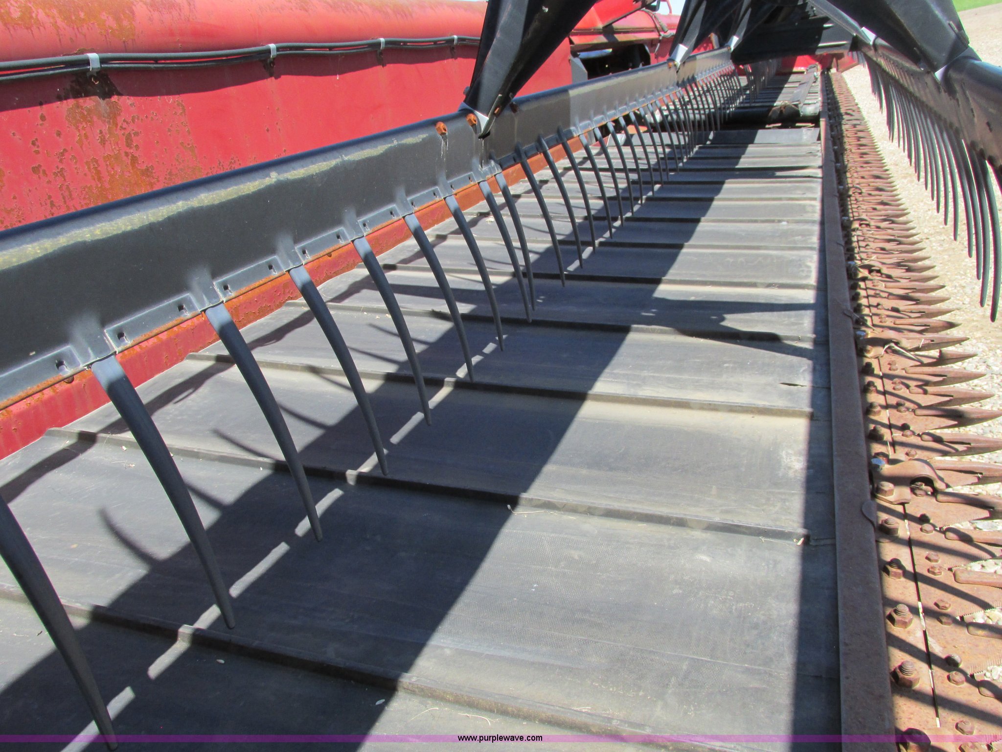 Purple Wave is selling a used Platform or Stripper Head in North Dakota. This item is a 1999 Case IH 1042 draper head with the following: 36'W, Poly finger reel, Hydraulic reel height, Hydraulic fore/aft, Transport trailer system, Draw bar, 9.5L-14 tires, Missing center feeder belt, Serial CCC0009071