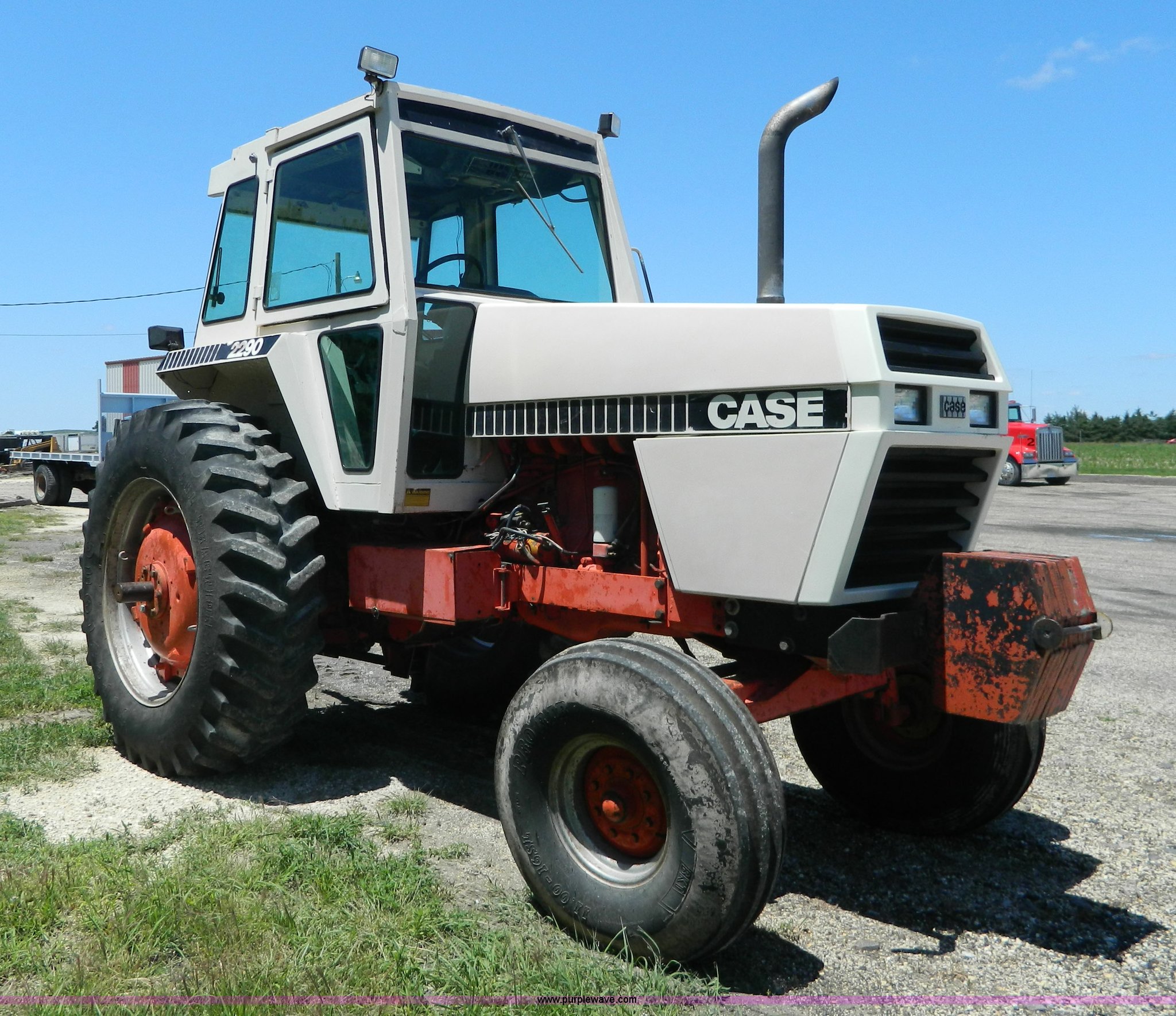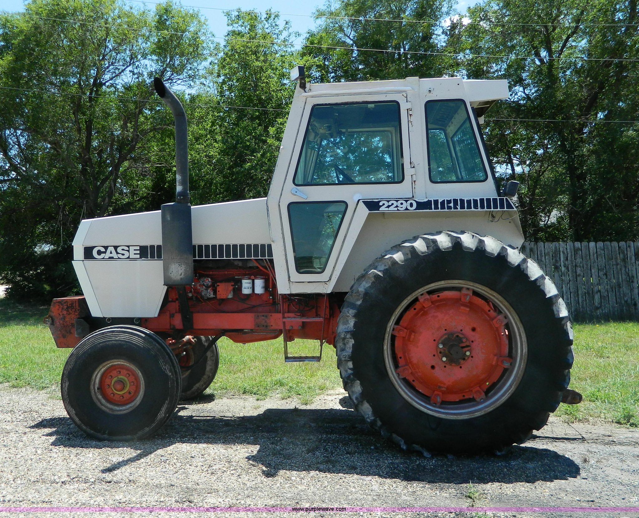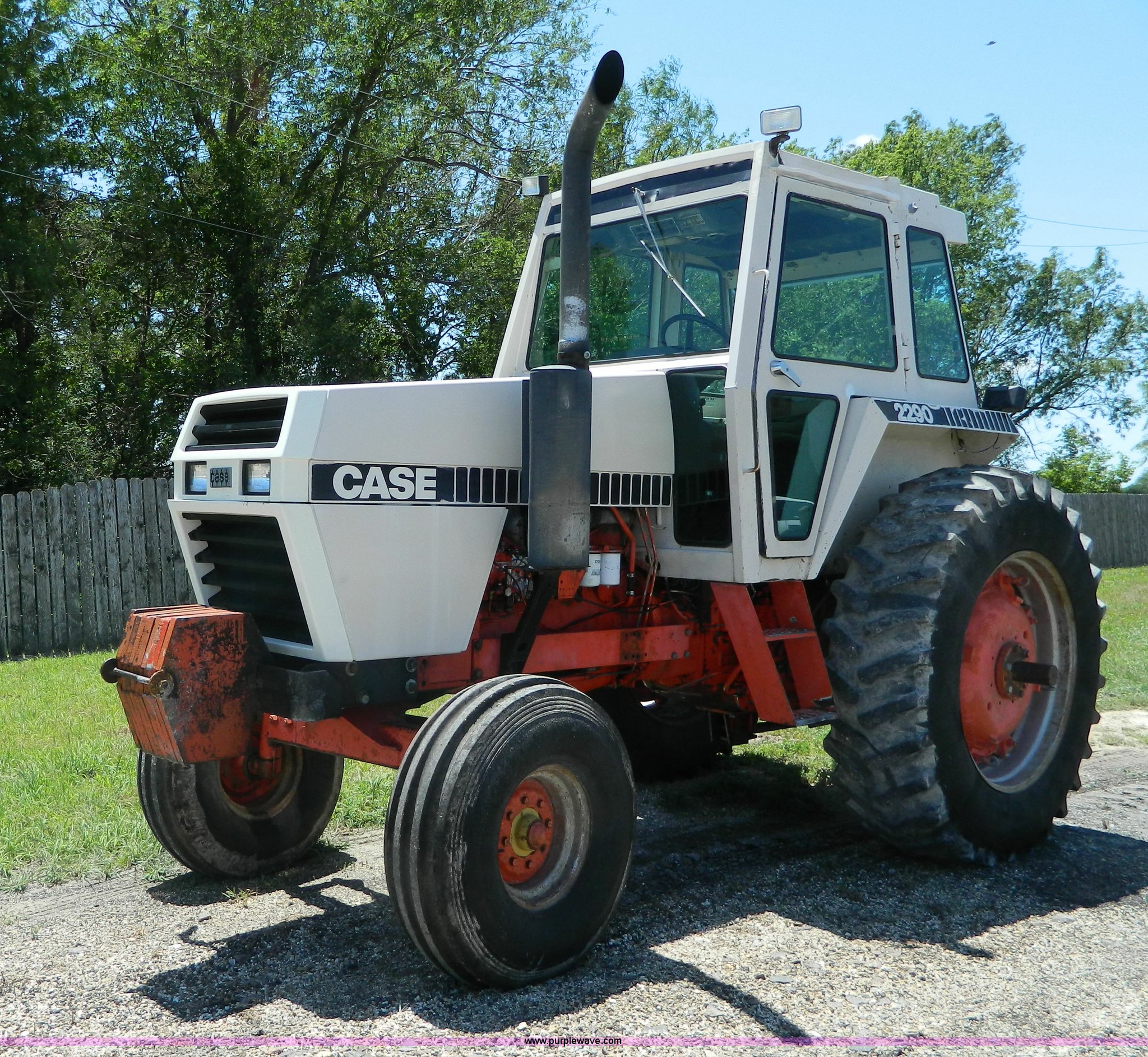 Purple Wave is selling a used Tractor in Kansas. This item is a 1979 Case 2290 tractor with the following: 6,189 hours on meter, Case six cylinder diesel engine, Serial 1016647, Powershift transmission, 12F gears, AC and heat, AM/FM/cassette, Spring suspension seat, Three point, Draw bar, 540 PTO, (2) rear hydraulic remotes, (10) suitcase weights, 11.00-16 front tires, 18.4-38 rear tires, Dual wheels and mounts included, Serial 8840261