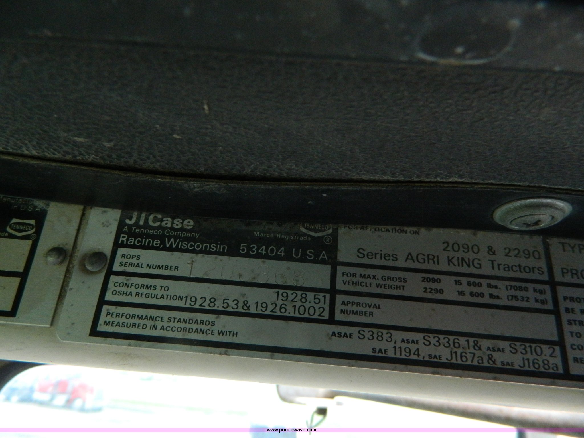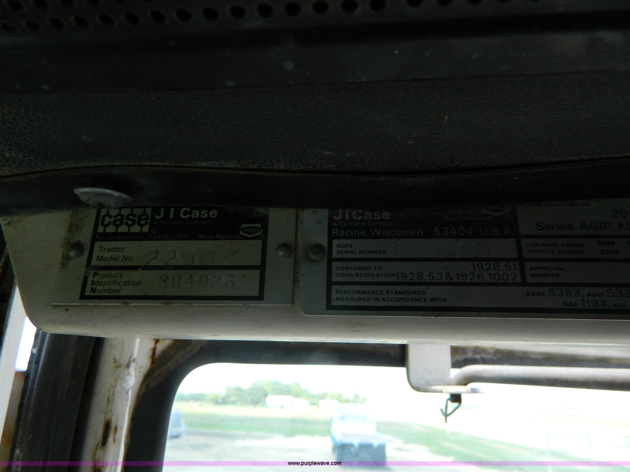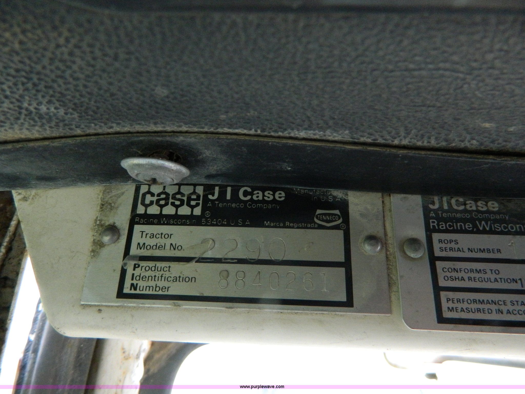 Purple Wave is selling a used Tractor in Kansas. This item is a 1979 Case 2290 tractor with the following: 6,189 hours on meter, Case six cylinder diesel engine, Serial 1016647, Powershift transmission, 12F gears, AC and heat, AM/FM/cassette, Spring suspension seat, Three point, Draw bar, 540 PTO, (2) rear hydraulic remotes, (10) suitcase weights, 11.00-16 front tires, 18.4-38 rear tires, Dual wheels and mounts included, Serial 8840261