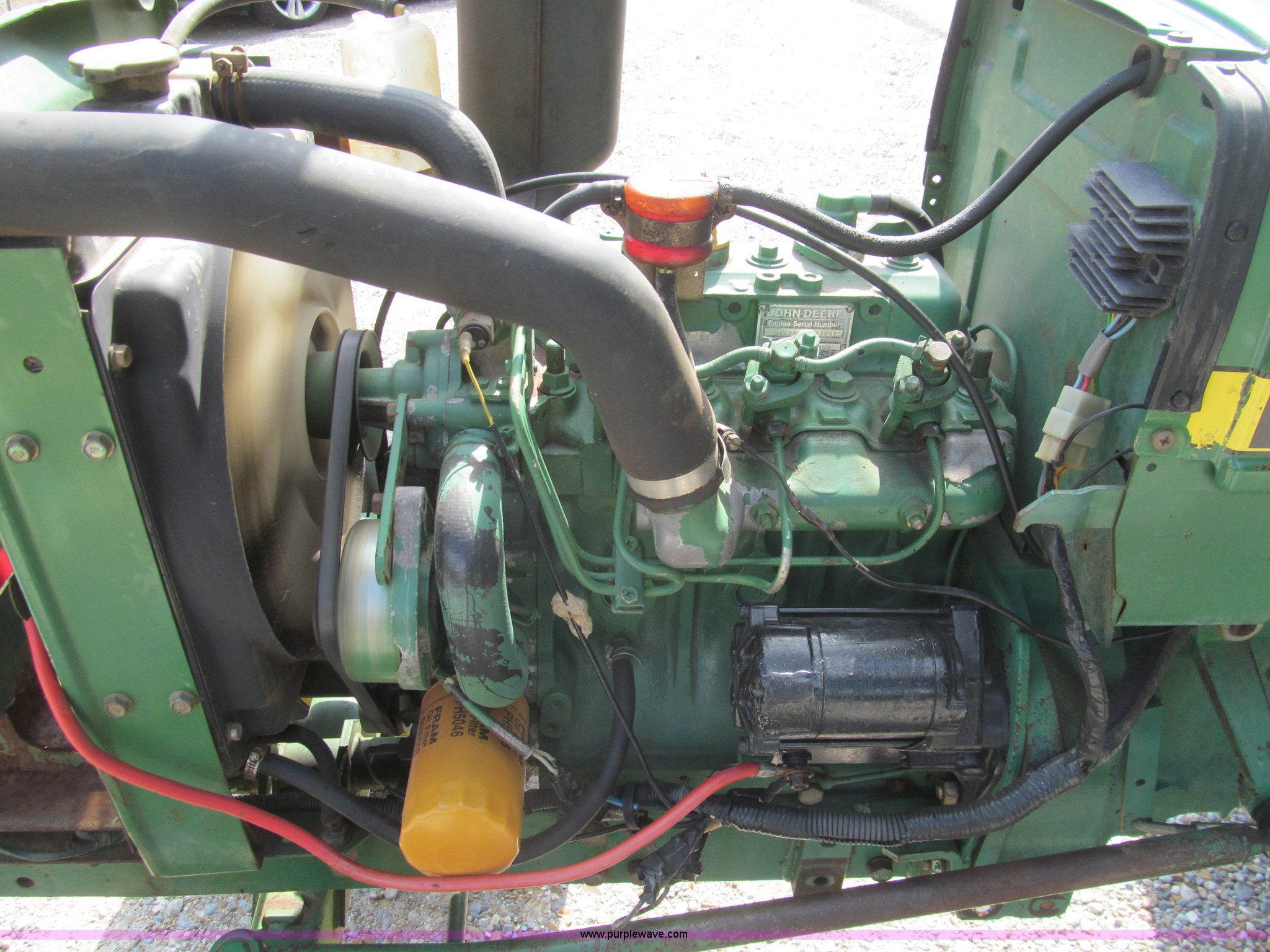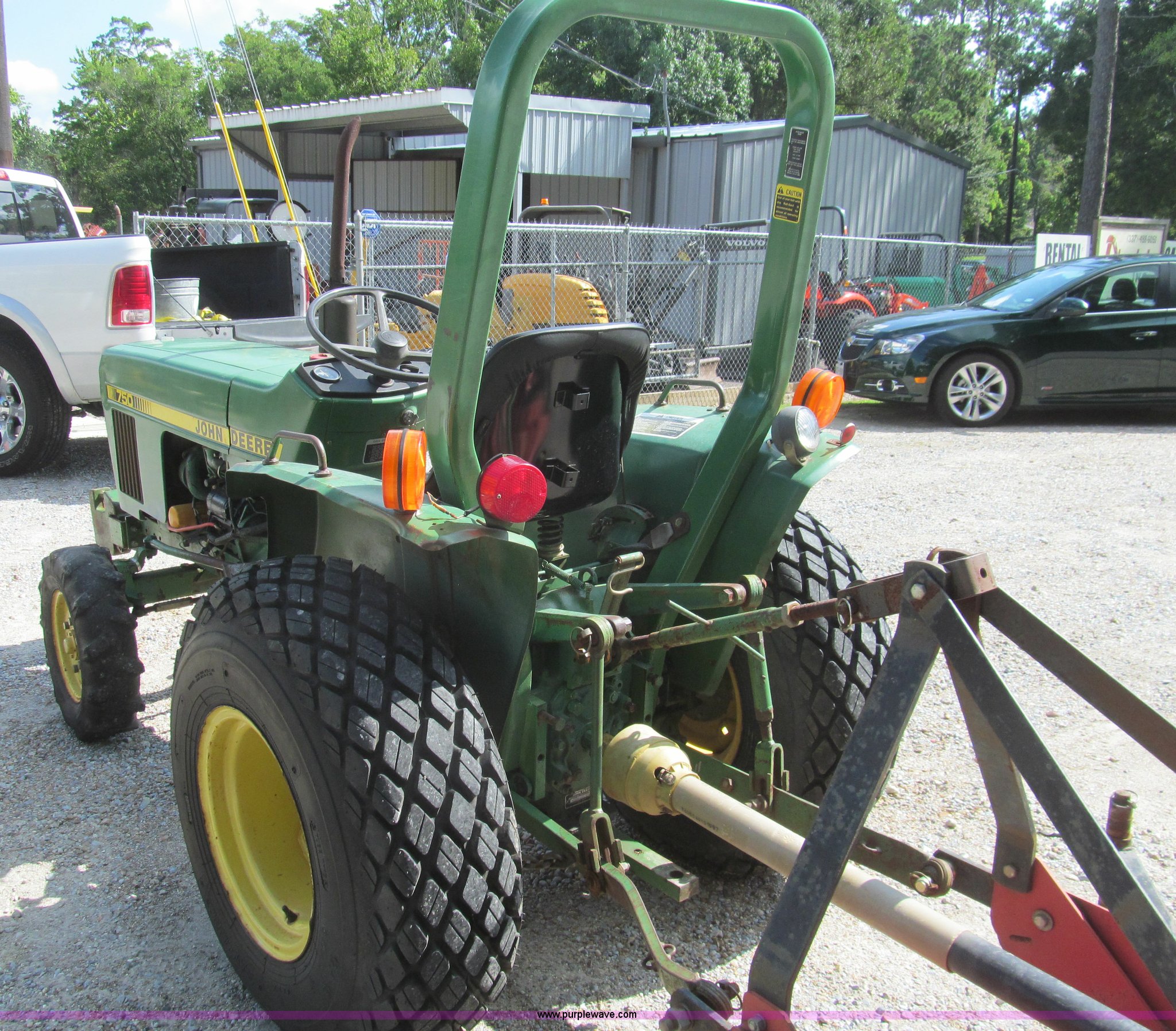 Purple Wave is selling a used Tractor in Louisiana. This item is a 1986 John Deere 750 tractor with the following: 2,757 hours on meter, John Deere 3T80UJ diesel engine, 20 HP, Manual transmission, 8F-2R gears, Three point, Draw bar, 540 PTO, 6.2 gallon fuel tank, 6.00-12 front tires, 12.4-16 rear tires, Mower not included, Serial CH0750S020608