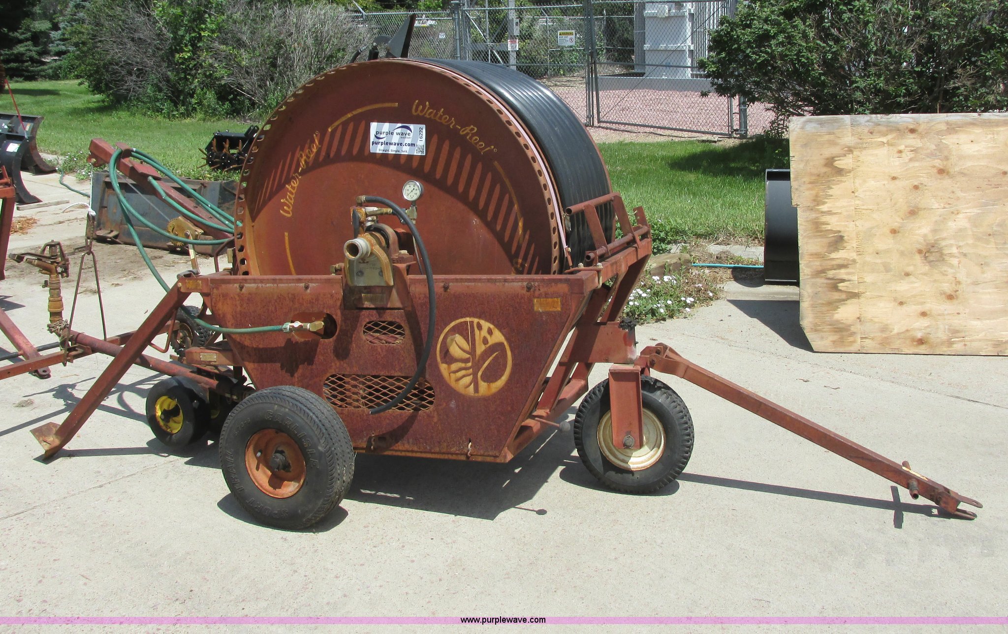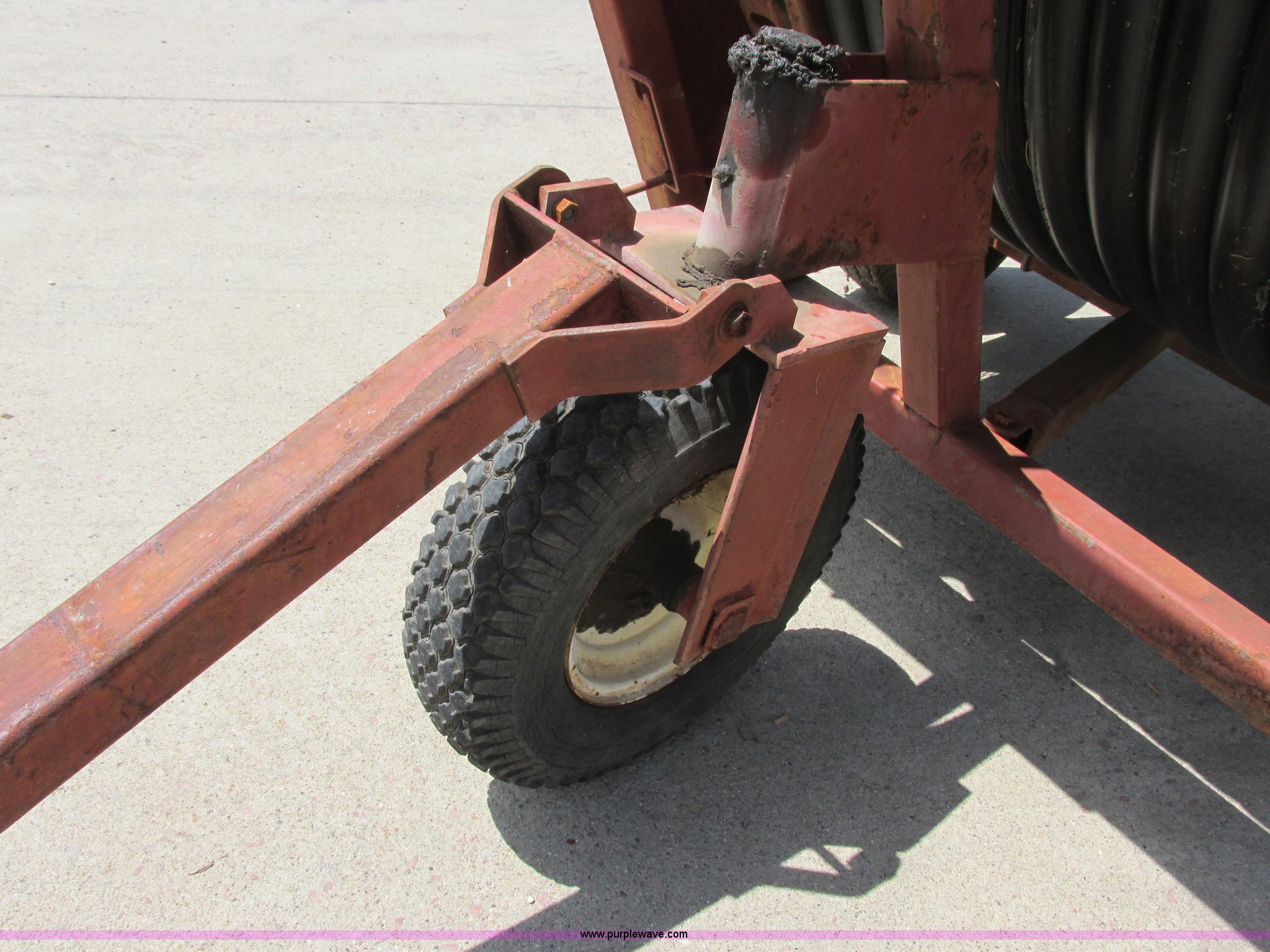 Purple Wave is selling a used Hose Reel in South Dakota. This item is a Kifco B160 water reel with P85 water gun with the following: 2.5" intake, P85 pivoting water gun, 2" hose on reel, Unknown length, Approx. 350', Pin hitch, 4.10/3.50-4 front water gun tires, 11.00x4.00-5 NHS rear water gun tires, 4.80/4.00-8 front water reel tires, 5.70-8 rear water reel tires, Flat tire on reel carrier, Surface rust, Serial 27172